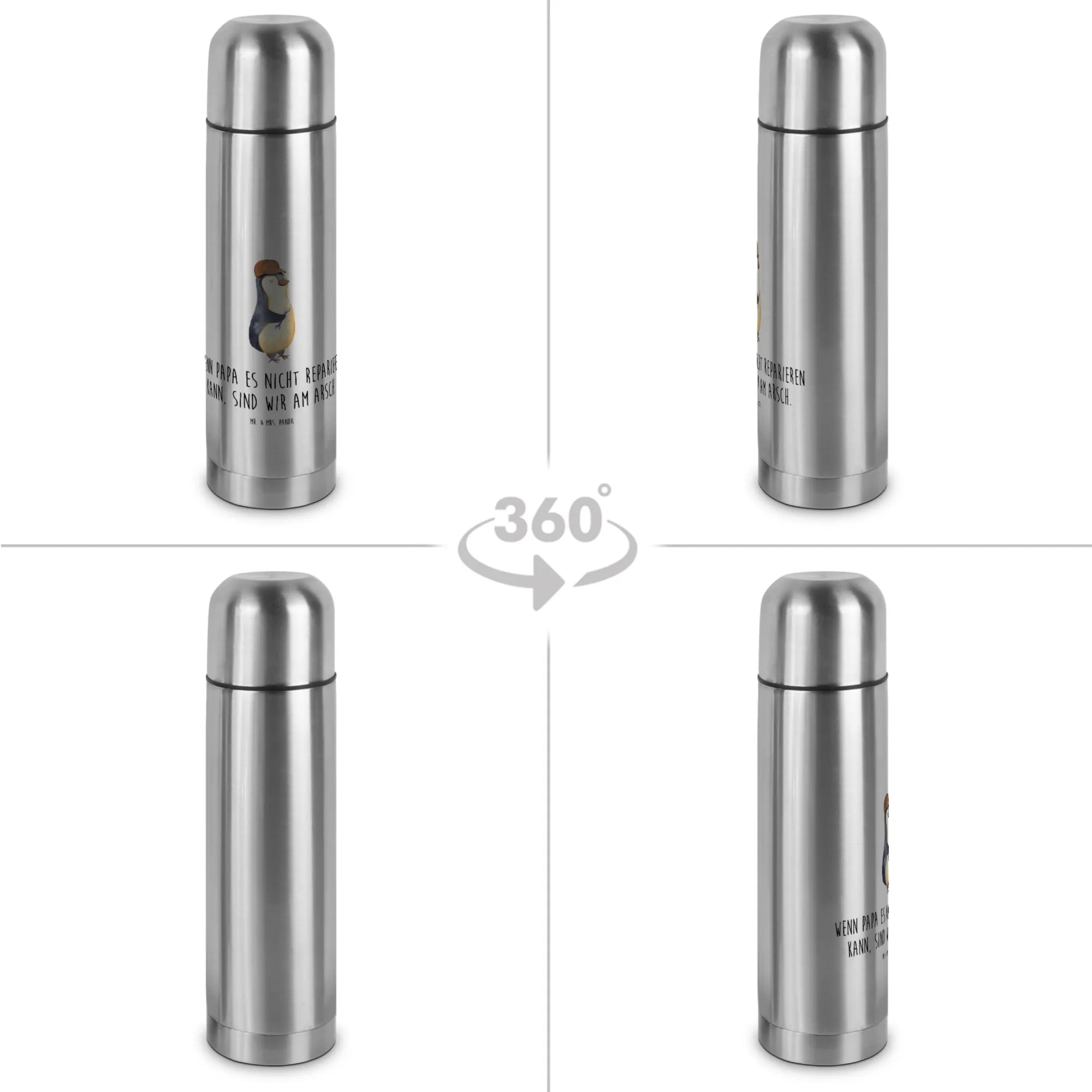 Die Thermoskanne "Wenn Papa es nicht reparieren kann, sind wir am Arsch" aus der Familienkollektion von Mr. & Mrs. Panda ist das perfekte Geschenk für den besten Papa der Welt! Sie ist nicht nur praktisch, sondern auch ein echter Hingucker. Die Kanne hat ein charmantes Design mit einem lustigen Pinguin, der einen Schraubenschlüssel hält.