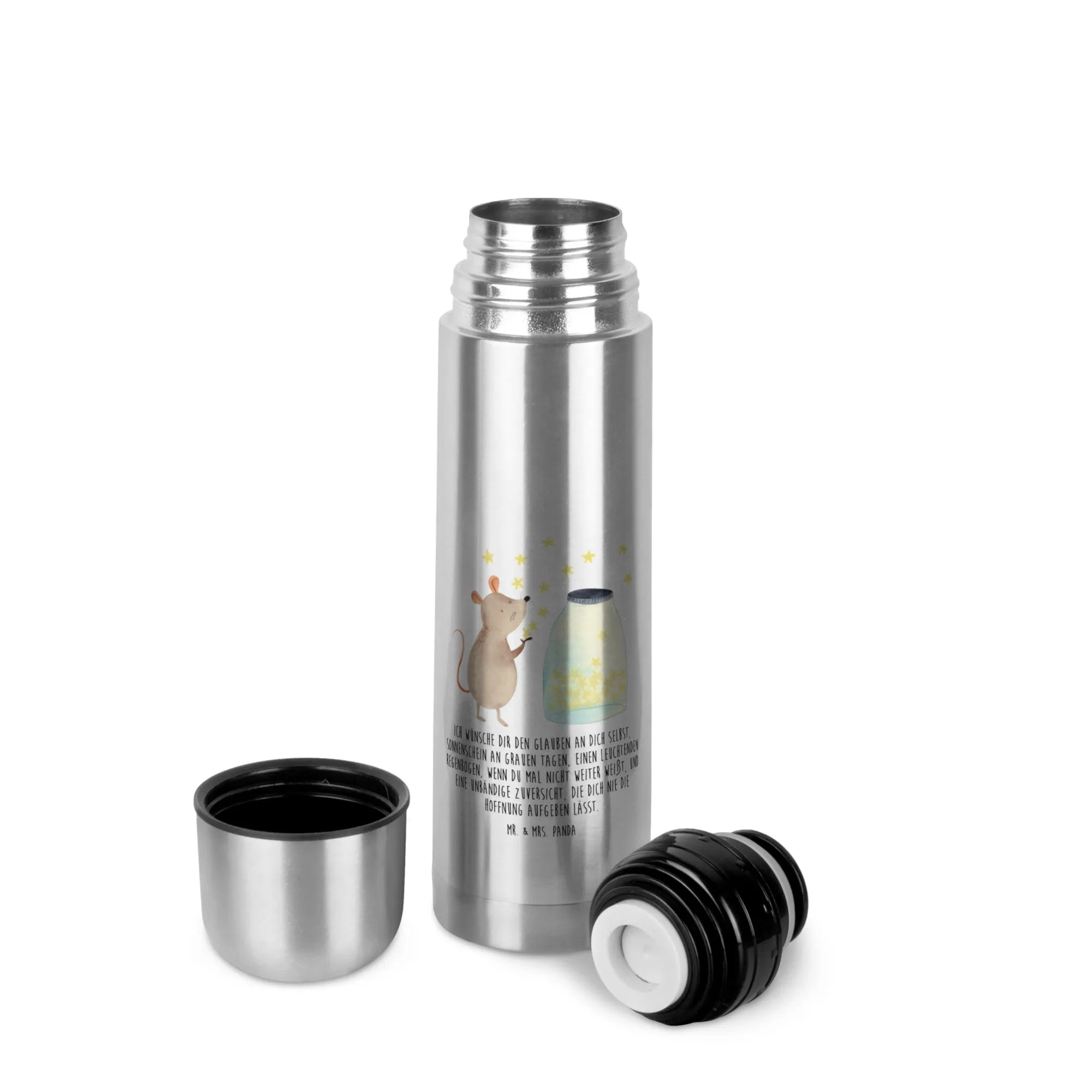 Thermos Flask Mouse Stars Thermoskanne, Tiermotive, Gute Laune, lustige Sprüche, Tiere, Geburt, Taufgeschenk, Wunsch, Maus, Kindergeburtstag, Kind, Geburtstag, erstes Kind, Hoffnung, Taufe, Schwangerschaft, Träume, Sterne