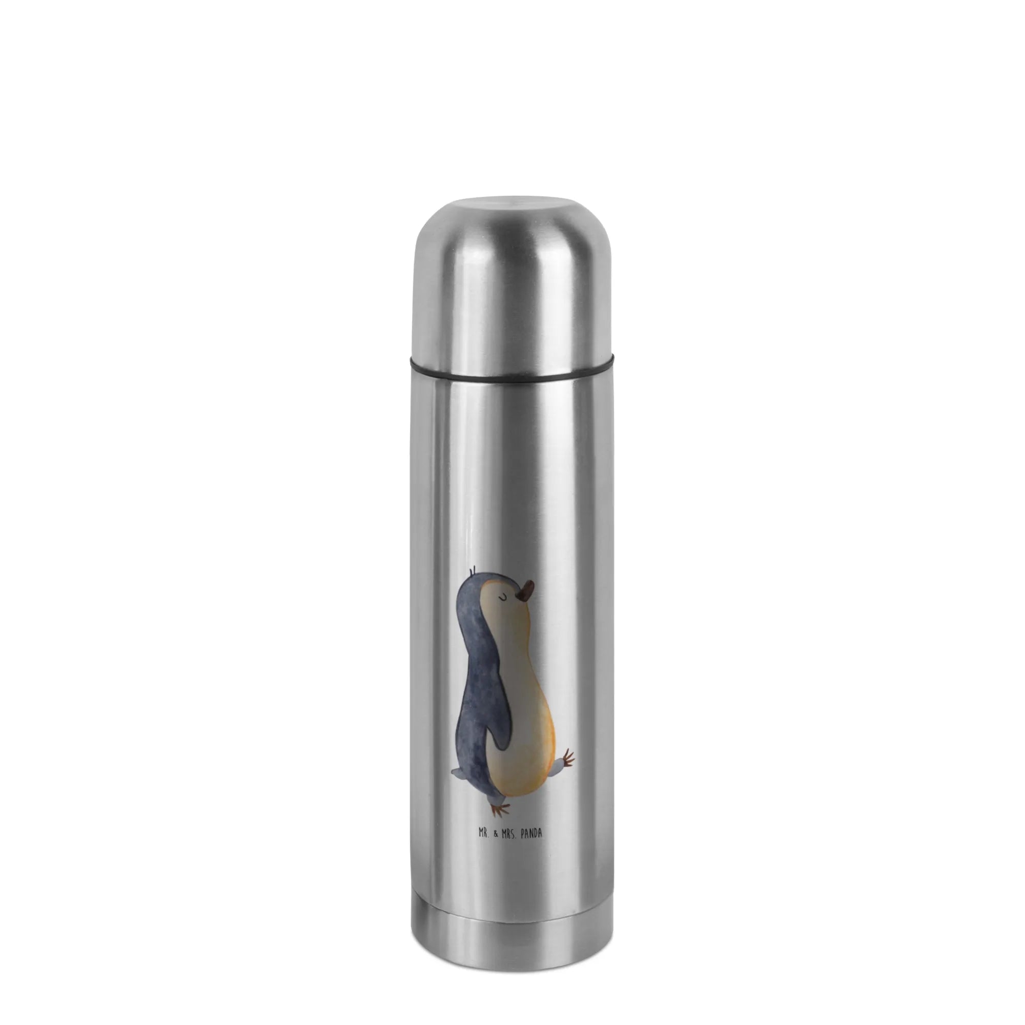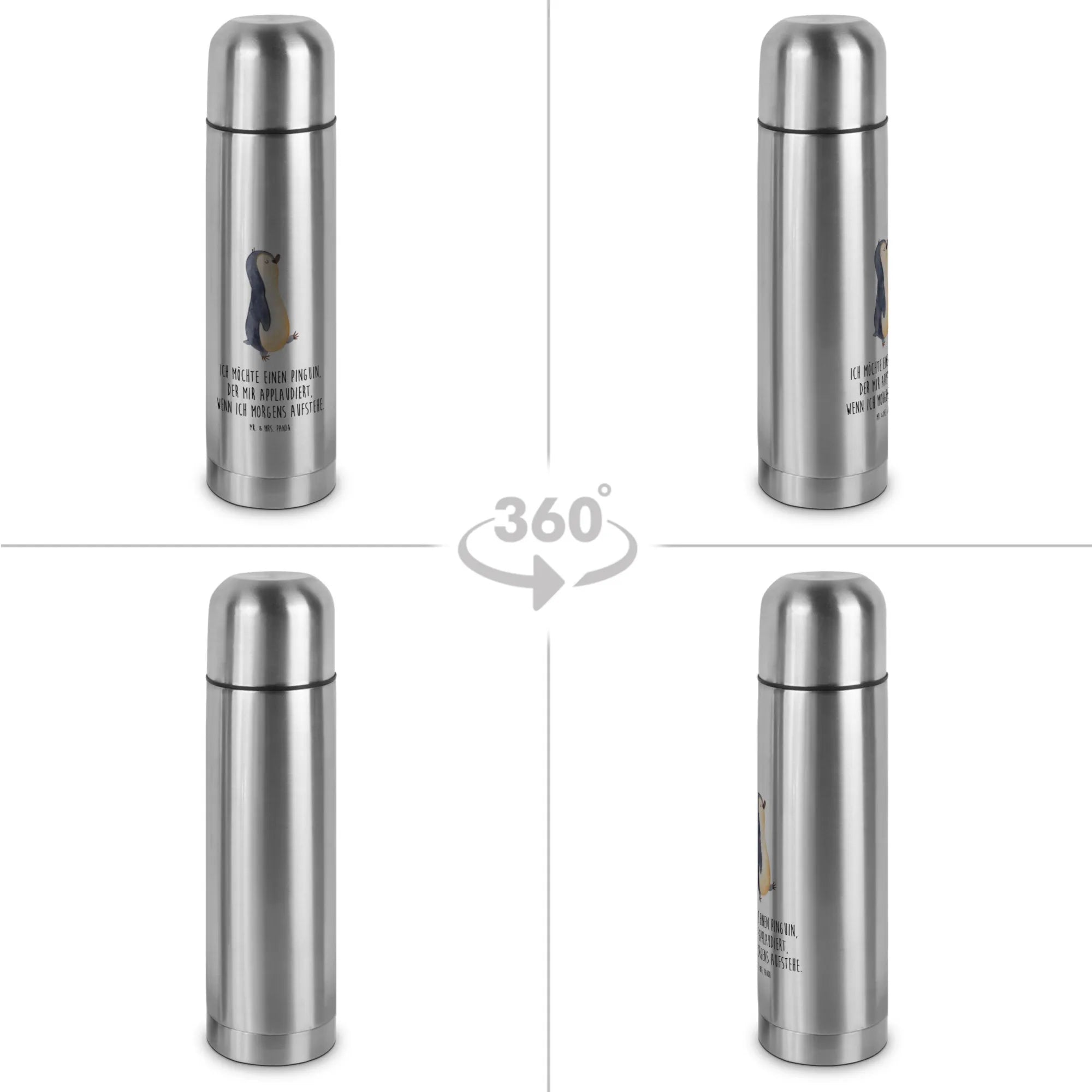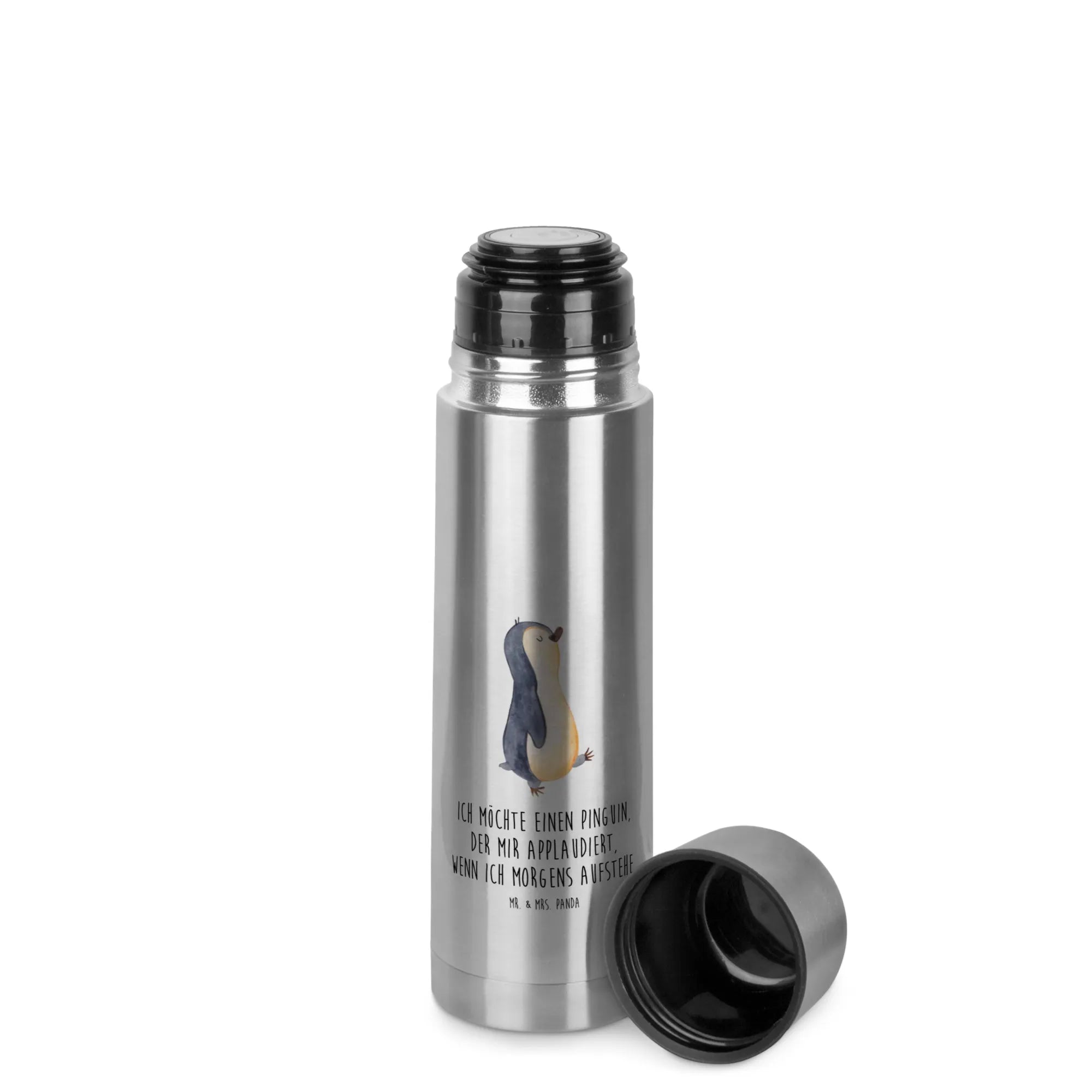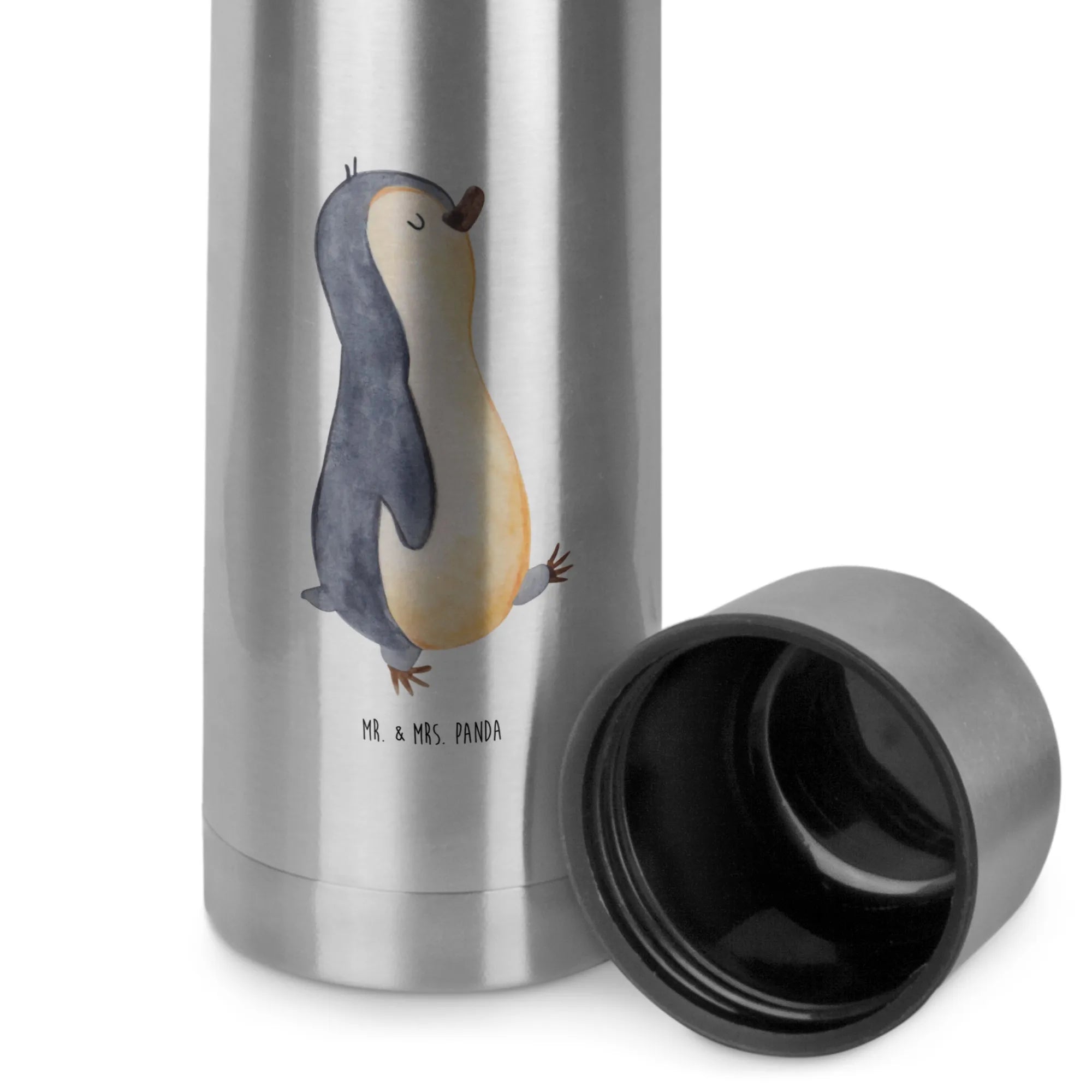 Die Wunderschöne Thermoskanne mit dem süßen Motiv "Pinguin marschierend" aus der Pinguin - Kollektion von Mr. & Mrs. Panda ist das perfekte Geschenk für alle Pinguin-Liebhaber und Frühaufsteher! Mit einer Füllmenge von 500 ml, ist sie ideal, um deine Lieblingsgetränke lange warm zu halten - ganz gleich, ob du deinen ersten Kaffee des Tages in der Früh genießt oder deinen Tee am Nachmittag.