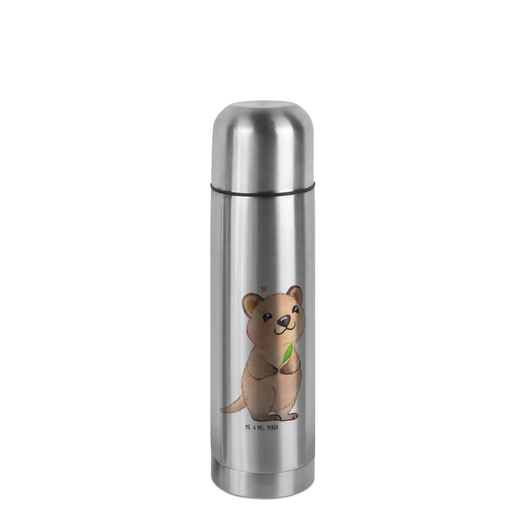 Die Quokka Happy Thermoskanne von Mr. & Mrs. Panda ist nicht nur ein praktischer Begleiter für dein heißes Getränk, sondern auch ein echter Hingucker! Mit dem niedlichen Quokka-Motiv aus unserer beliebten Small World Kollektion sorgt diese Thermoskanne für gute Laune, egal ob im Büro oder beim Ausflug ins Freie. Das Quokka, das fröhlich ein grünes Blatt hält, wird von einem bezaubernden rosa Herz begleitet und macht das Trinken zu einem kleinen Wellness-Moment.
