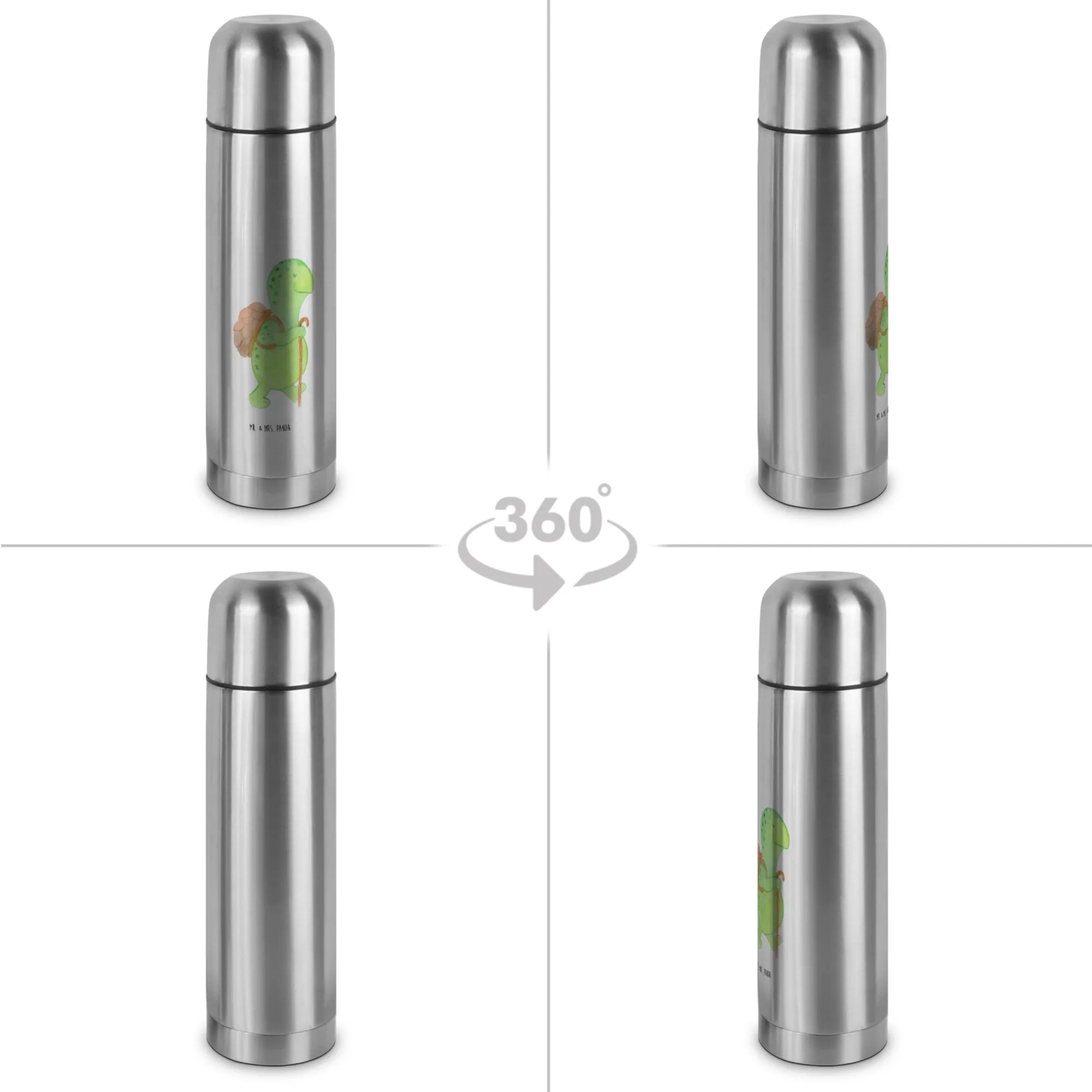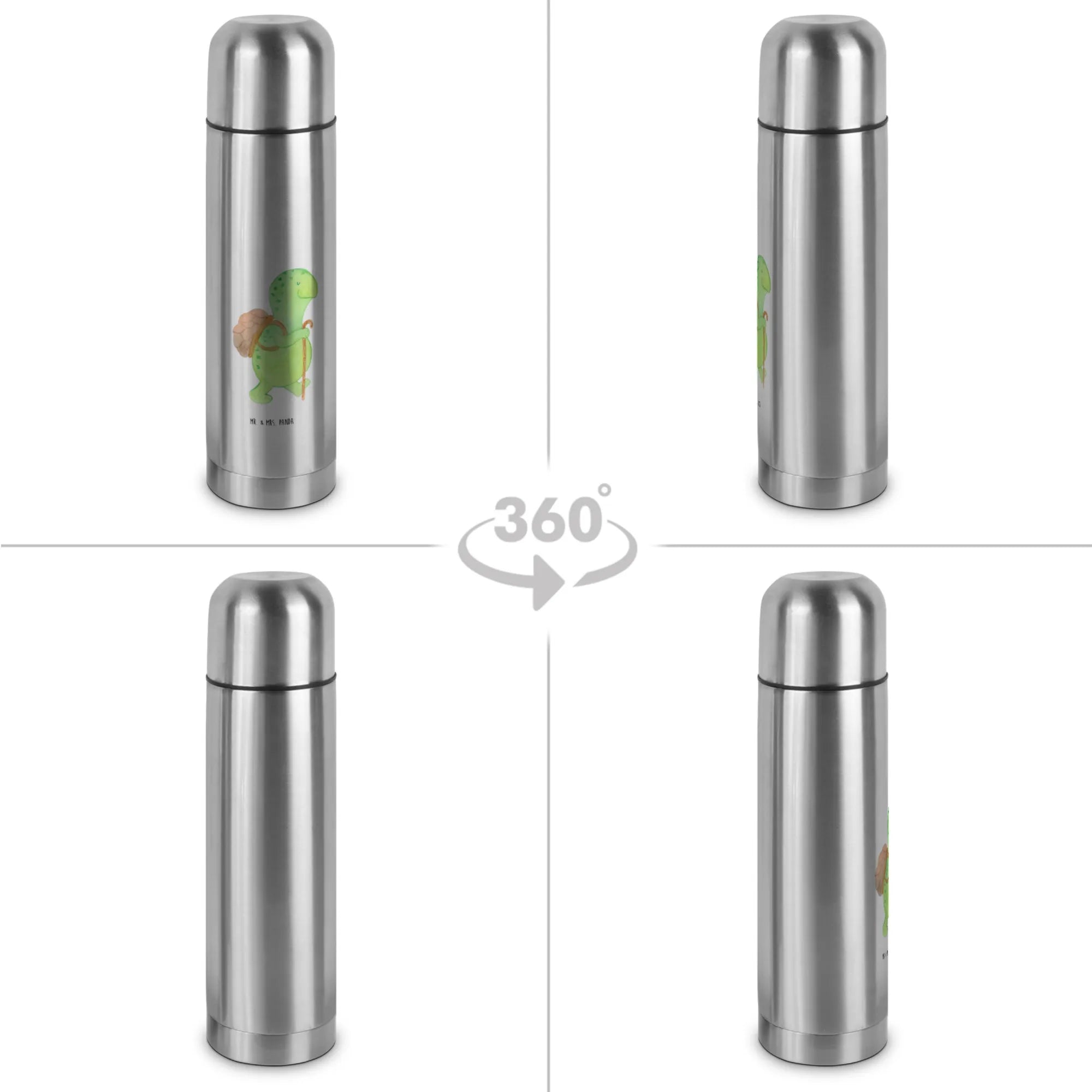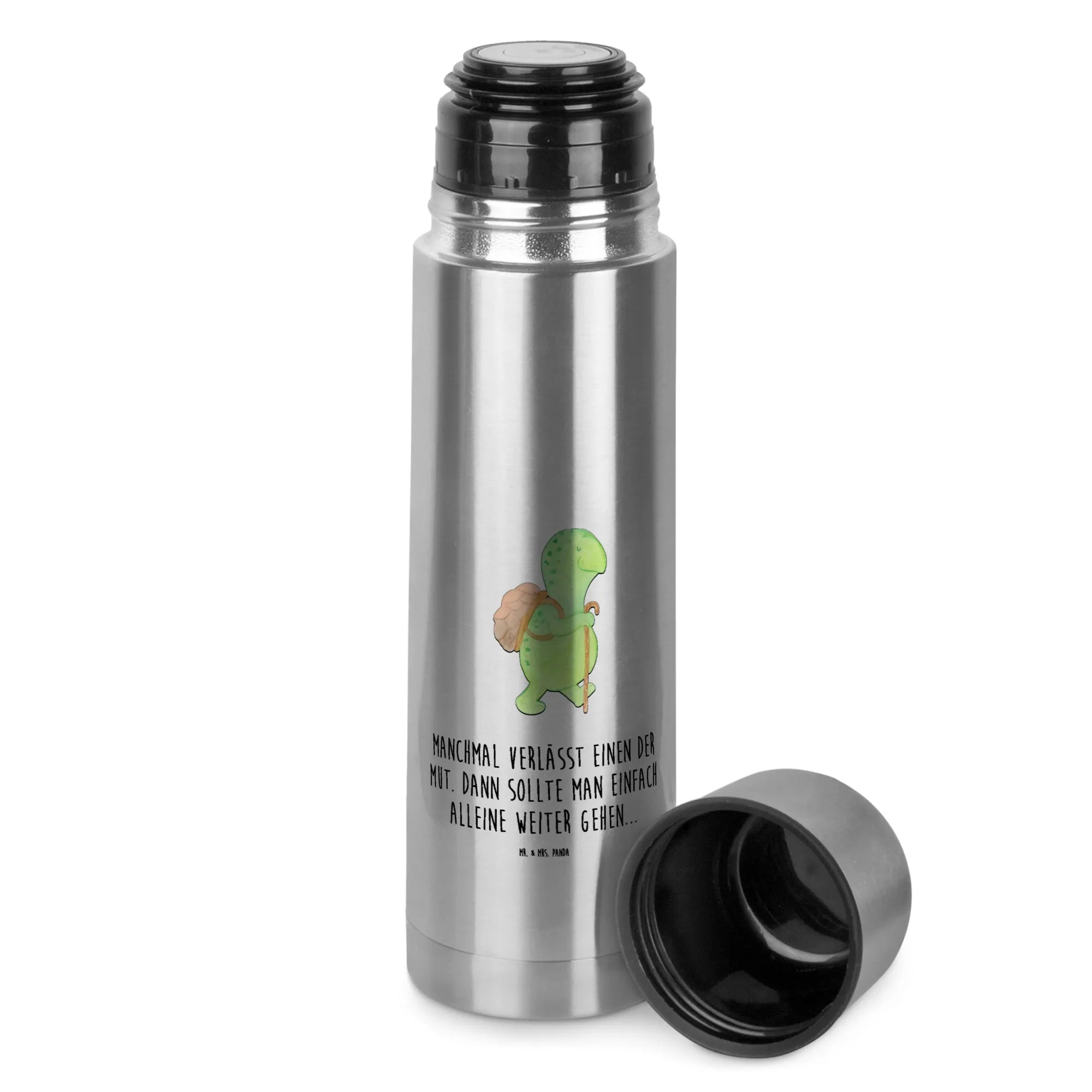 Die Thermoskanne Schildkröte Wanderer von Mr. & Mrs. Panda ist der perfekte Begleiter für alle Abenteuerlustigen! Egal, ob beim Wandern, im Büro oder beim Picknick im Park – diese wunderschöne Thermoskanne hält deine Getränke bis zu 24 Stunden heiß und erfrischend. Mit ihrem süßen, handgezeichneten Motiven einer Schildkröte, die ihren Panzer als kleinen Rucksack trägt, vermittelt sie ein Gefühl von Freiheit und Entdeckungsgeist.