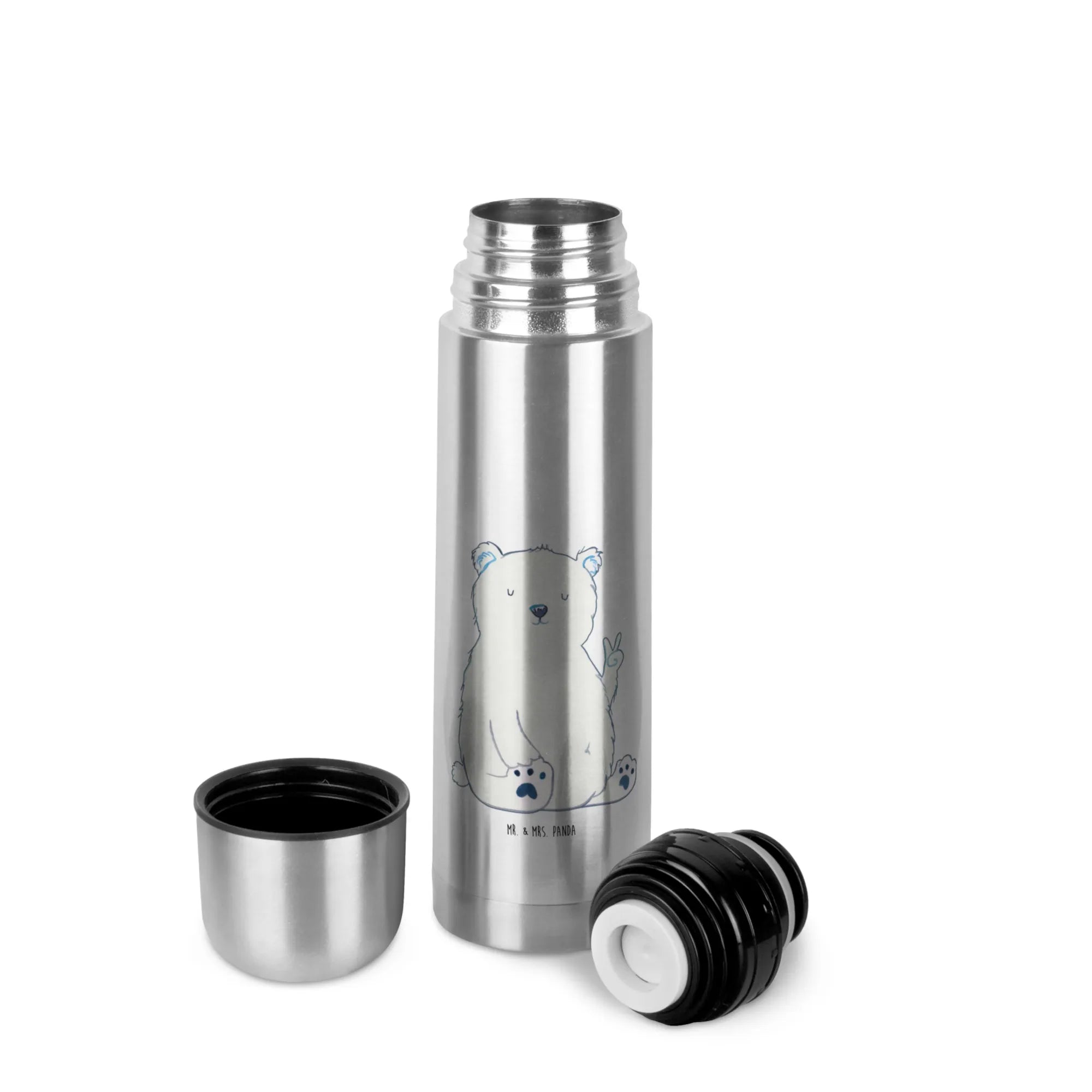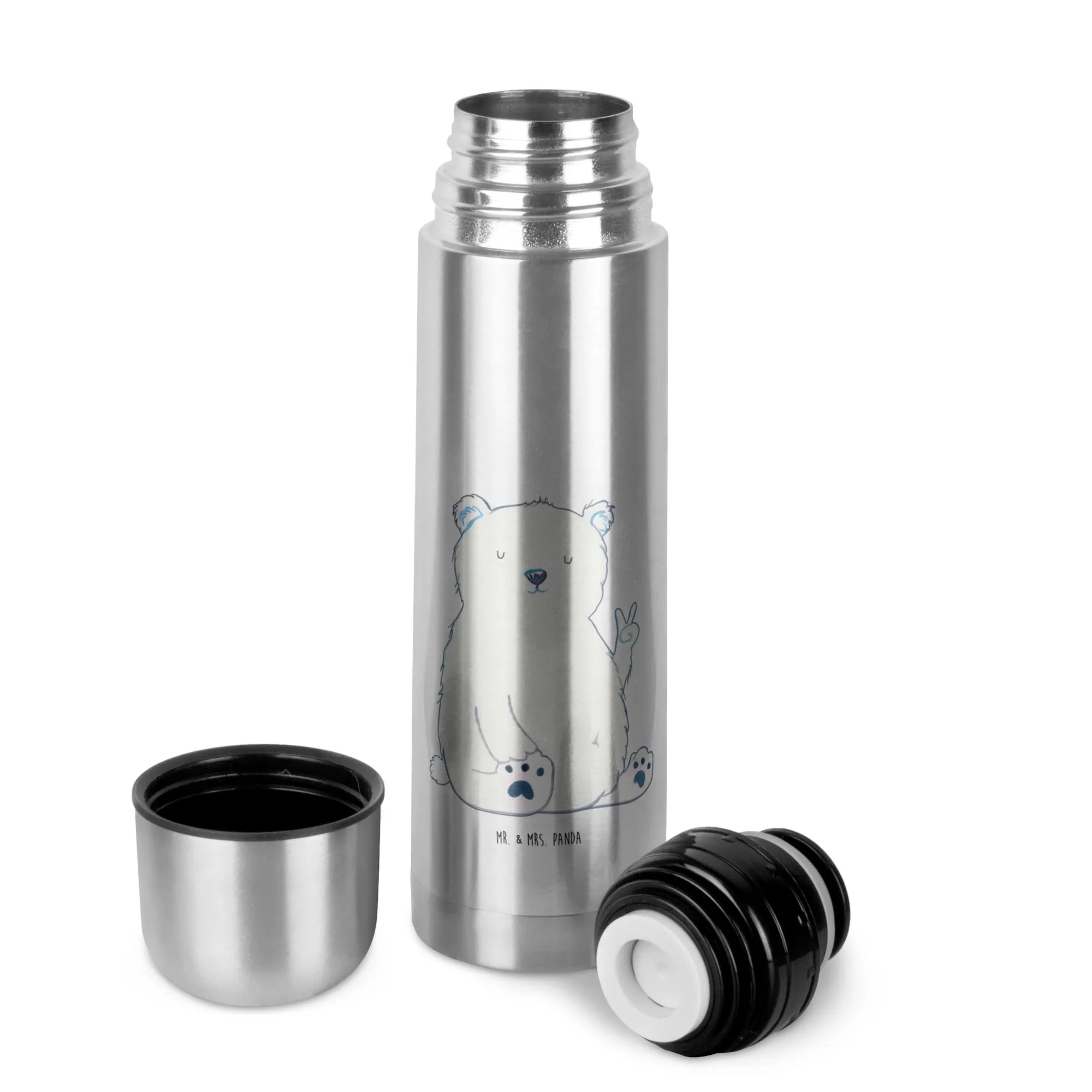 Mit ihrem süßen Eisbär-Motiv, das einen entspannten Bären zeigt, der das Peace-Zeichen macht, ist diese Thermoskanne nicht nur ein praktischer Begleiter für jeden Bürojob, sondern auch ein Blickfang, der ein Lächeln auf dein Gesicht zaubert.