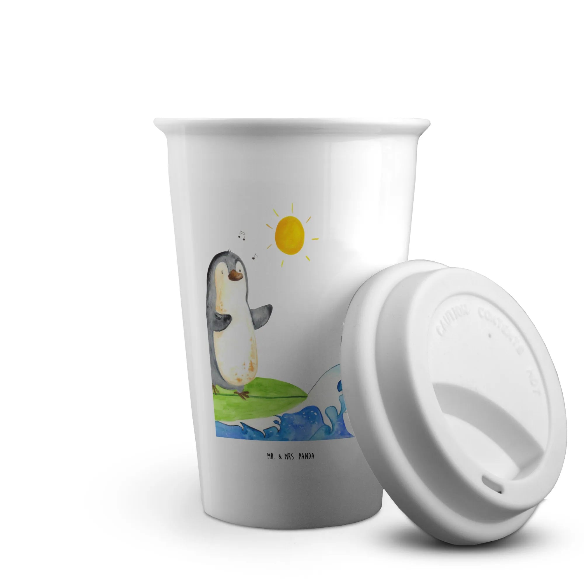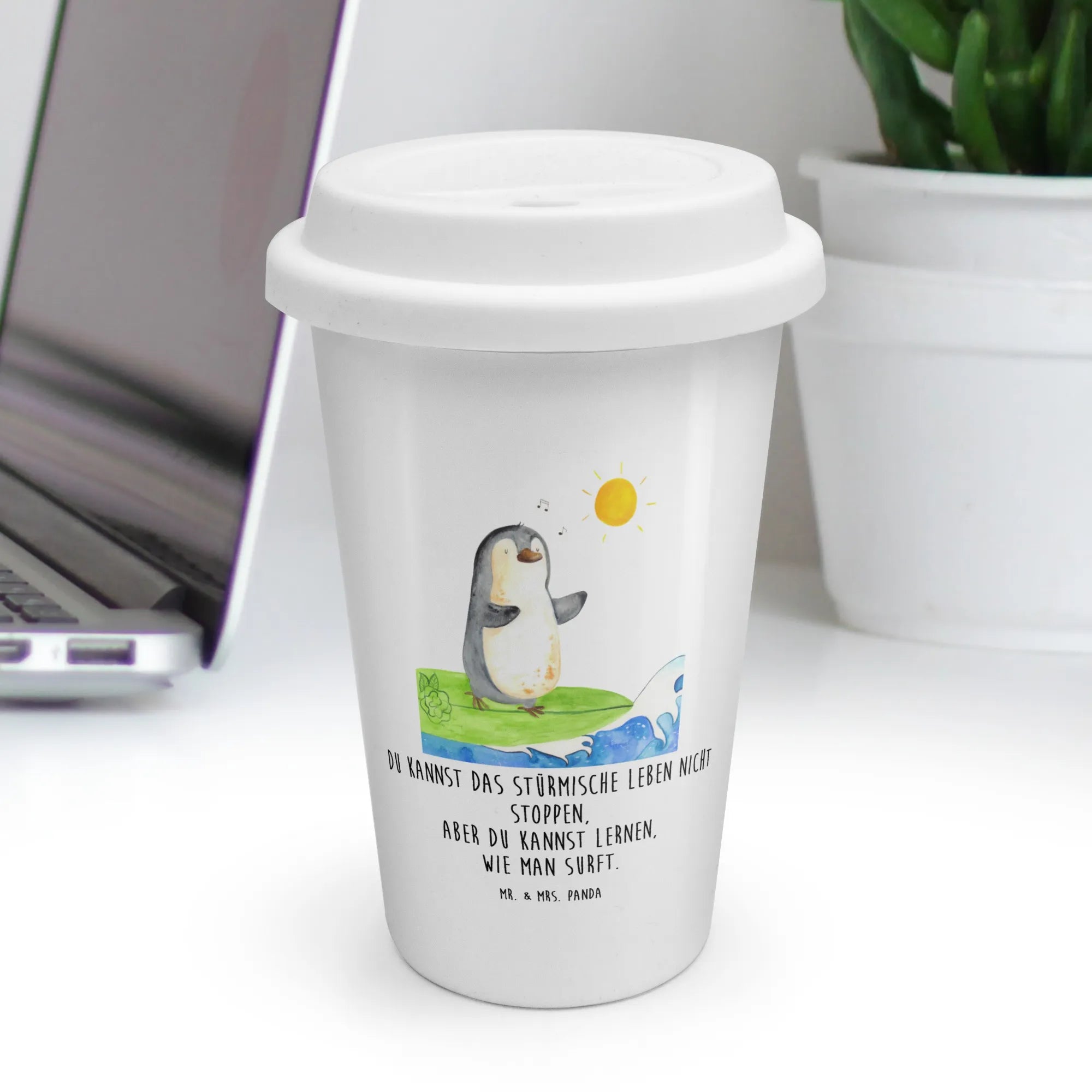 To Go Cup Penguin surfer - with a saying