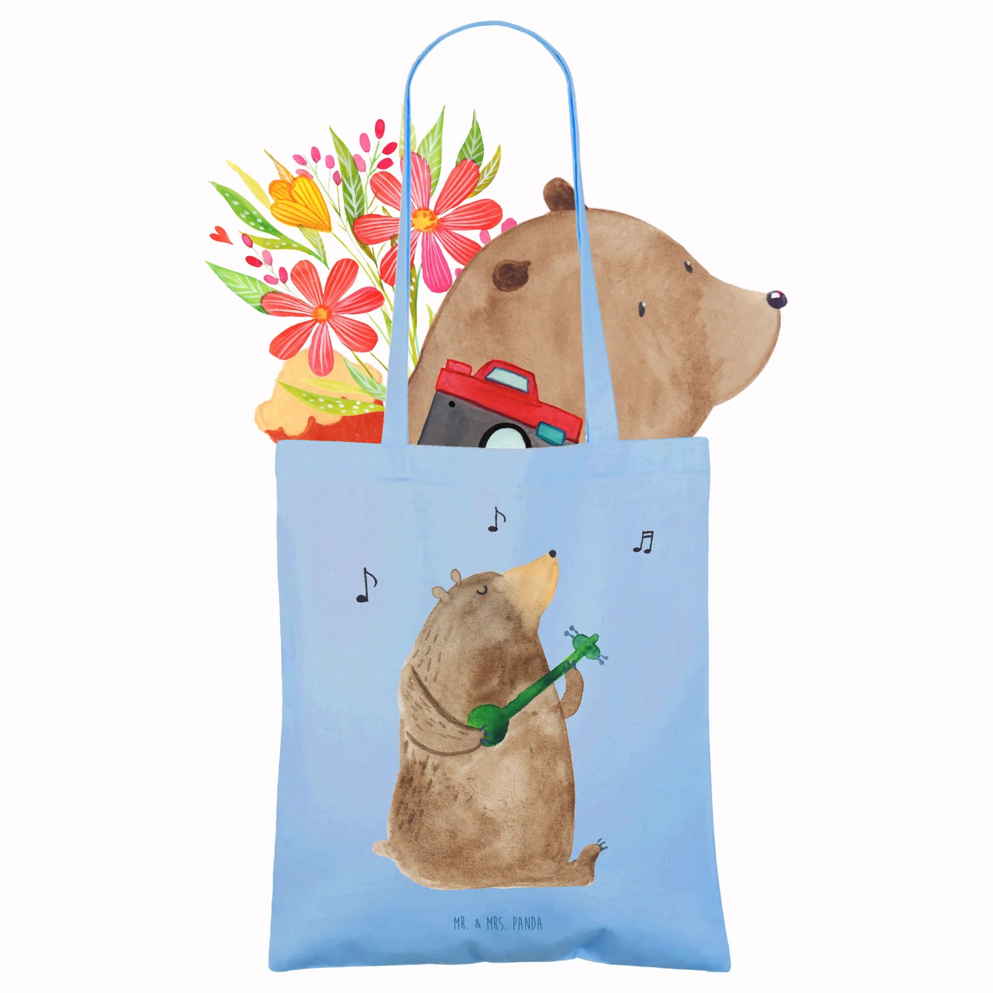 Tote bag bear guitar - with saying - Transparent