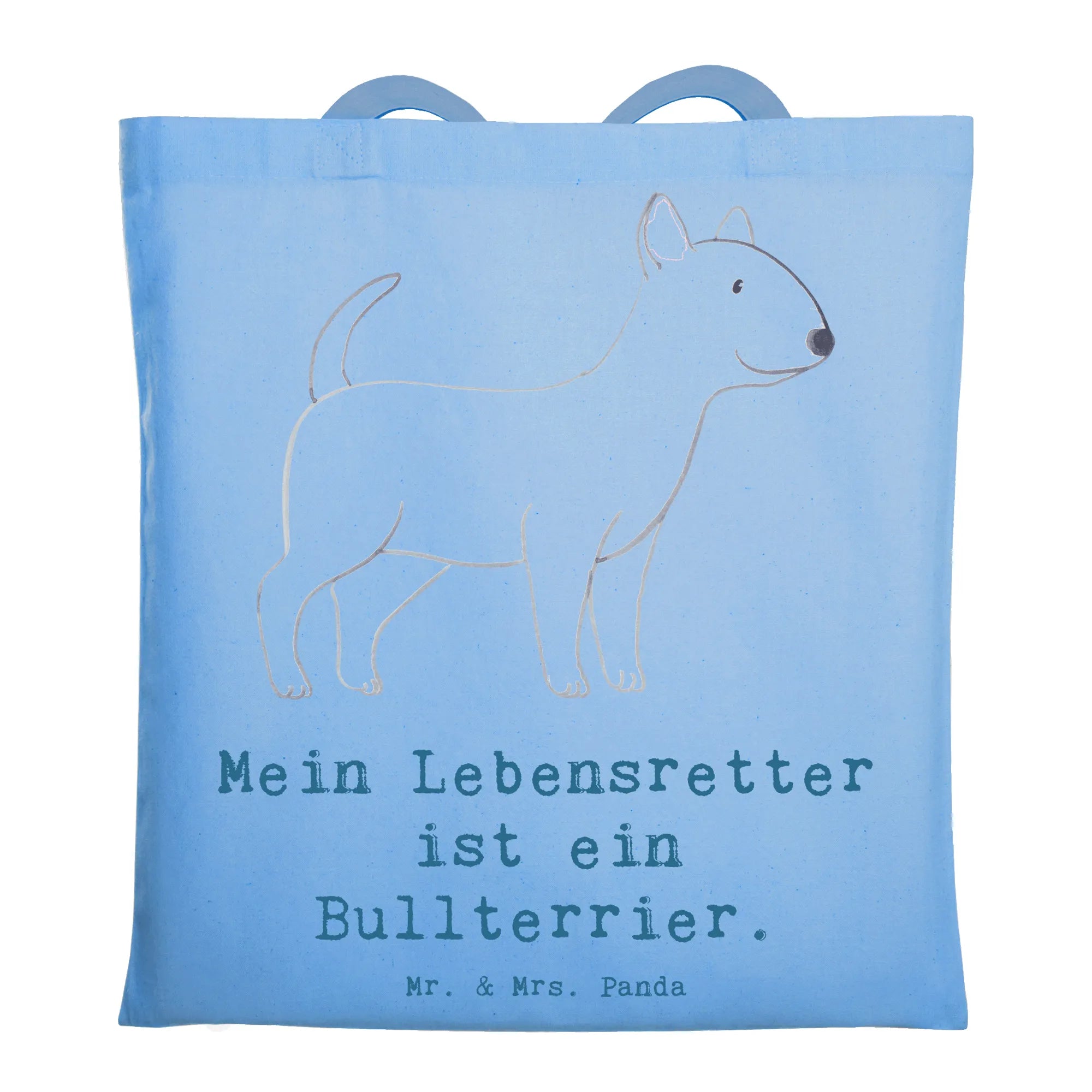 Meet our charming Bull Terrier, the epitome of loyalty and spirit! This delightful design captures the essence of a Bull Terrier standing tall, with an inquisitive expression and perky ears that are always attentive. The soft, rounded lines create a warm, inviting aura that perfectly conveys the joy this breed brings to our lives. With gentle hues adding to its serene appearance, this motif reflects the calm yet playful nature of your beloved companion. 'Mein Lebensretter ist ein Bullterrier' captures the unwavering bond and the life-saving love they provide. These dogs are more than just pets; they're our heroes, always there when we need them most, filling our days with laughter and loyalty.
