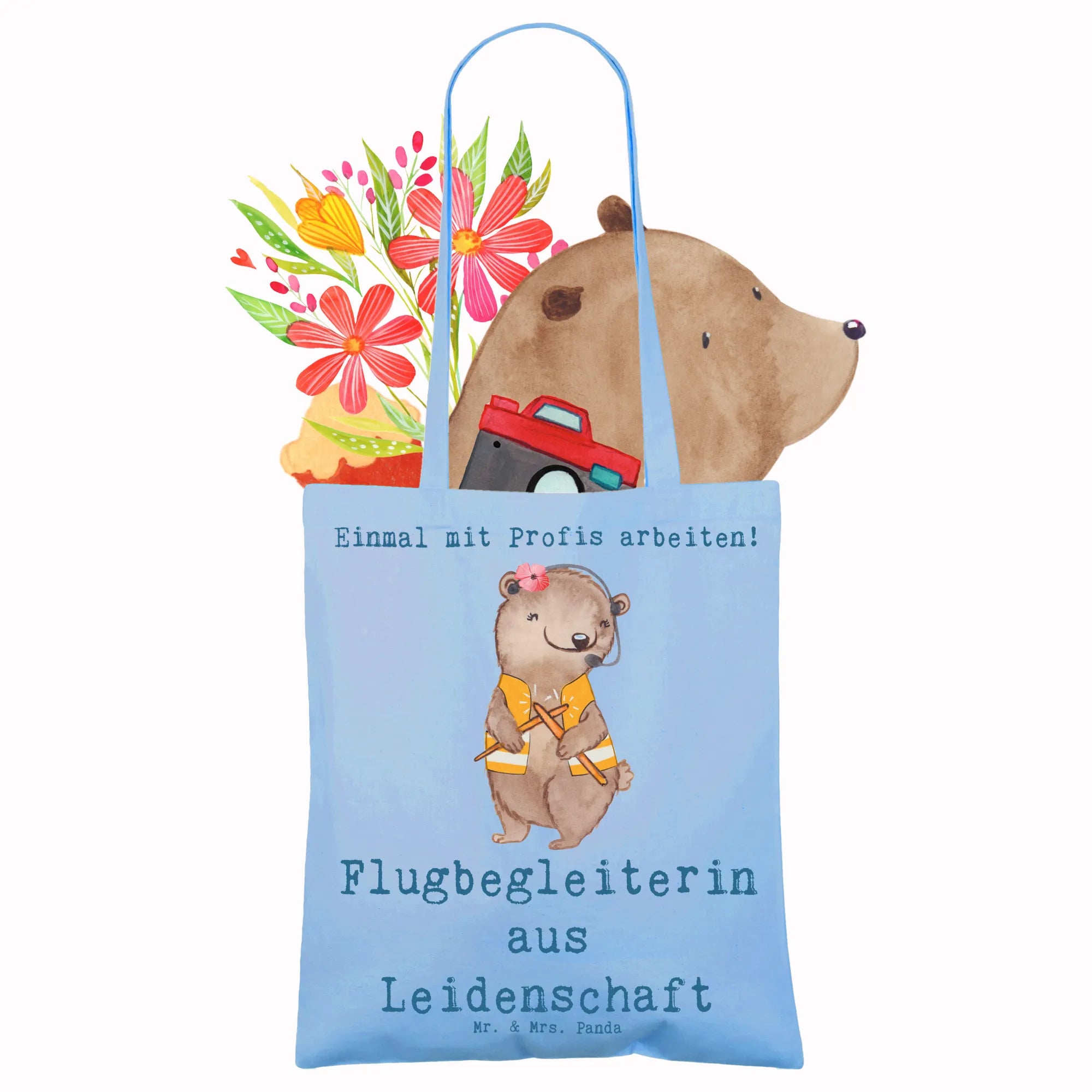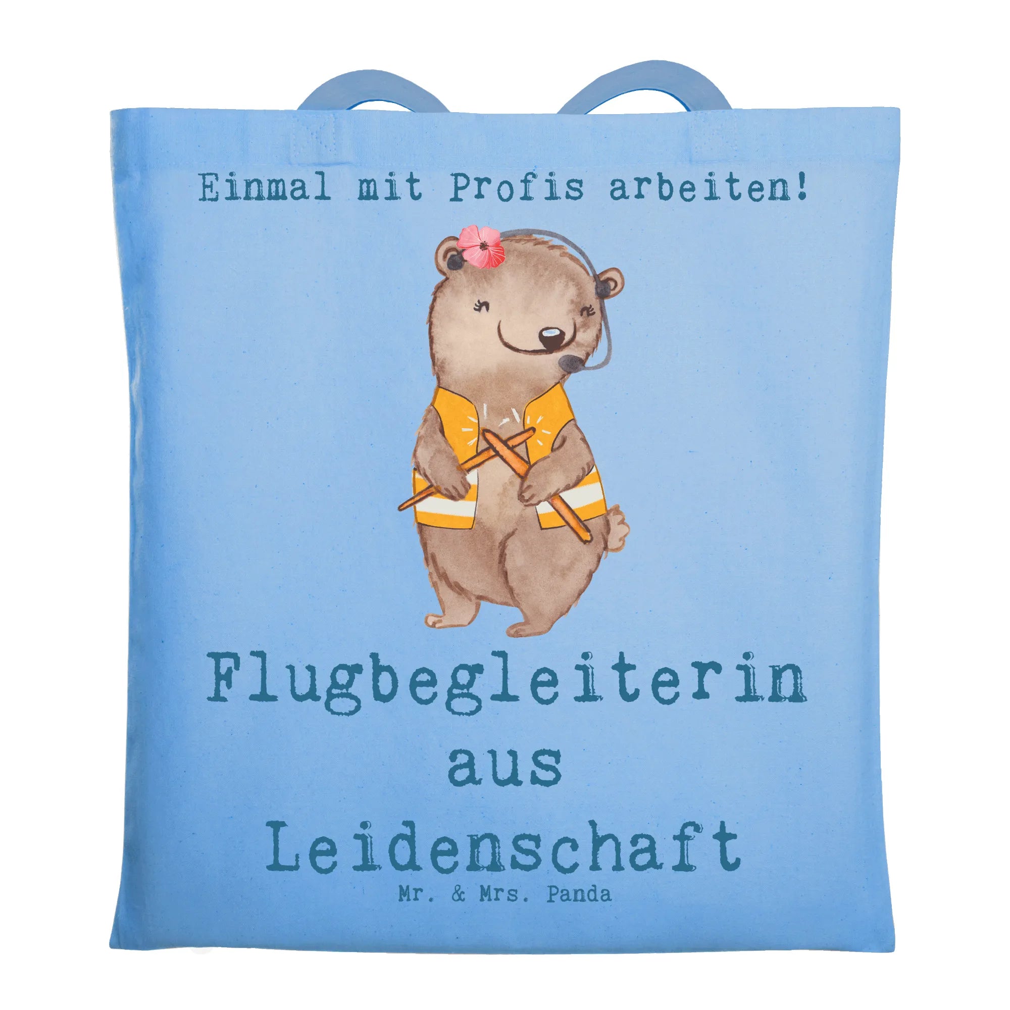 Unsere liebevoll gestaltete Tragetasche von Mr. & Mrs. Panda zeigt eine niedliche Hasendame im schicken Stewardess-Outfit und den stolzen Slogan „Flugbegleiterin aus Leidenschaft“. Das Aquarellmotiv strahlt auf dem ruhigen Sky Blue Hintergrund besondere Leichtigkeit aus und ist ein echter Blickfang für alle, die das Reisen lieben.