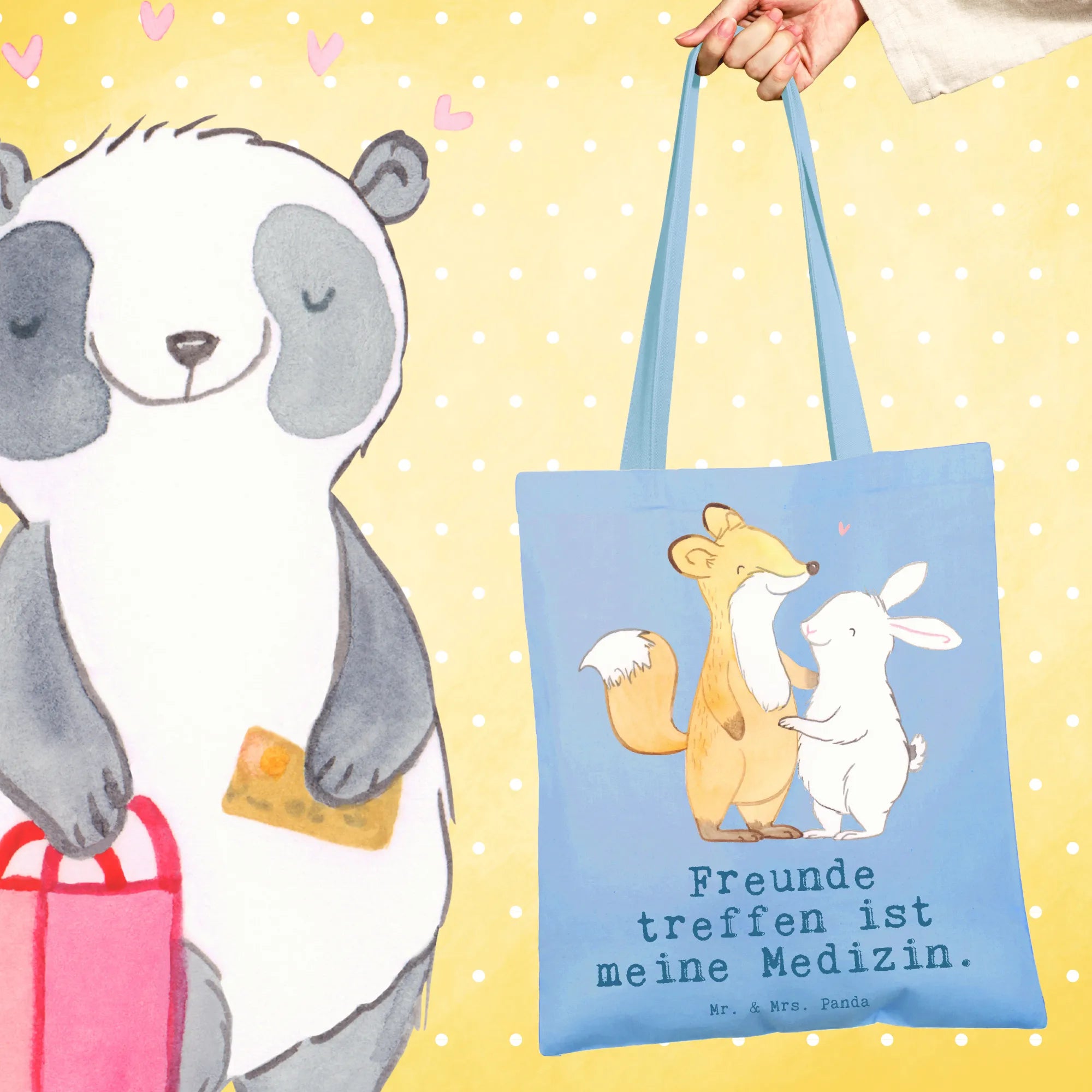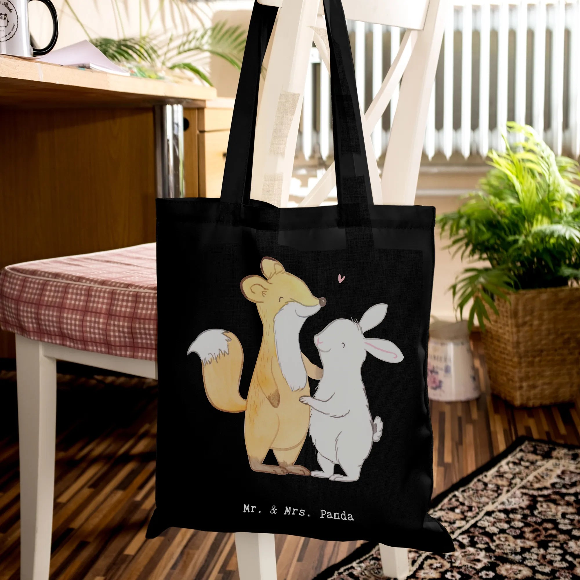 Tote bag fox rabbit meet friends - with saying - Transparent