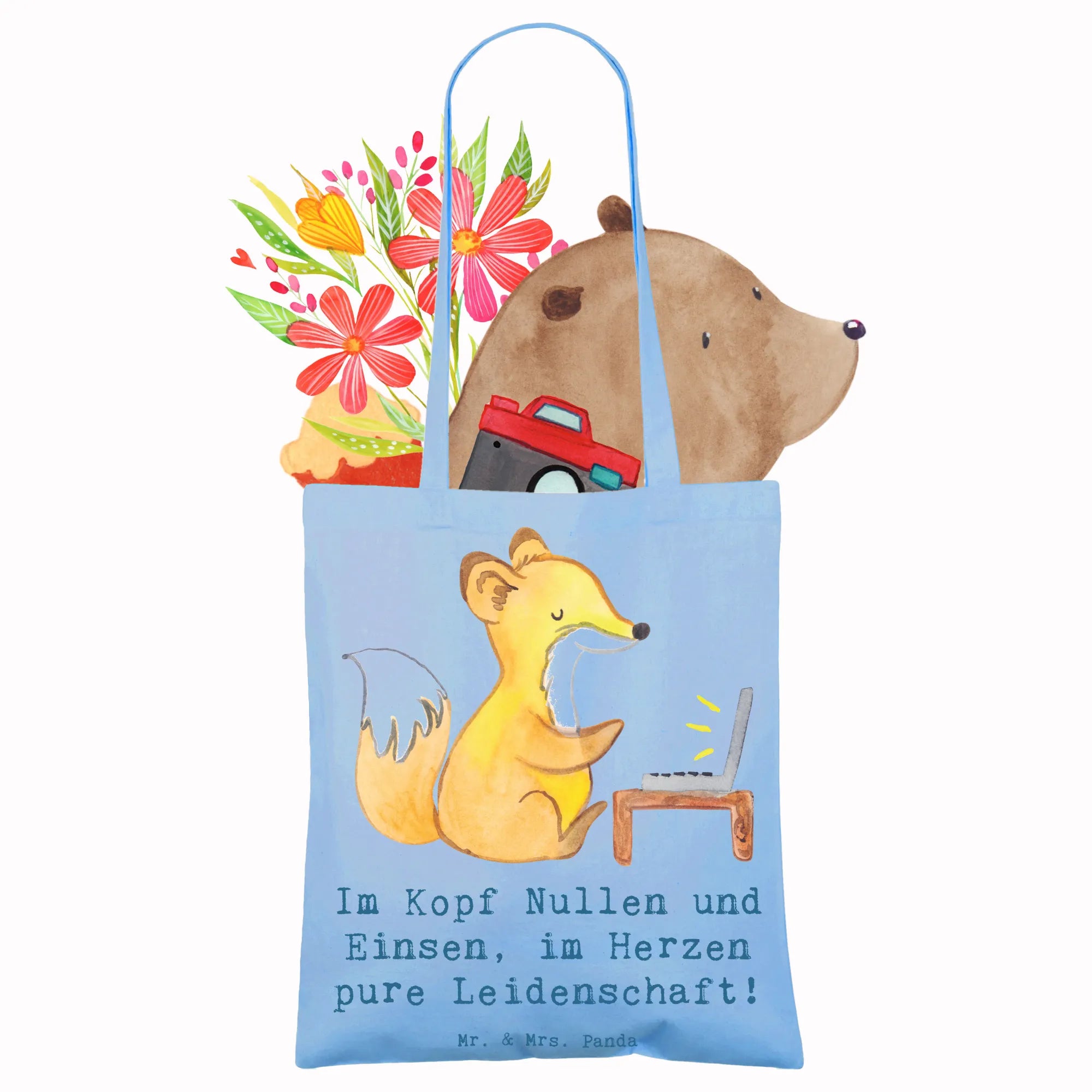 Eine wunderschöne Tragetasche von Mr. & Mrs. Panda – perfekt für alle, die Programmierung mit Leidenschaft leben. Unsere schwarze Tragetasche „Programmierer" trägt den charmanten Spruch „Im Kopf Nullen und Einsen, im Herzen pure Leidenschaft!", liebevoll von Mrs. Panda aquarellhandgezeichnet. Ein Hingucker für Büro, Uni und Alltag.