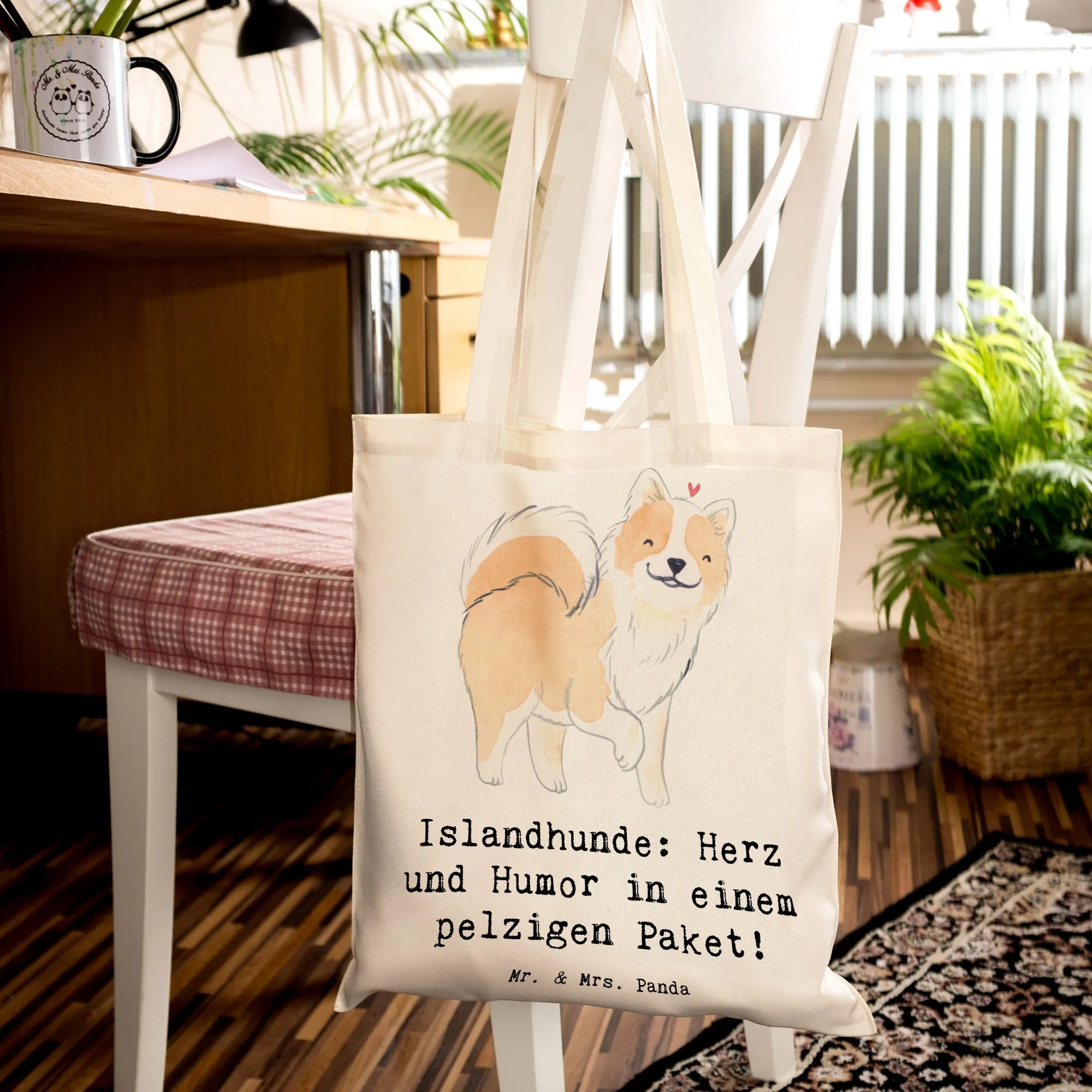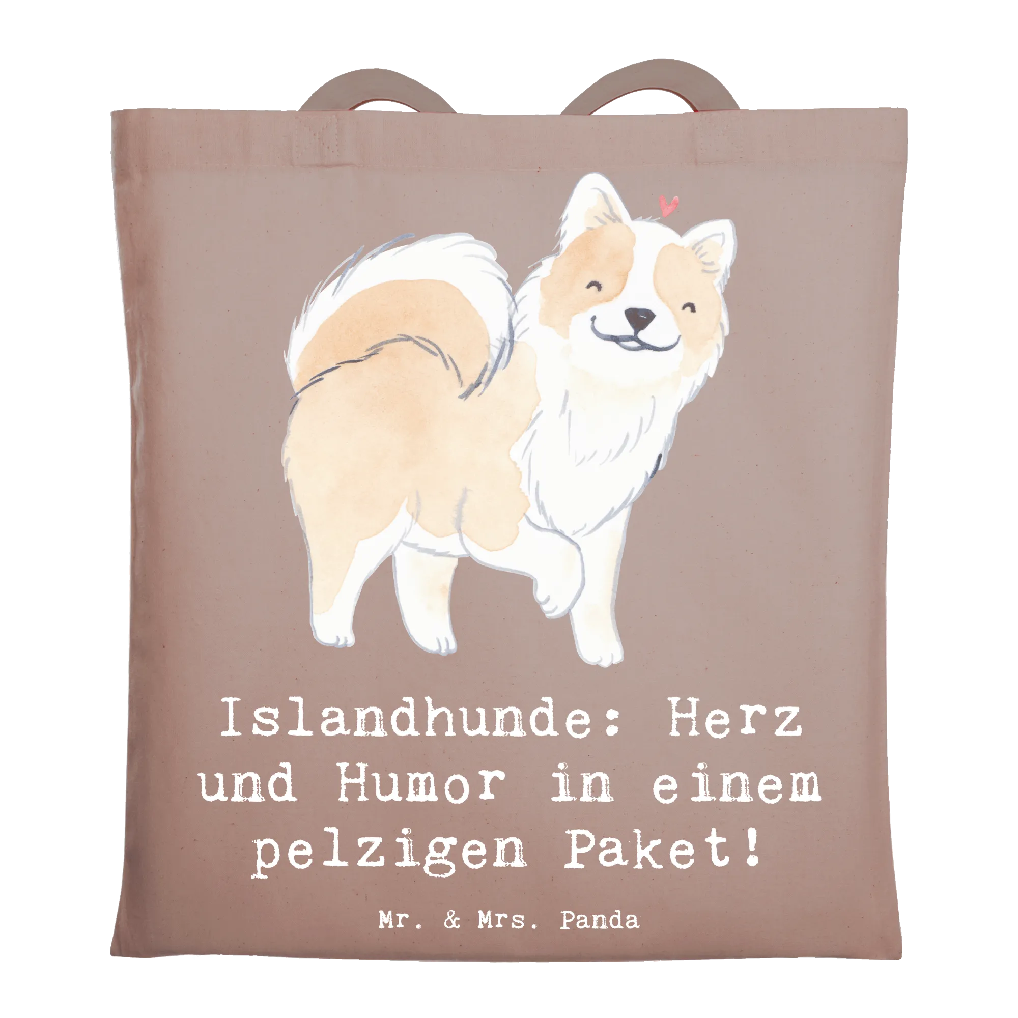 Suchst du eine fröhliche und praktische Tragetasche mit Herz? Unsere Tragetasche Islandhund von Mr. & Mrs. Panda bringt beides zusammen: ein liebevoll gezeichnetes Aquarellmotiv eines Islandhundes und den herzlichen Spruch „Islandhunde: Herz und Humor in einem pelzigen Paket!“ Die warmen Braun-Pastell-Töne machen die Tasche zu einem stilvollen Begleiter für Alltag, Einkauf und Strand.
