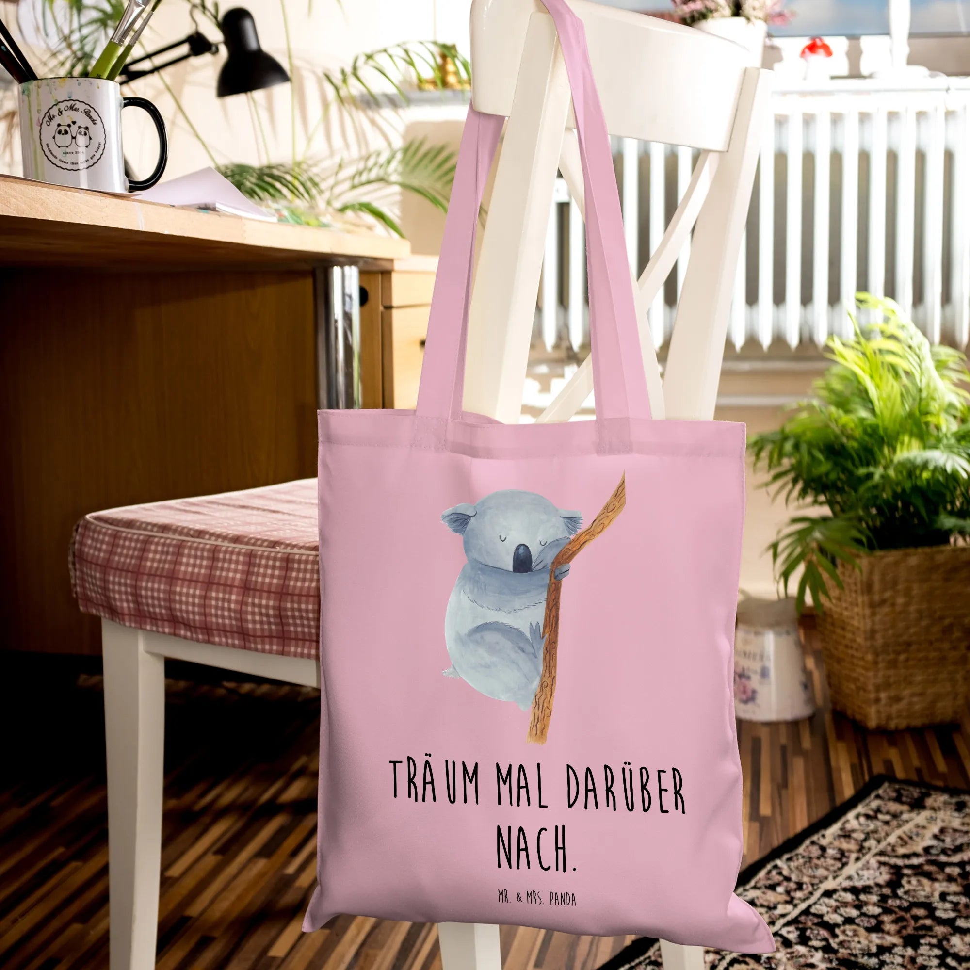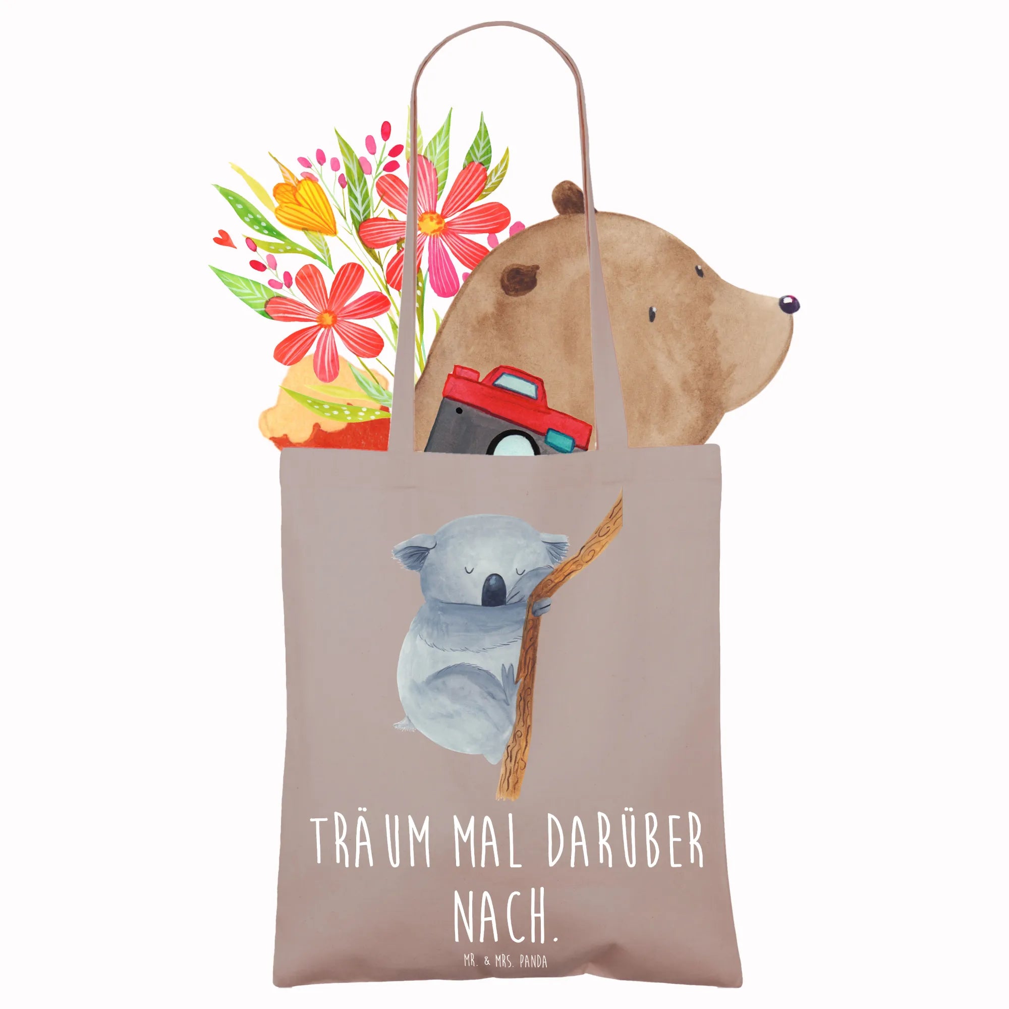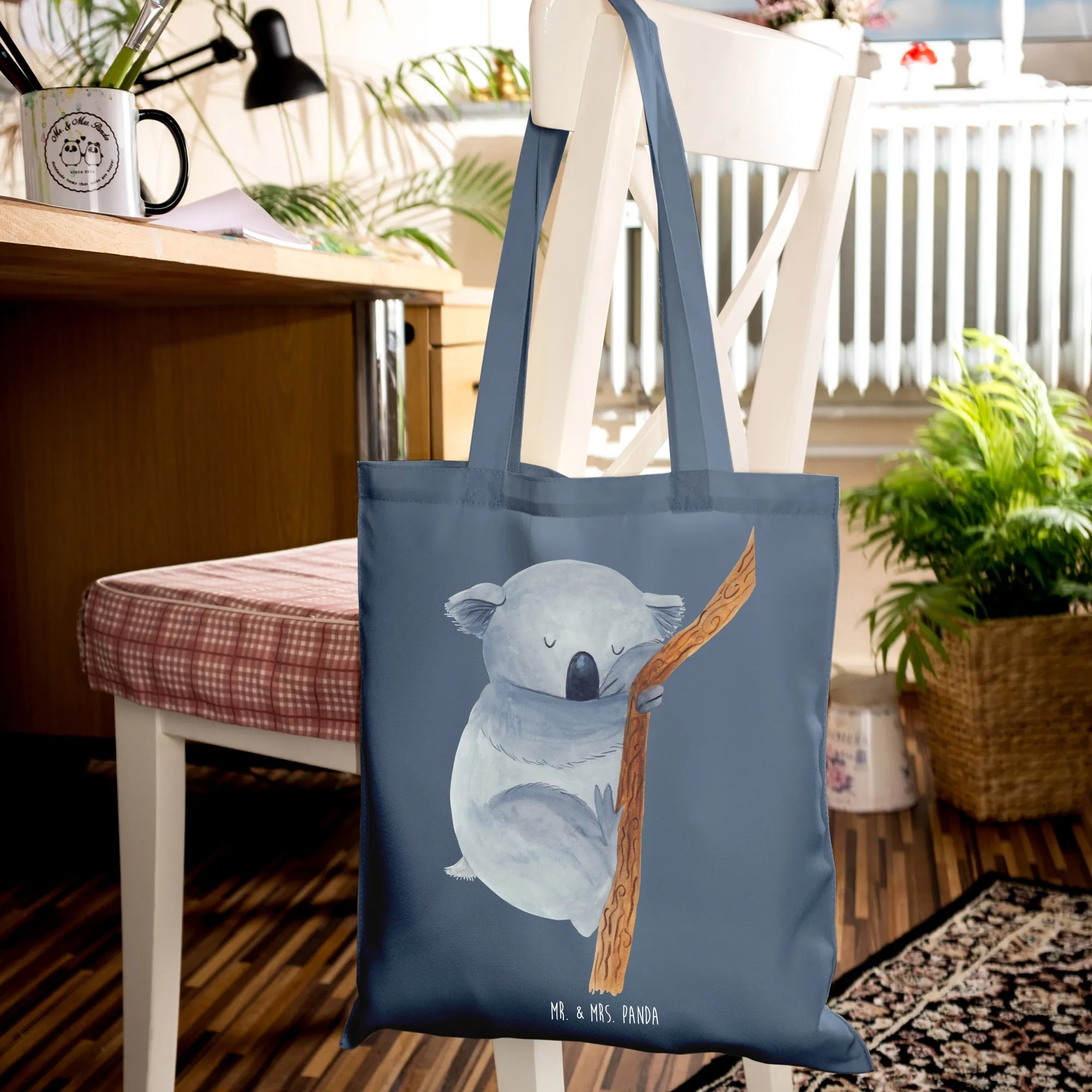 Are you on the lookout for that perfect gift for the animal lover in your life, or maybe even a delightful treat for yourself? Look no further than our stunning Koala Tote Bag from the Small World collection by Mr. & Mrs. Panda! This charming tote bag features an adorable hand-drawn design of a sleepy koala tightly hugging a branch, capturing the essence of comfort and whimsy that we all need in our lives. The slogan, 'Sleep on it and let your dreams guide you', perfectly complements the serene imagery, making it an uplifting addition to your daily accessories.