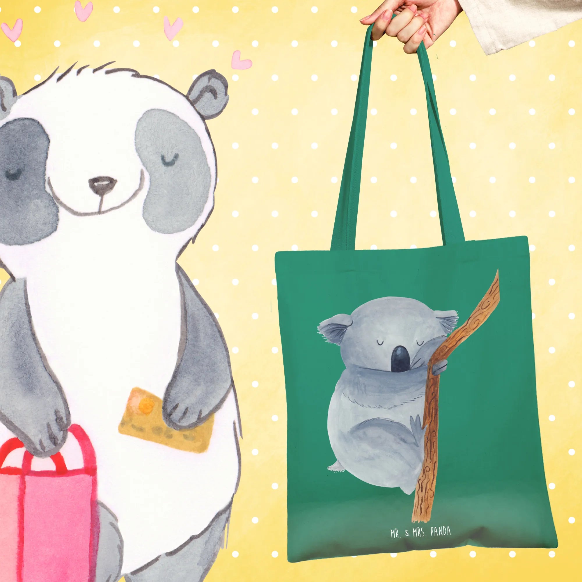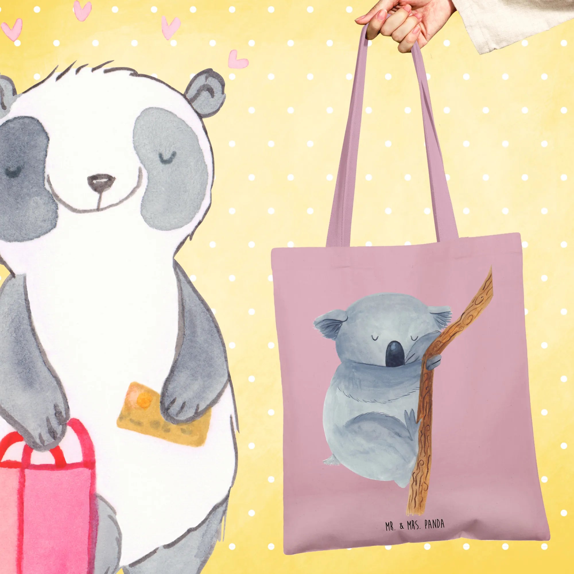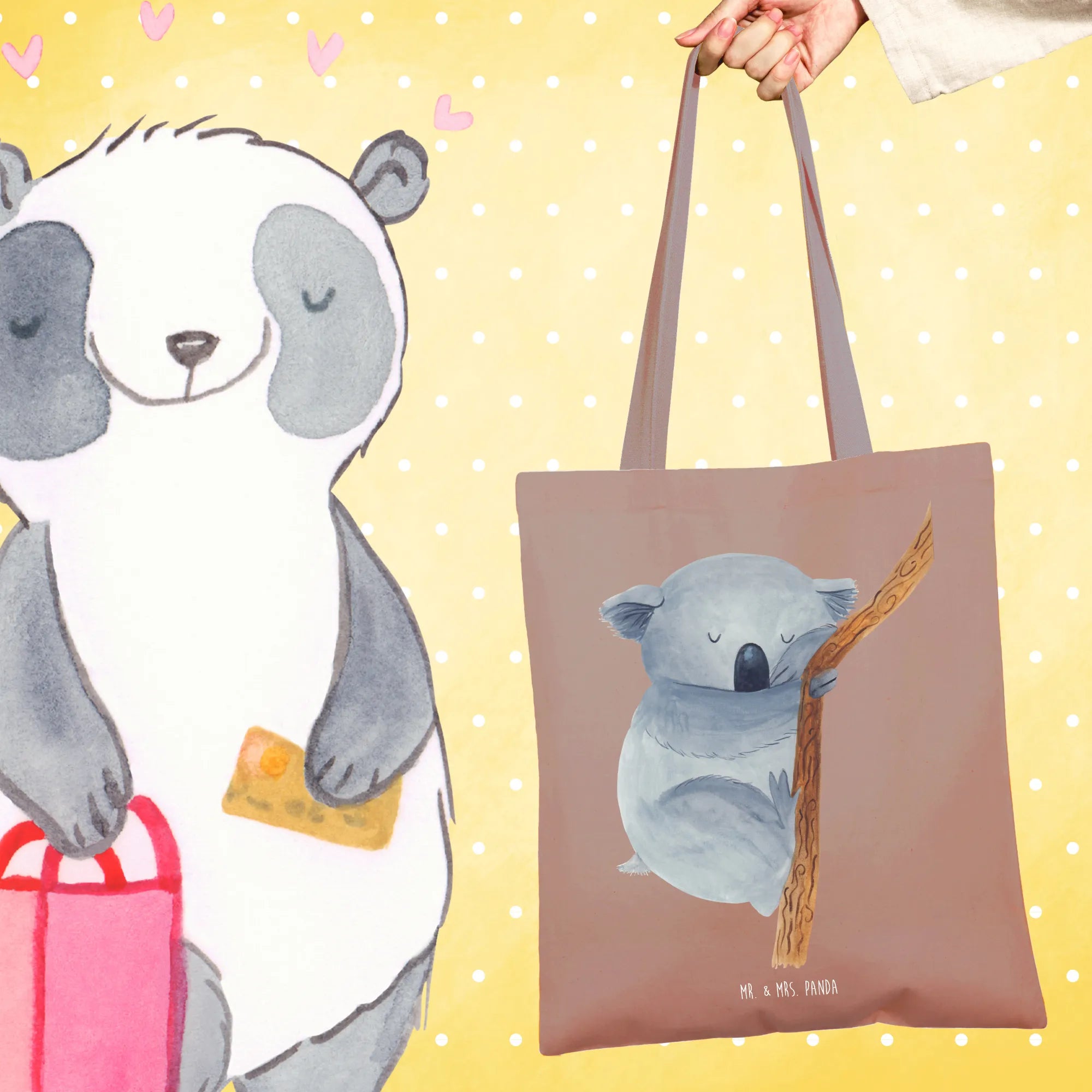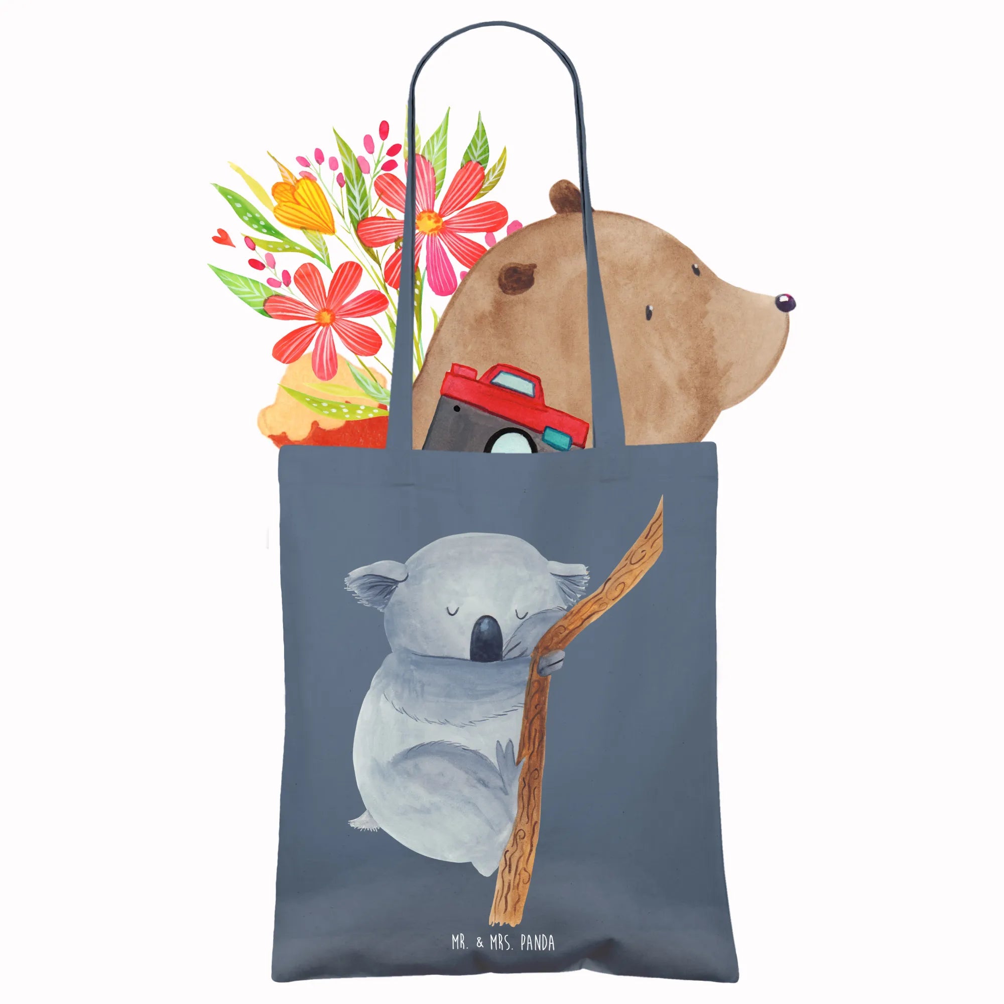 Caring for your Mr. & Mrs. Panda tote is easy, too! We recommend a warm hand wash to keep those lovable characters looking fresh. So, why wait? Grab your very own Koala Tote Bag and start spreading positivity and cuteness in your adventures today! Remember, this isn't just a bag; it's a little piece of happiness you can carry with you every day.