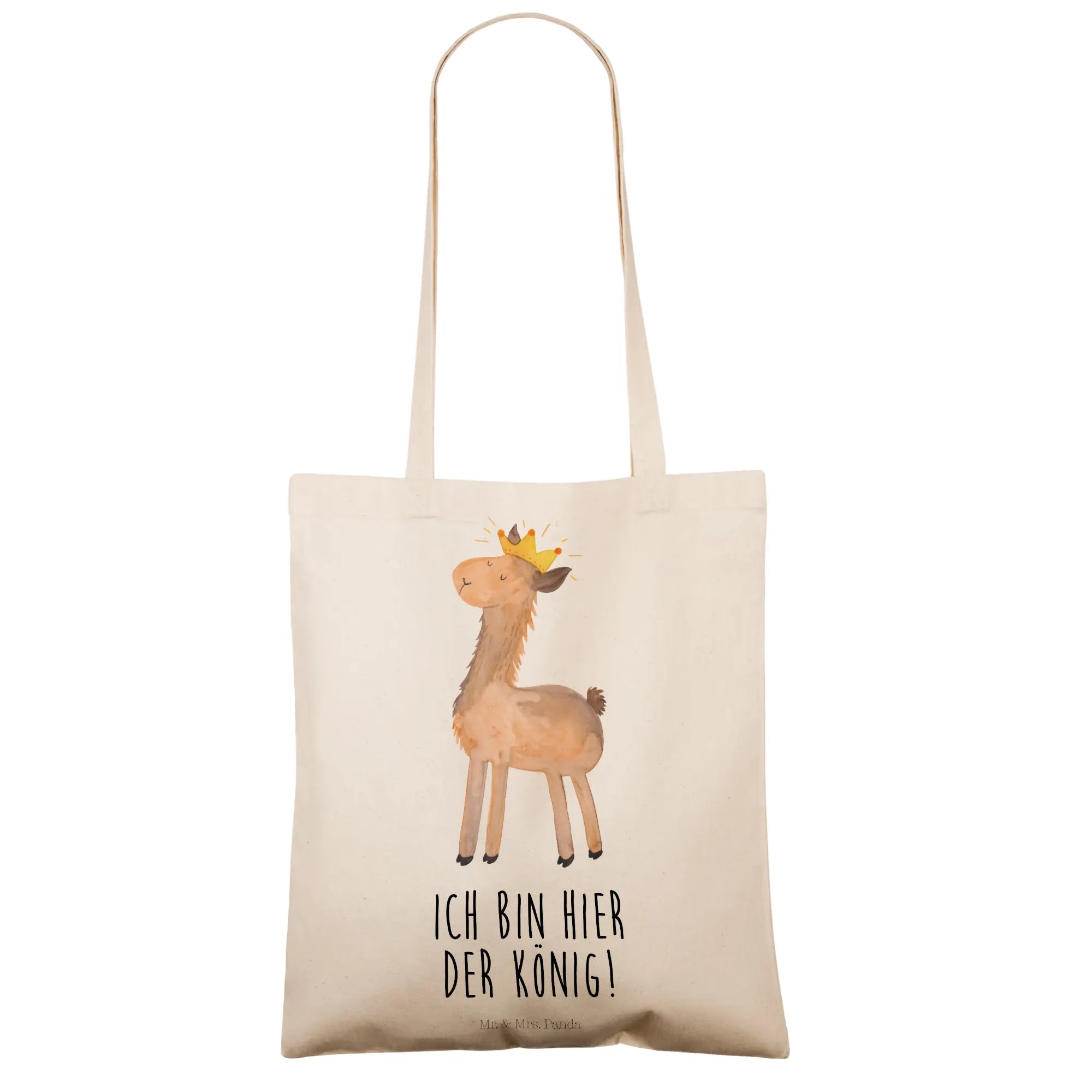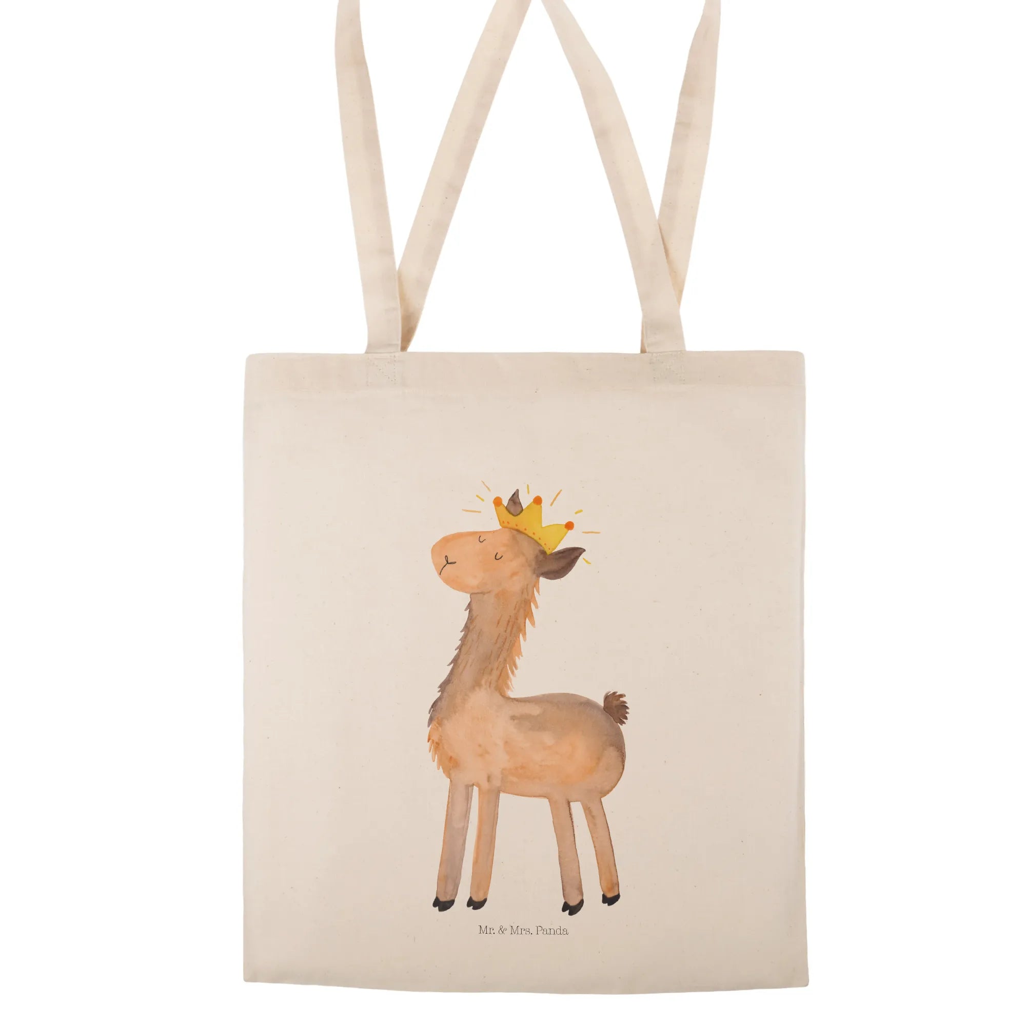 Looking for the perfect gift that combines functionality with a touch of whimsy? Look no further than the delightful Mr. & Mrs. Panda Tote Bag featuring our beloved "Lama King" motif! Made from 100% organic cotton, this sturdy and stylish shopping bag is not just a practical choice but also a fashionable statement piece. It has been beautifully hand-printed, ensuring every detail—from the charming llama wearing a crown to the high-quality material—is crafted with love and care.