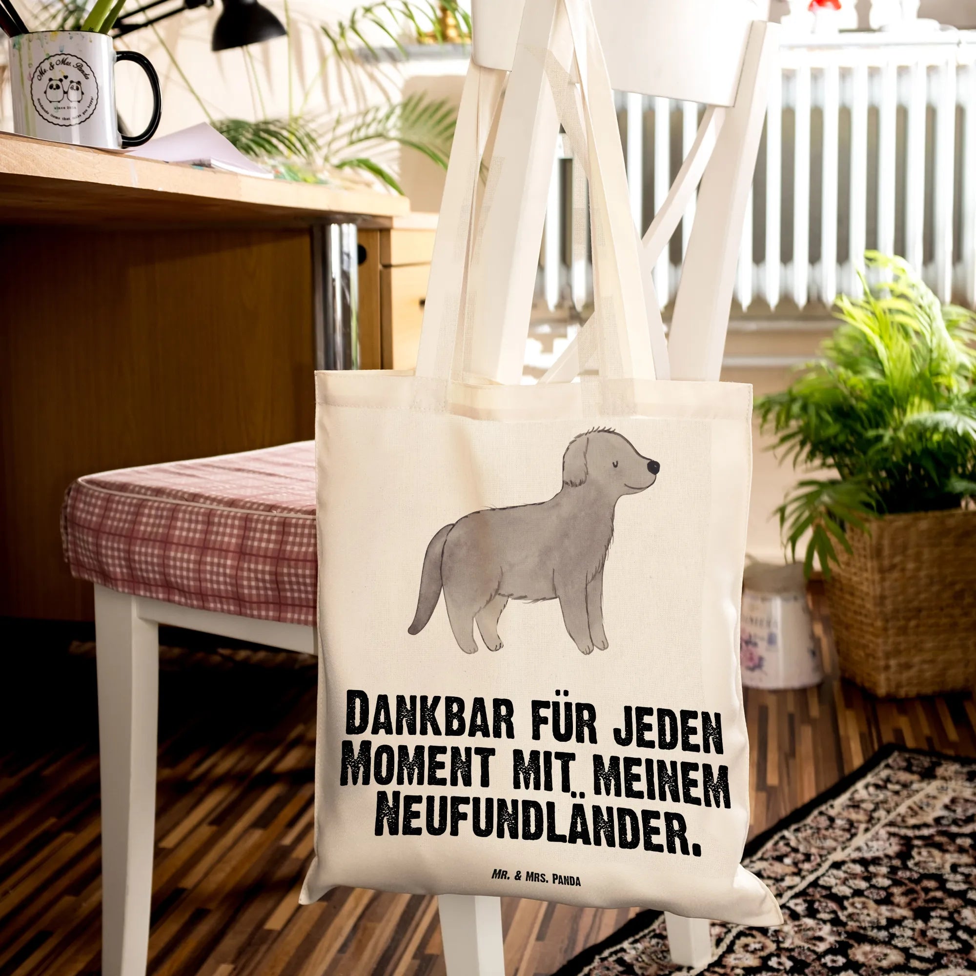 Picture a gentle Newfoundland, with its soft gray fur and trustworthy eyes gazing lovingly back at you. With the saying, 'Dankbar für jeden Moment mit meinem Neufundländer,' we celebrate the warmth and joy brought by this incredible breed. This motif is all about relishing life’s simple pleasures—whether it’s a calming walk in the park or sweet moments of peace at home. Each interaction with your Newfoundland adds a layer of joy and connection to your daily life. These wonderful moments with your furry friend remind us that happiness is often found in the simplest of things. So, let’s embrace and cherish these precious experiences, because they are the fabric that weaves our hearts together.