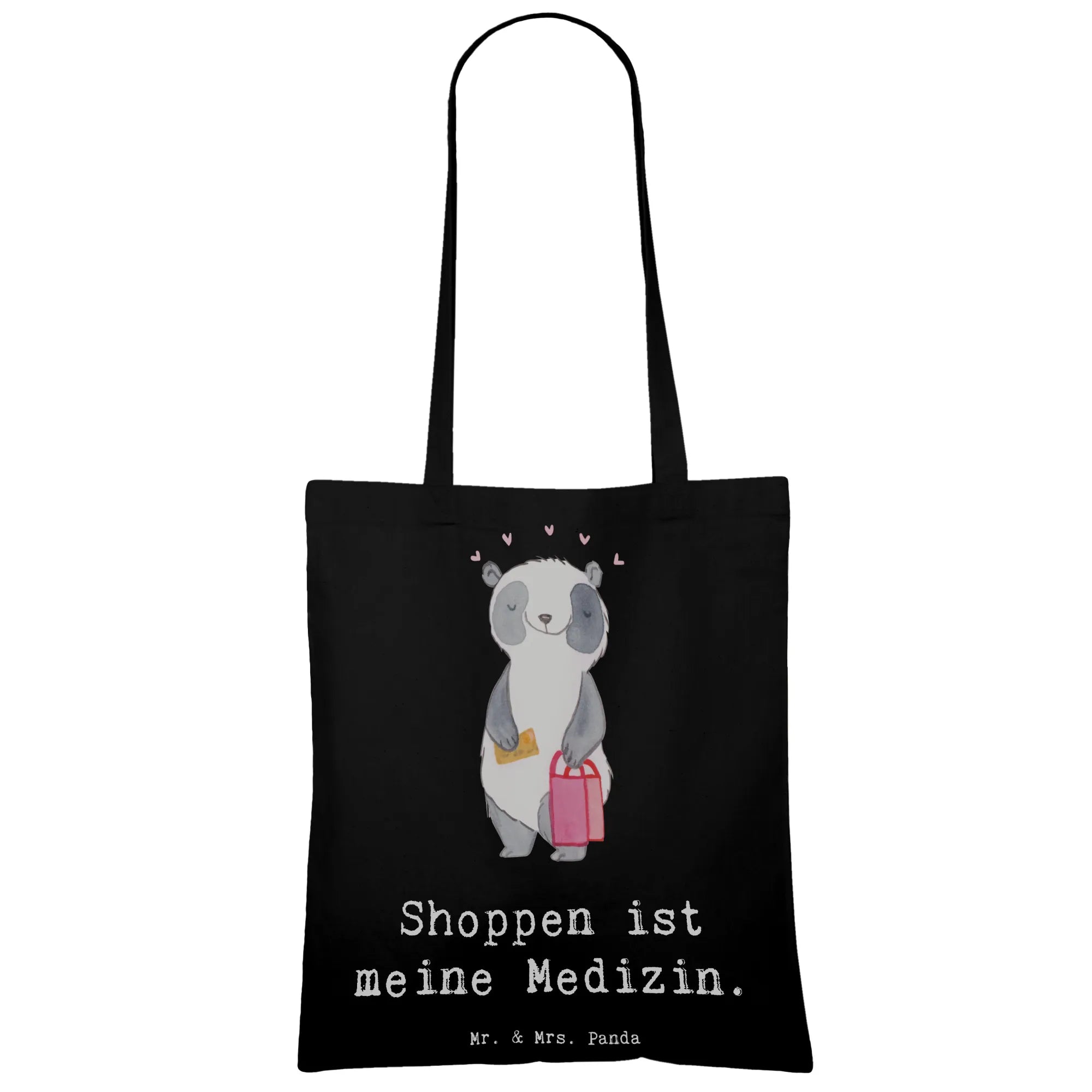 Visualize an exuberant panda, bounding forward with excitement, arms full of delightful shopping bags that exude joy at every turn. Our adorable panda embraces the mantra 'Shoppen ist meine Medizin' as a beautiful reminder of how shopping can transform our day. Each bag represents a unique story waiting to be discovered, from special gifts to treasures we treat ourselves with. This motif isn’t just a portrayal of a fun shopping experience; it’s an invitation to celebrate life’s little pleasures and indulge in ourselves without hesitation. As our panda joyfully roams the aisles, remember that shopping is not just about the items we take home, but the happiness we gather along the way.