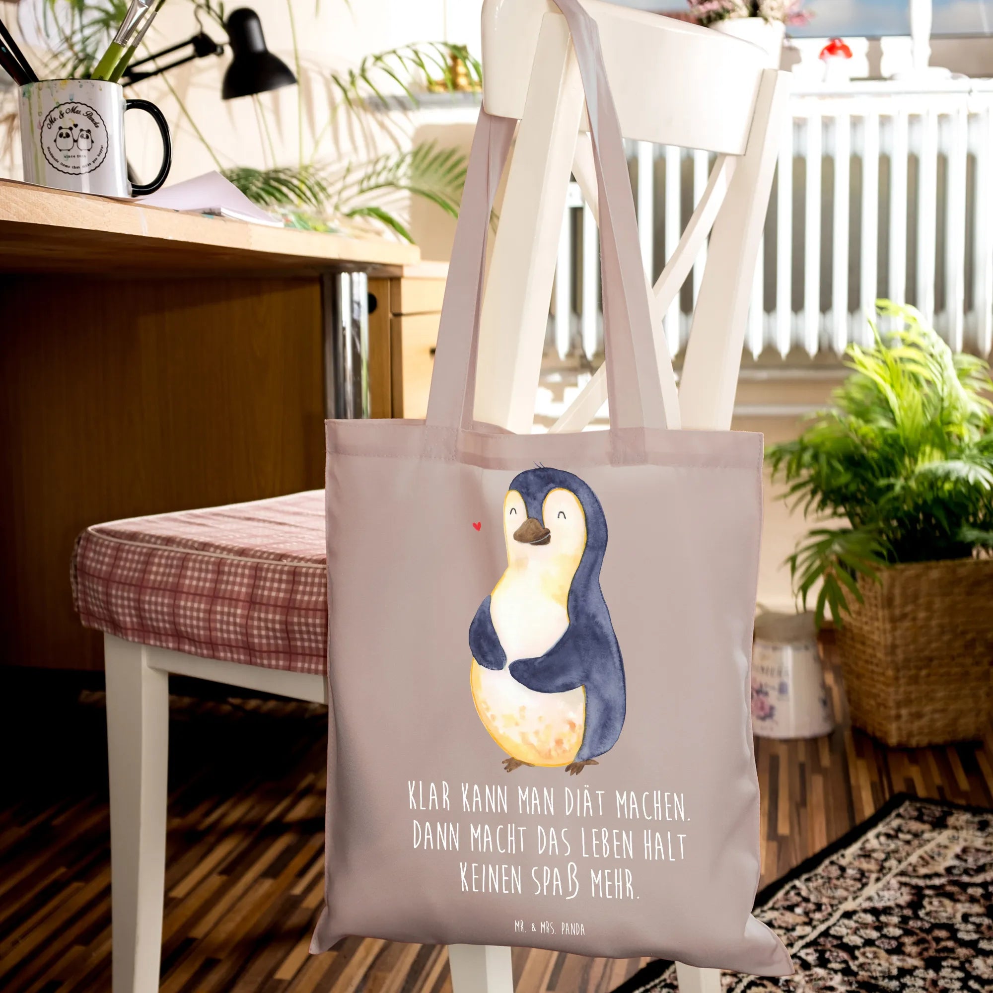 Tote bag Penguin diet - with a saying - Transparent