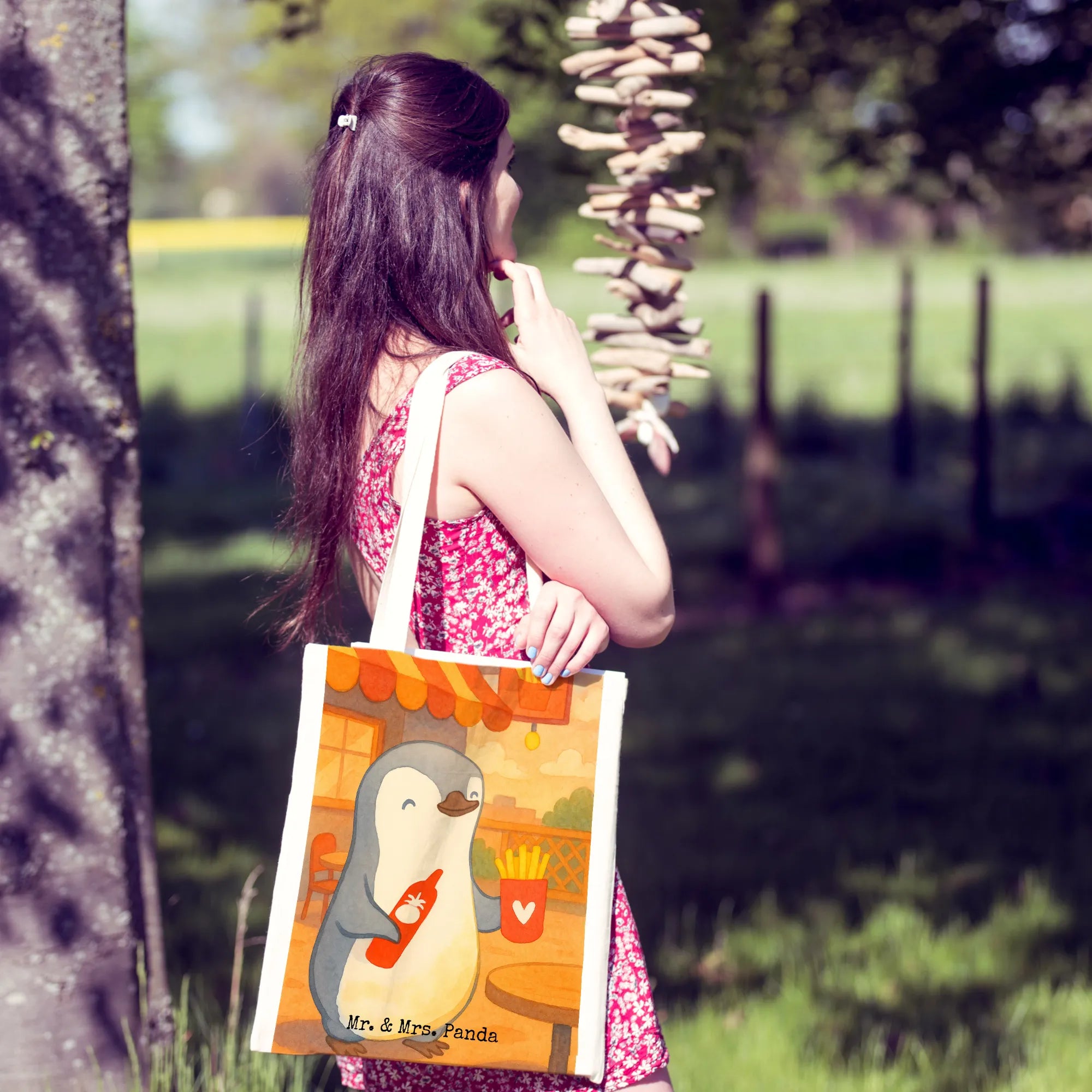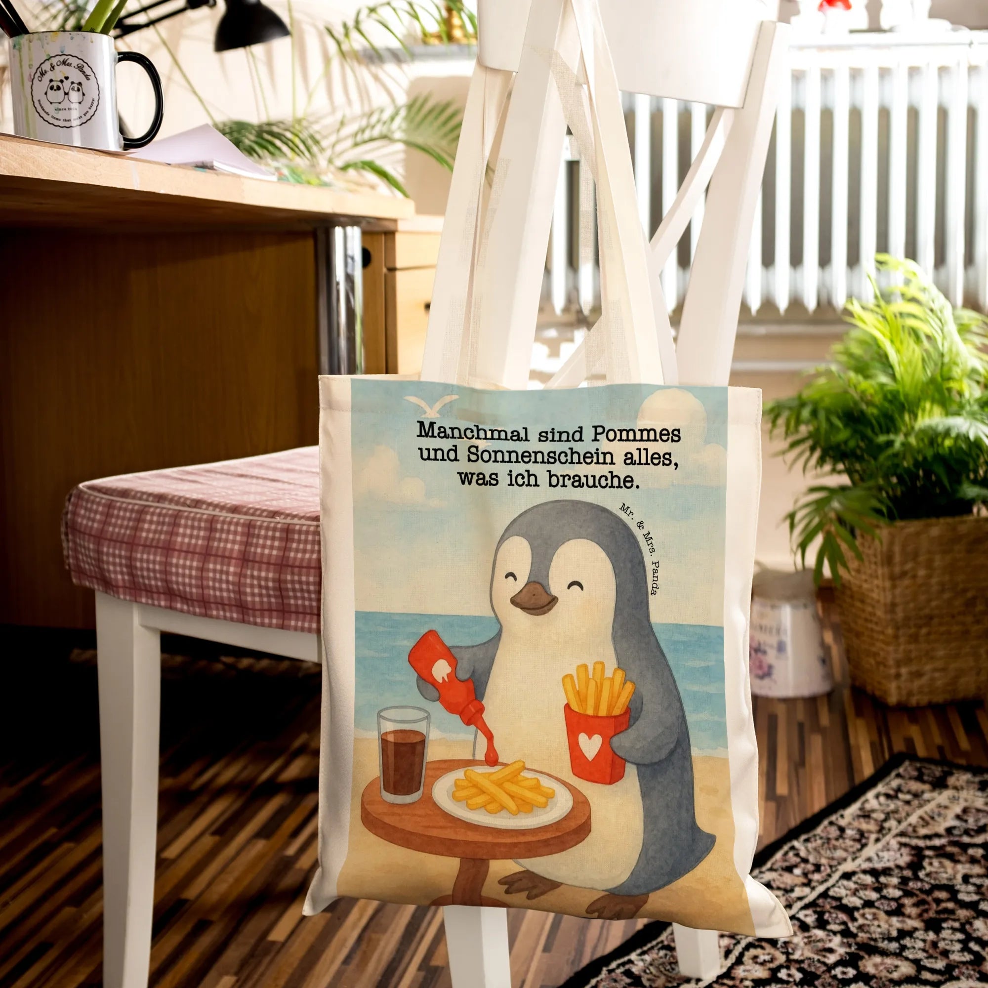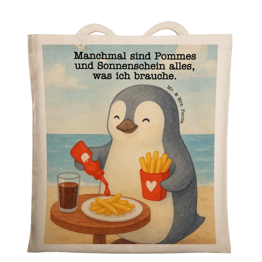 Tote bag penguin French fries Design - mit Spruch