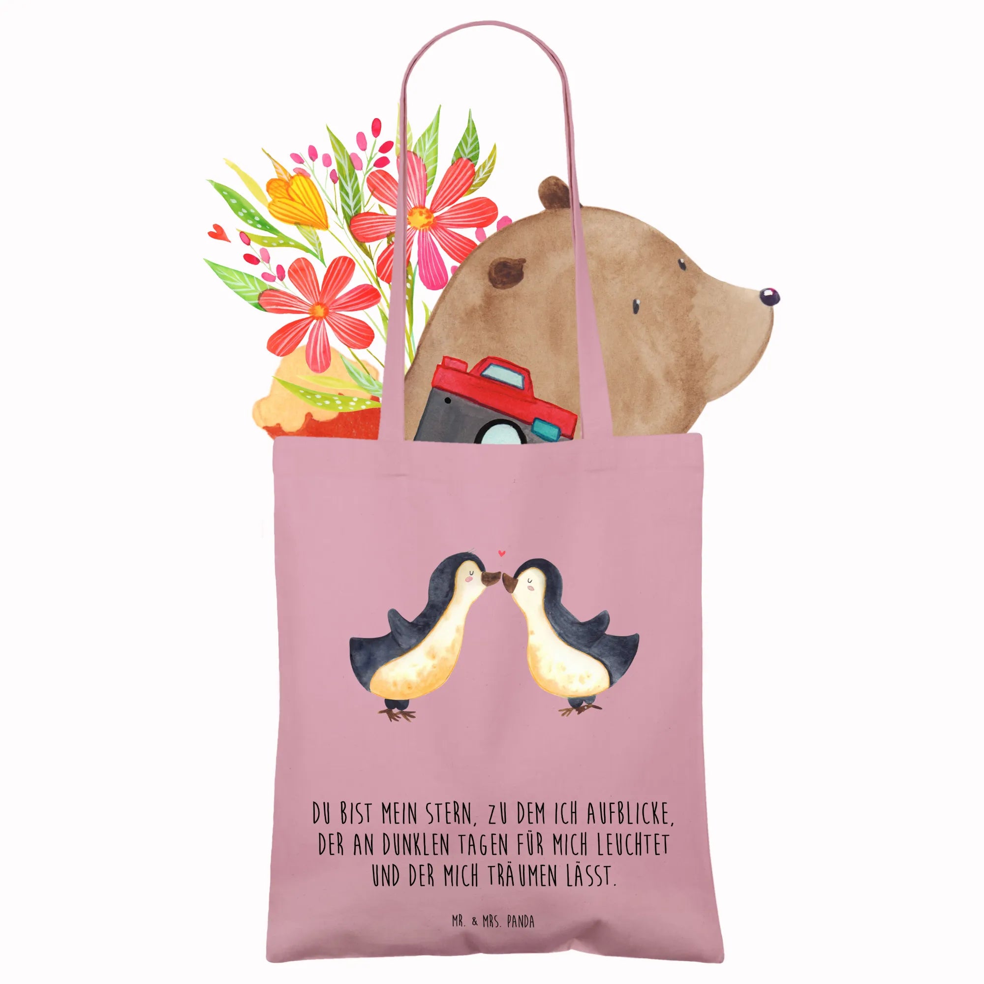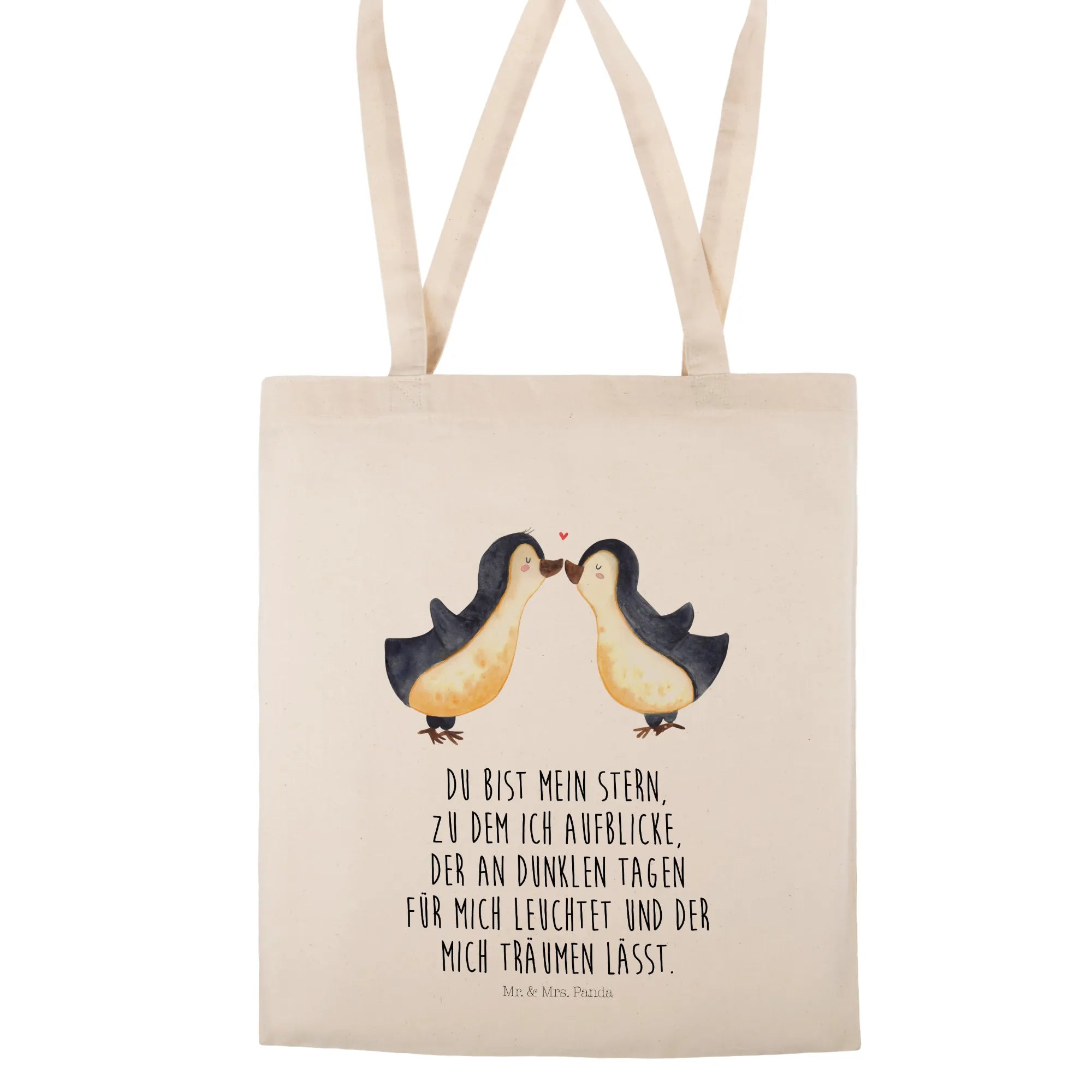 Introducing the delightful Mr. & Mrs. Panda Tote Bag featuring our charming Penguins in Love design, an absolutely perfect gift for any lovebird in your life! Made with 100% cotton and weighing in at 140g/m², this gorgeous tote embodies the spirit of affection and togetherness. Whether you're celebrating an engagement, wedding anniversary, or simply want to show someone how much they mean to you, this tote bag is a splendid way to carry your love wherever you go.
