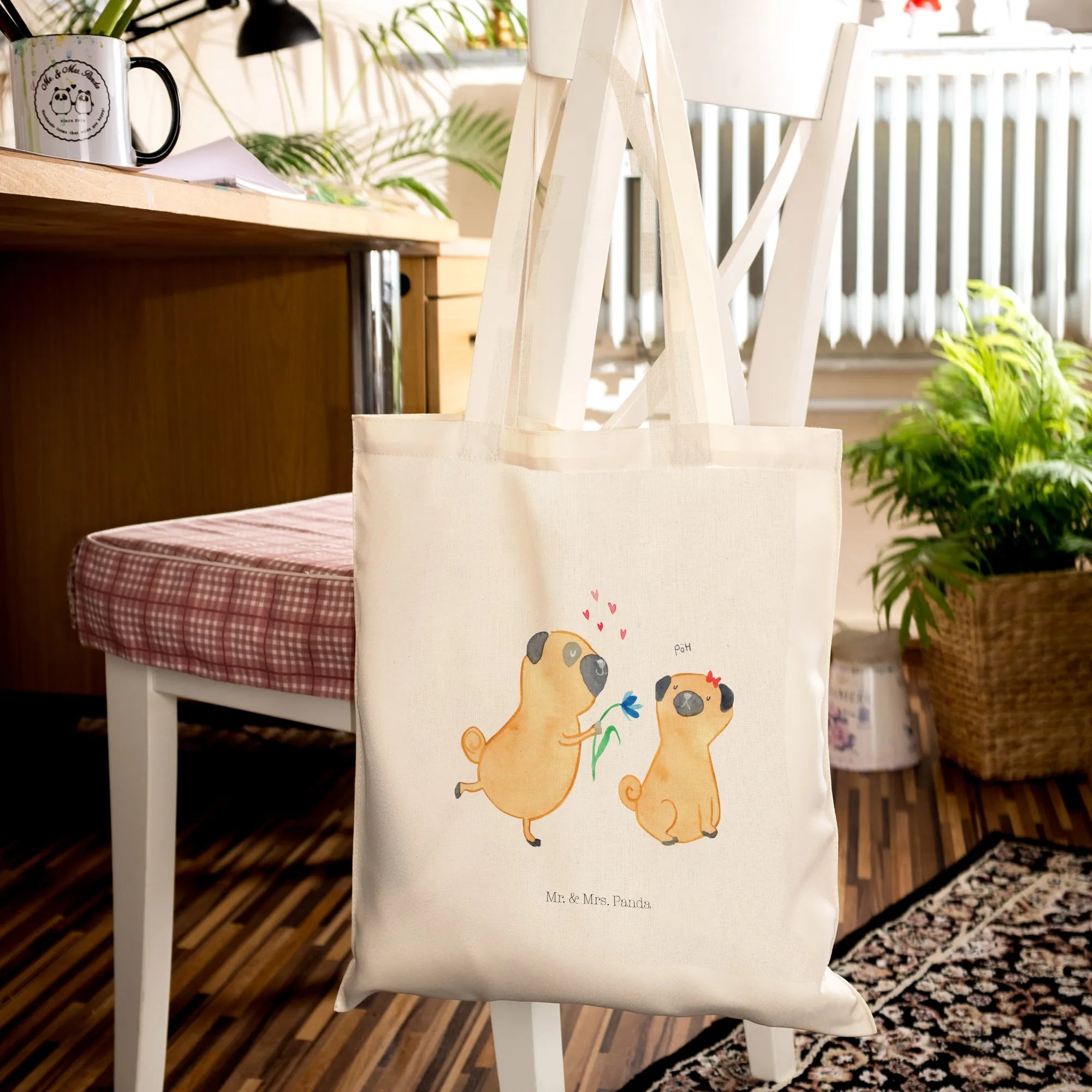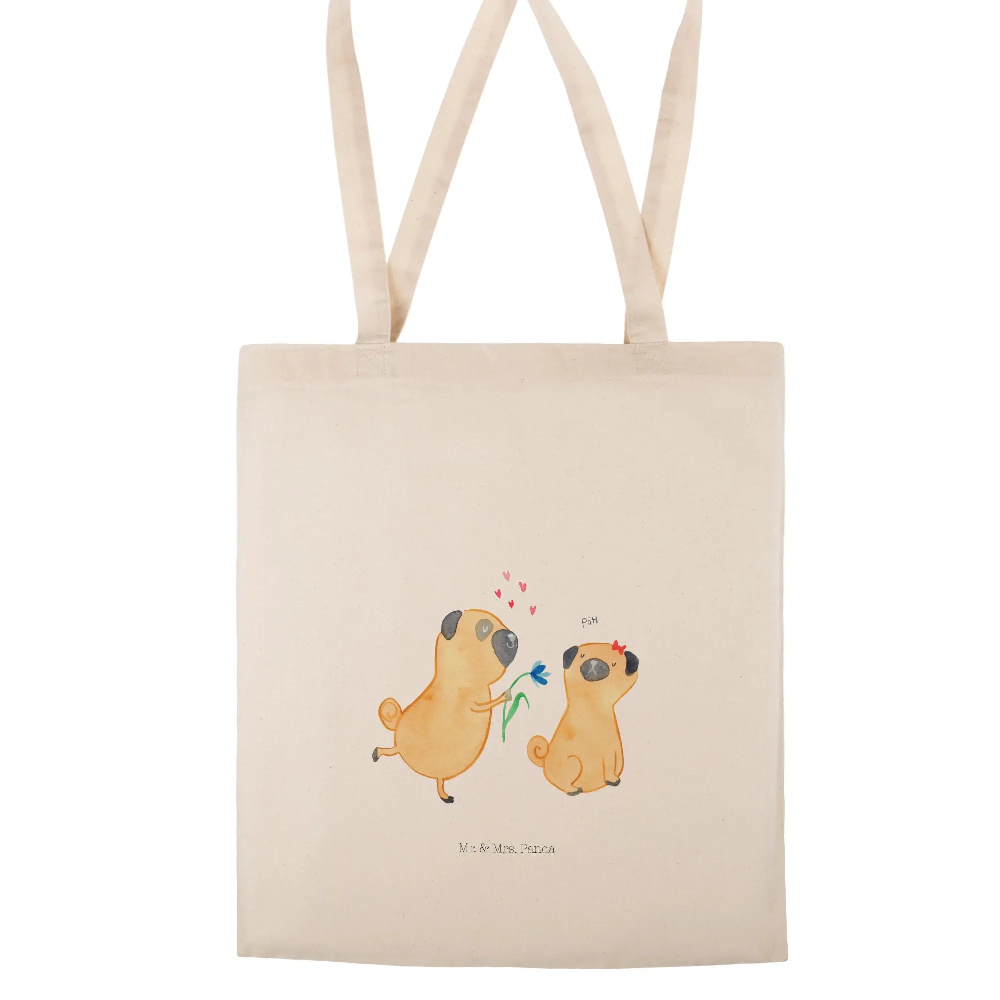 Looking for the perfect gift for a dog lover in your life? Meet our adorable Tote Bag featuring a delightful ‘Pug in Love’ motif from Mr. & Mrs. Panda's charming Dog Collection! This high-quality cotton tote bag captures the sweet and playful essence of love between pugs—two cute little pugs standing close, sharing a delightful moment, with one giving the other a pretty flower. Not only does this bag bring smiles, but it’s also functional, making it ideal for any occasion.