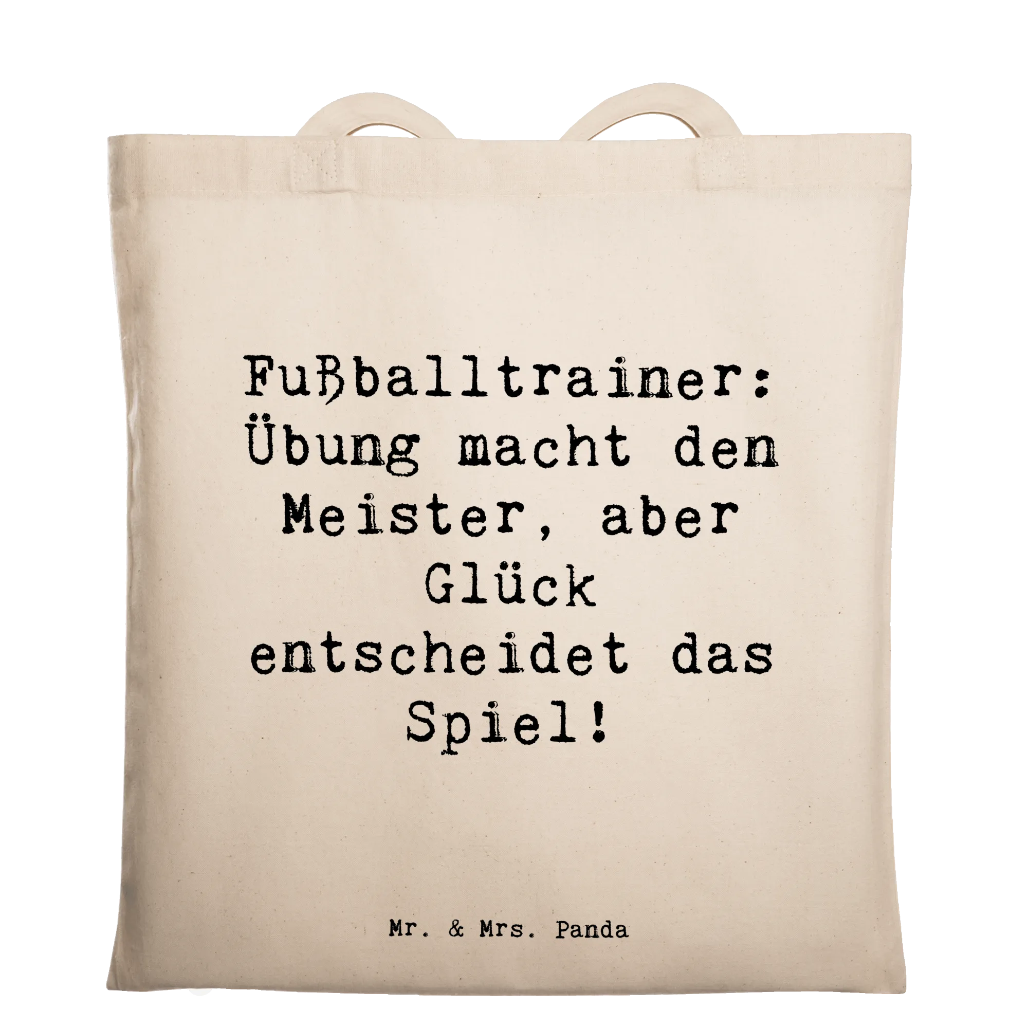 Tote bag Saying Fußballtrainer: Übung macht den Meister, aber Glück entscheidet das Spiel! - Transparent