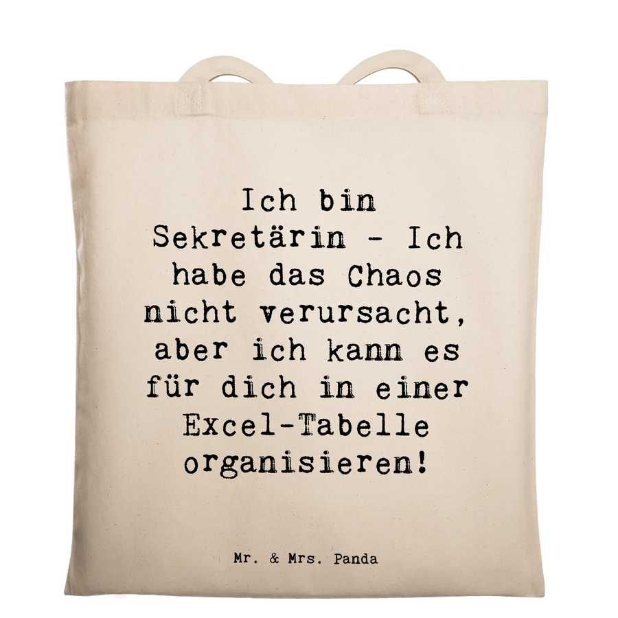 Tote bag Saying Ich bin Sekretärin - Ich habe das Chaos nicht verursacht, aber ich kann es für dich in einer Excel-Tabelle organisieren! - Transparent