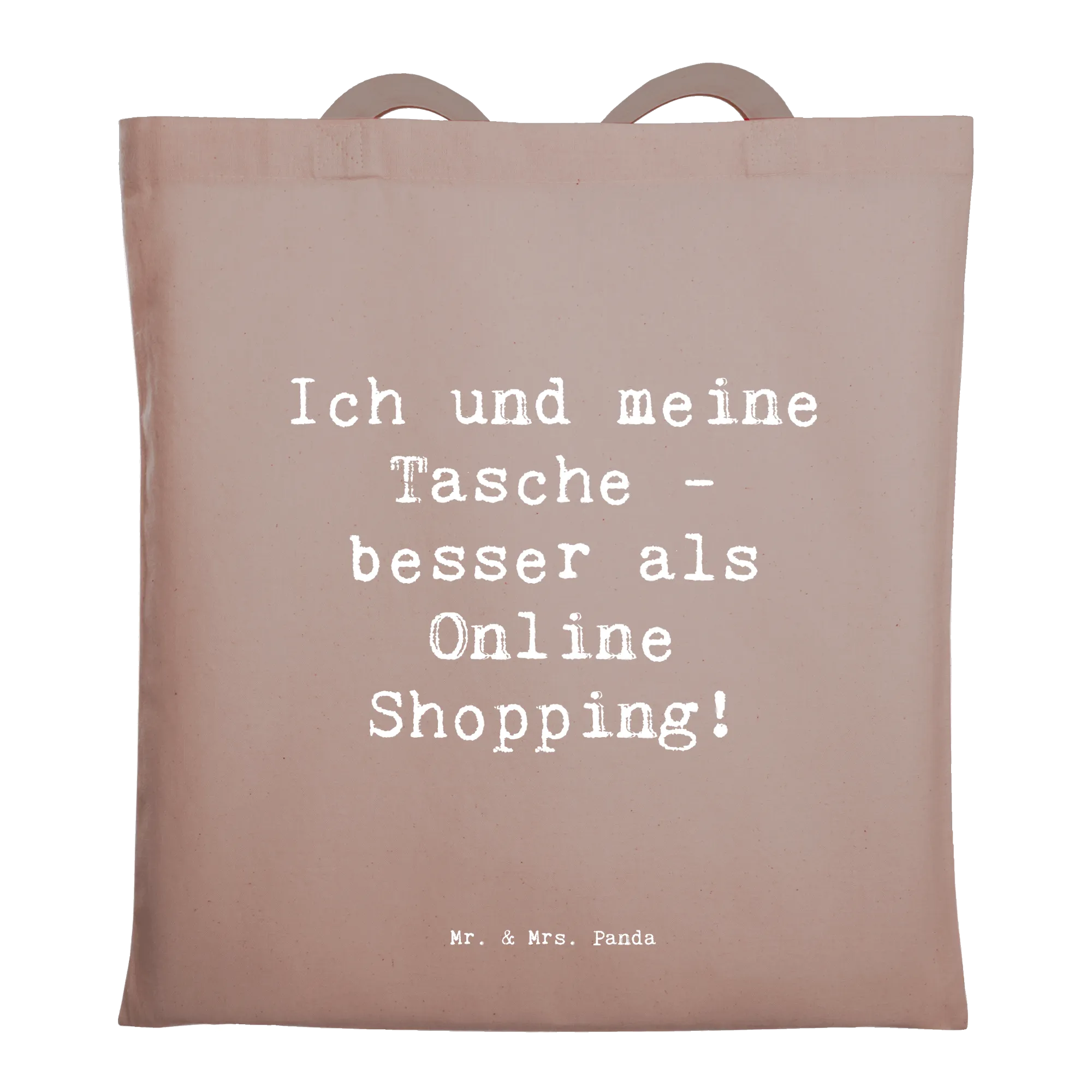 Mit dem frechen Spruch „Ich und meine Tasche - besser als Online Shopping!“ bringt diese Tragetasche gute Laune in Deinen Alltag. Ob als Einkaufstasche, Shopper für den Markt, Uni Tasche oder Festival Tasche – sie ist vielseitig, praktisch und ein echter Hingucker.