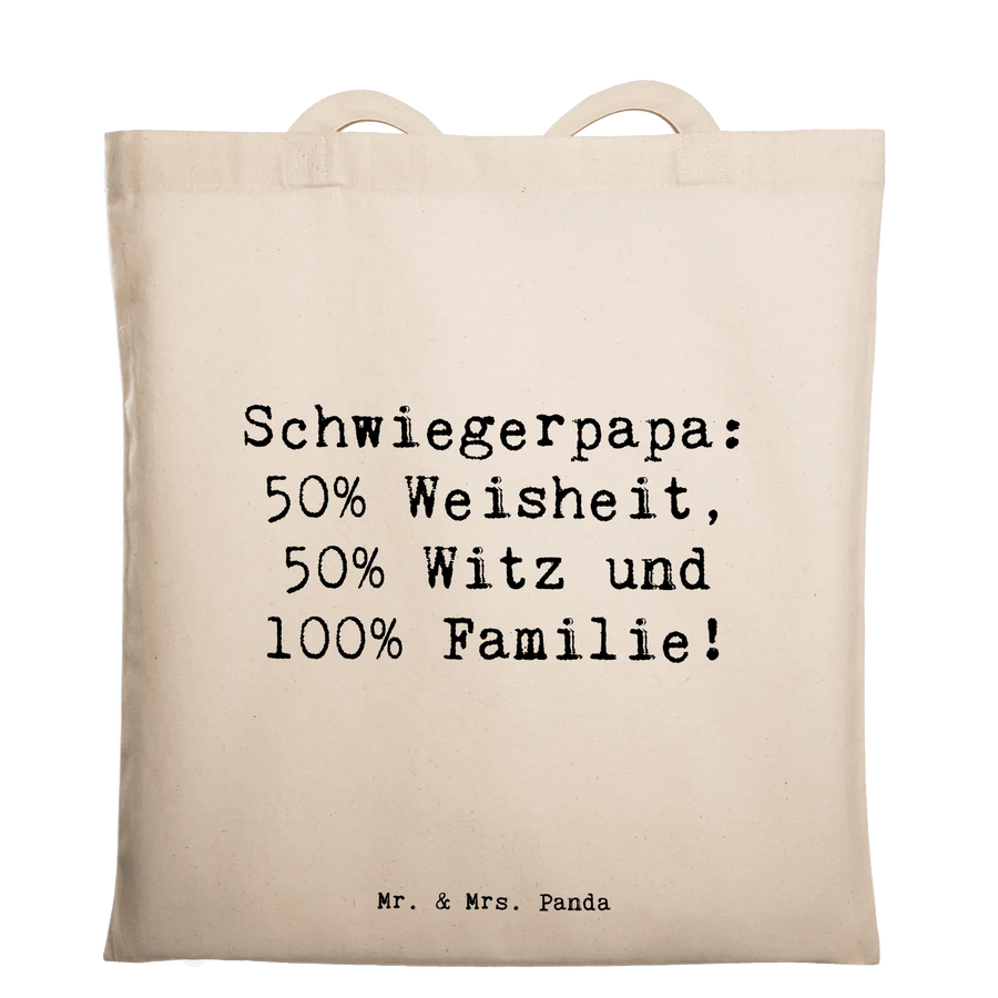 Tote bag Saying Schwiegerpapa: 50% Weisheit, 50% Witz und 100% Familie! - Transparent