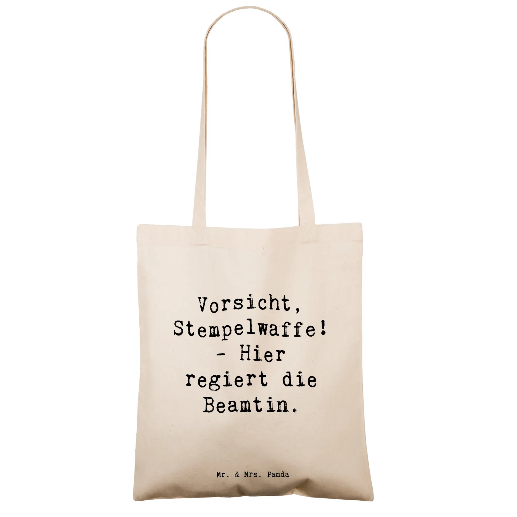 Tote bag Saying Vorsicht, Stempelwaffe! - Hier regiert die Beamtin. - Transparent