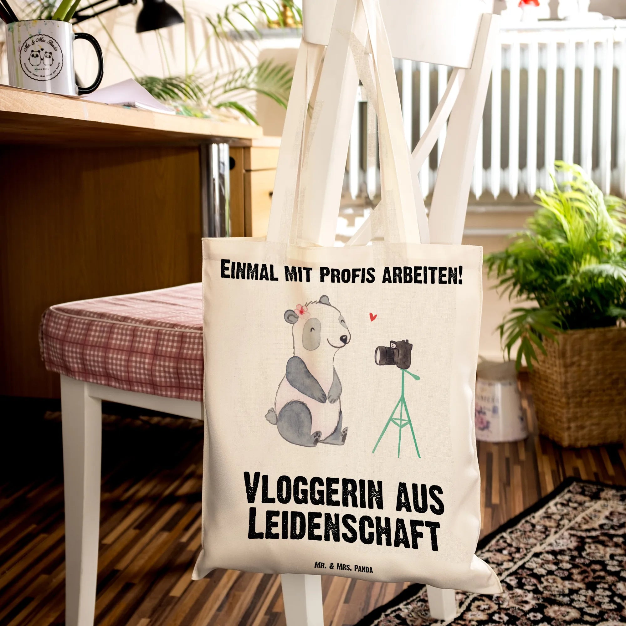 Eine wunderschöne Tragetasche von Mr. & Mrs. Panda – für alle, die ihre kreative Leidenschaft nach außen tragen möchten. Die Tragetasche mit dem Motiv „Vloggerin aus Leidenschaft" zeigt einen fröhlichen, weiblichen Panda vor einer Kamera und den liebevollen Spruch "Vloggerin aus Leidenschaft". Das handgezeichnete Aquarell-Motiv aus der Berufe-Kollektion bringt Persönlichkeit in den Alltag.