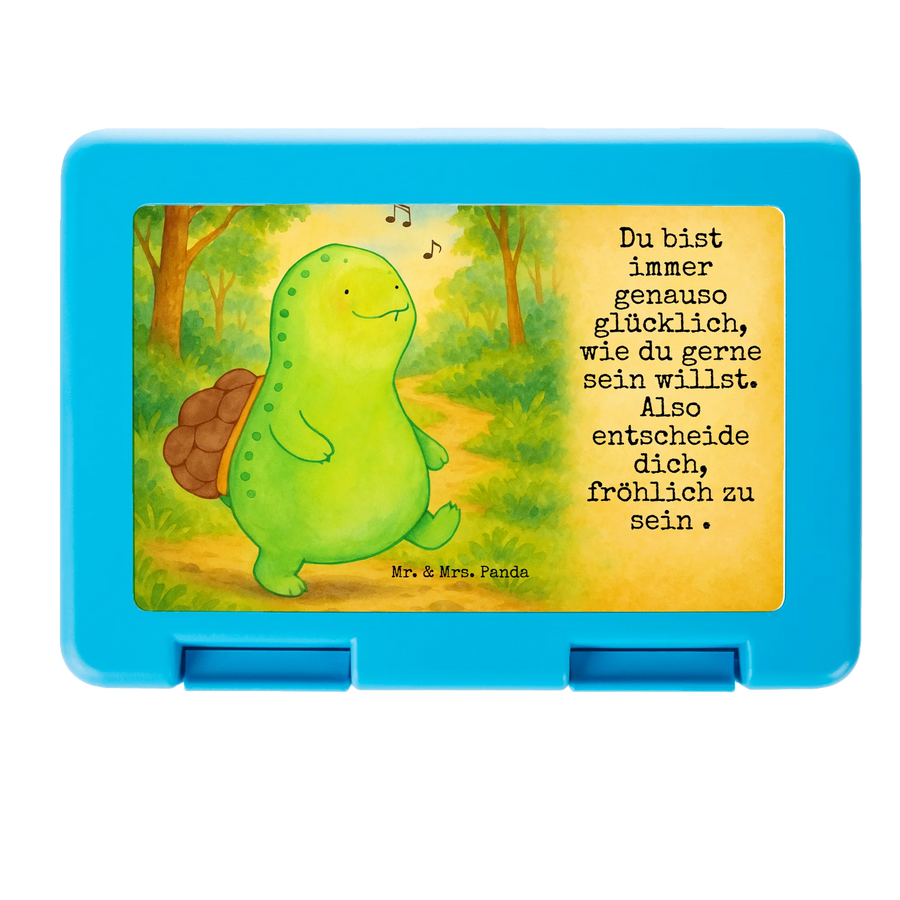 Diese liebevoll gestaltete Brotdose aus unserer Schildkröten-Kollektion verbindet Funktionalität mit Herzlichkeit. Das süße Motiv einer fröhlich pfeifenden Schildkröte und der inspirierende Spruch „Du bist immer genauso glücklich, wie du gerne sein willst. Also entscheide dich, fröhlich zu sein .“ schenken jedem Pausenmoment ein Lächeln. Ob als Brotbehälter für die Schule, Bento Box für die Uni oder Lunchbehälter für die Arbeit – diese Lunchbox bringt Lebensfreude mit.
