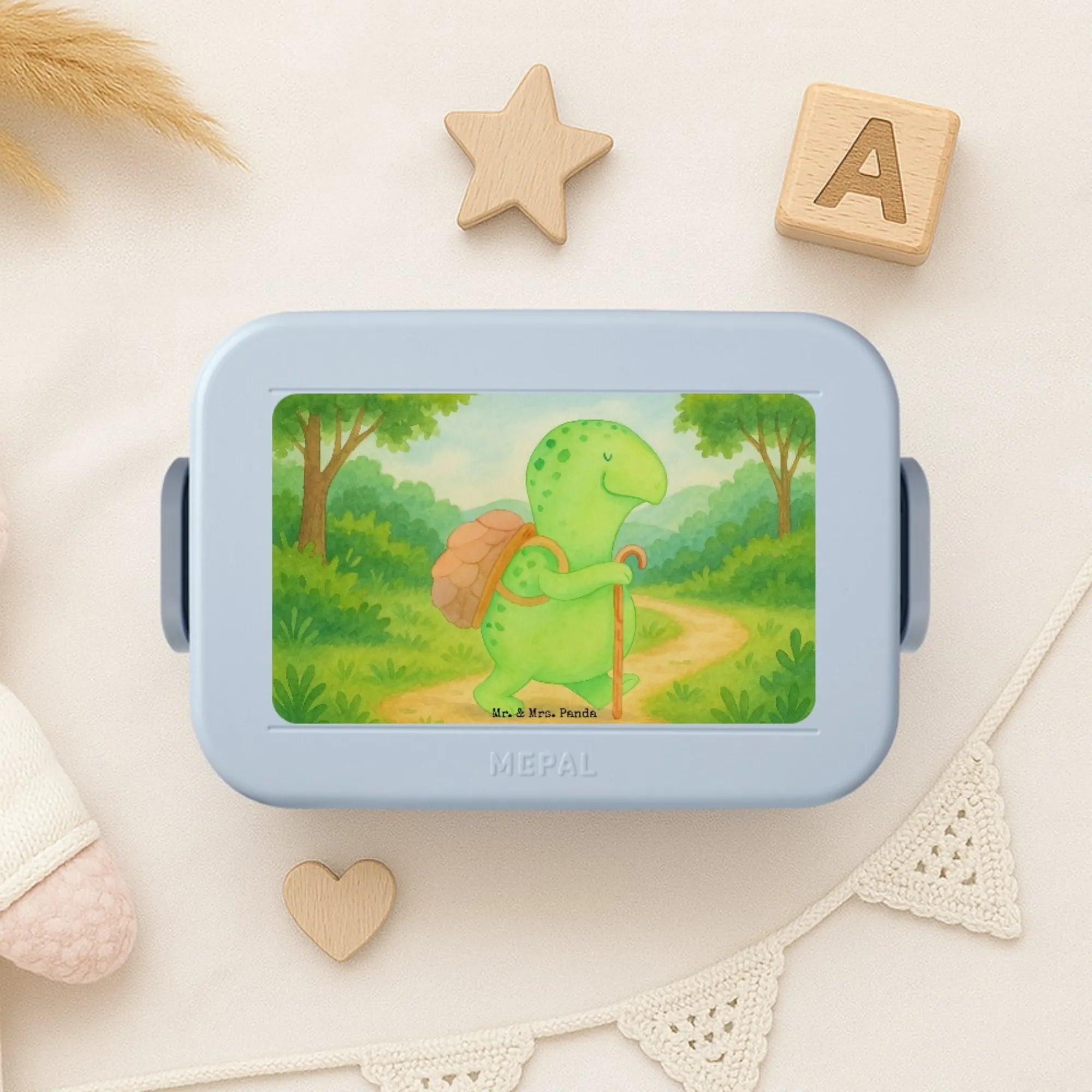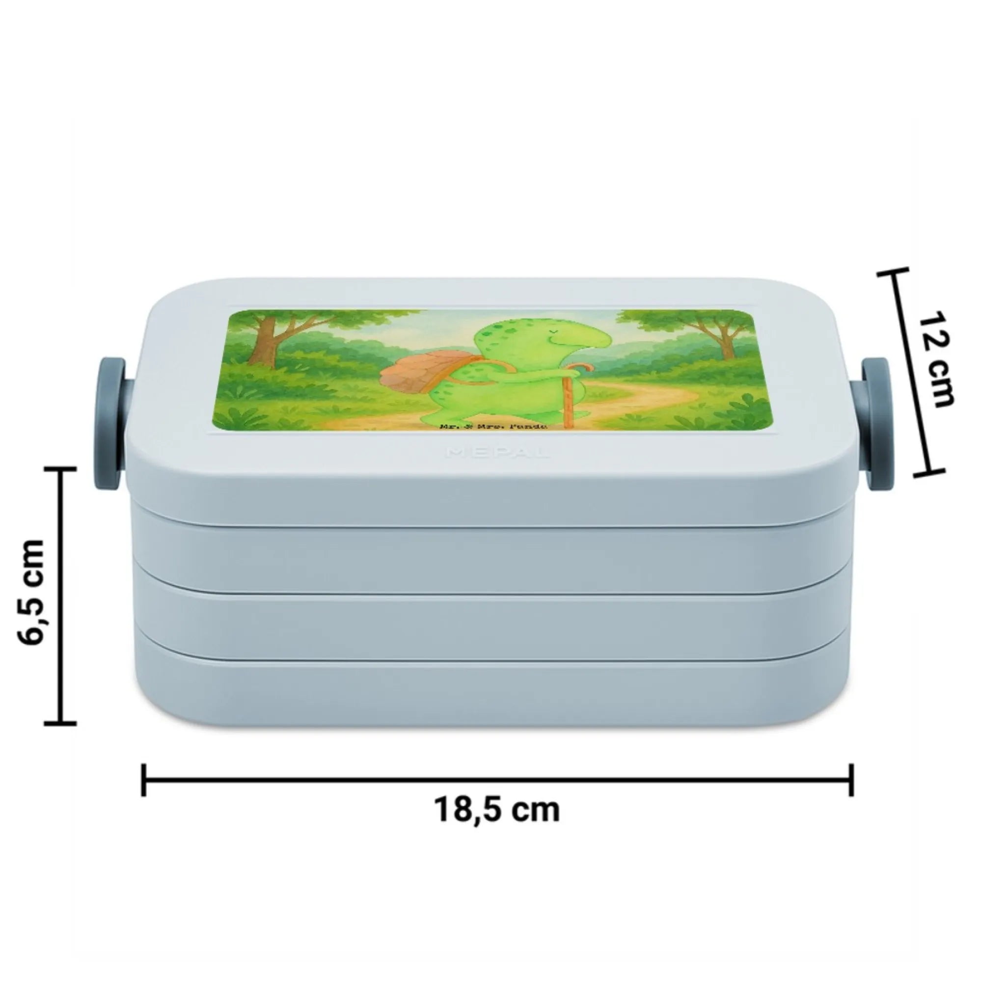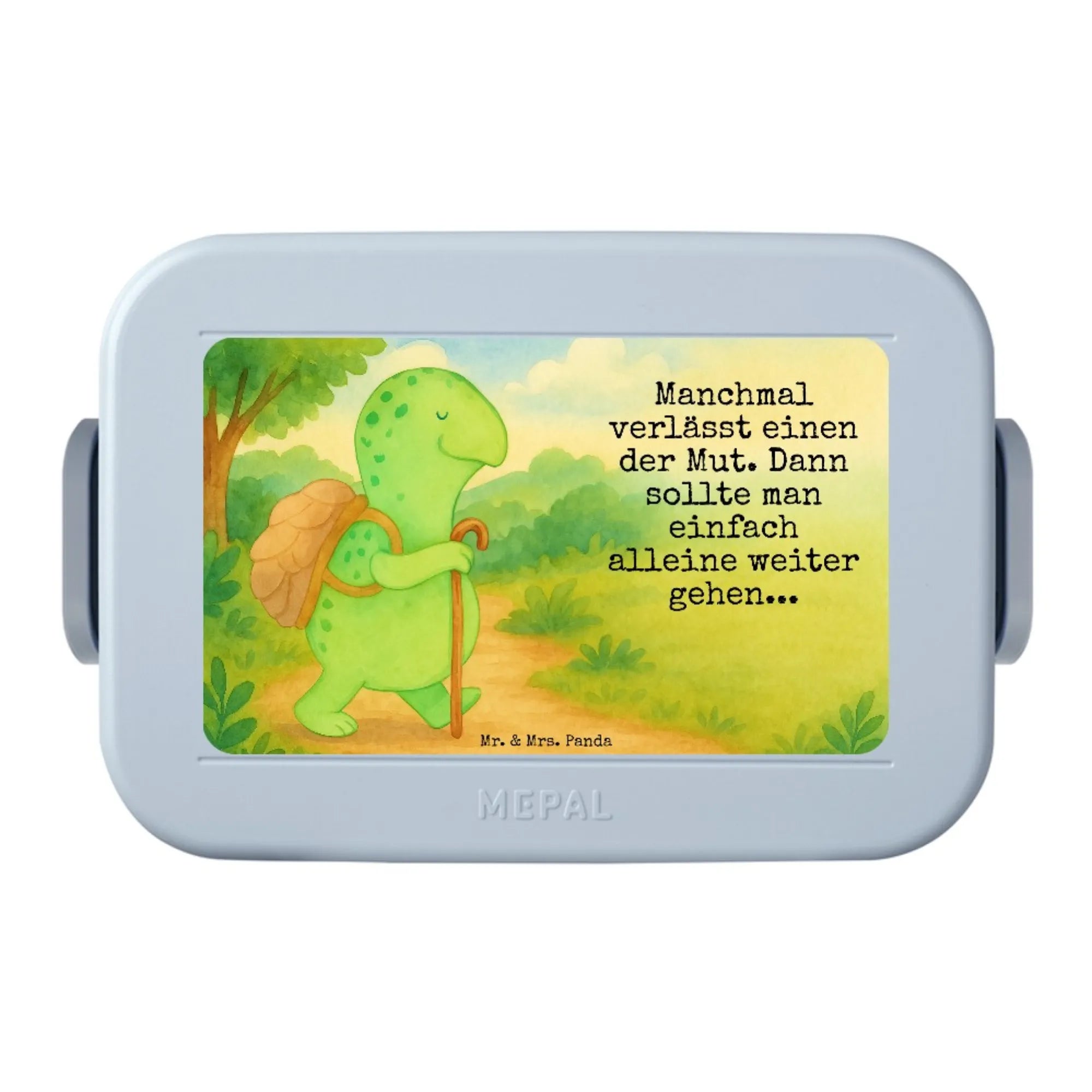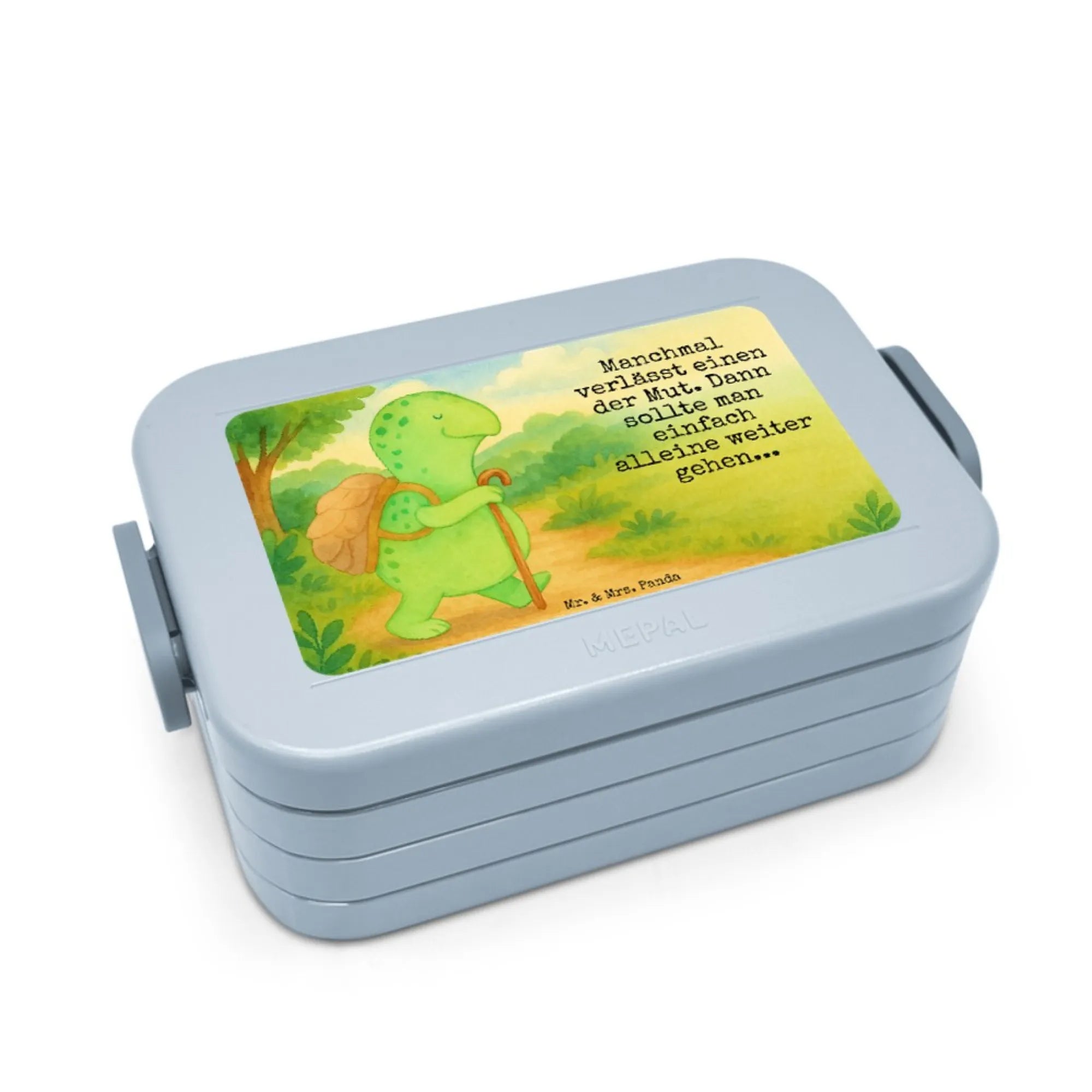 MEPAL Bentobox Schildkröte Wanderer Design - mit Spruch - Blau Pastell