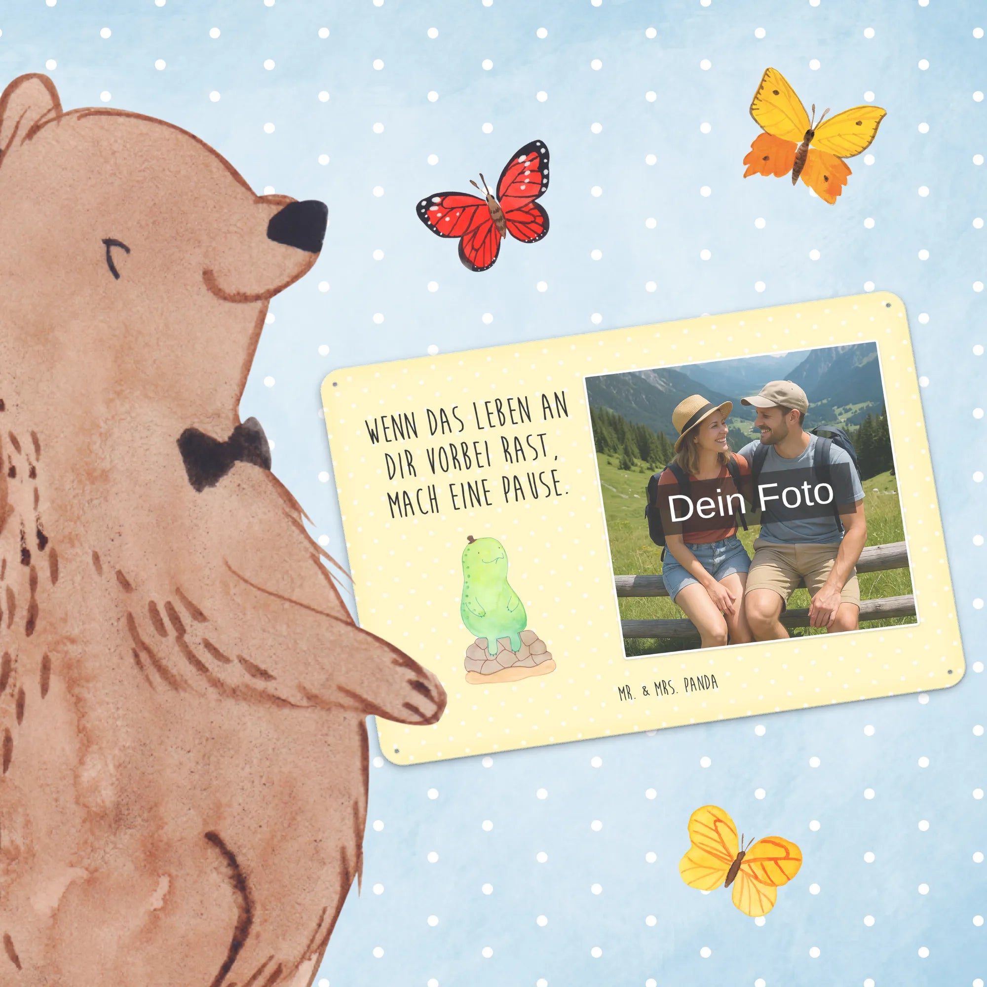 🐼 FOTO BLECHSCHILD PERSONALISIERT: Dein Foto + Panda-Sprüche auf seidenmattem Stahlblech.