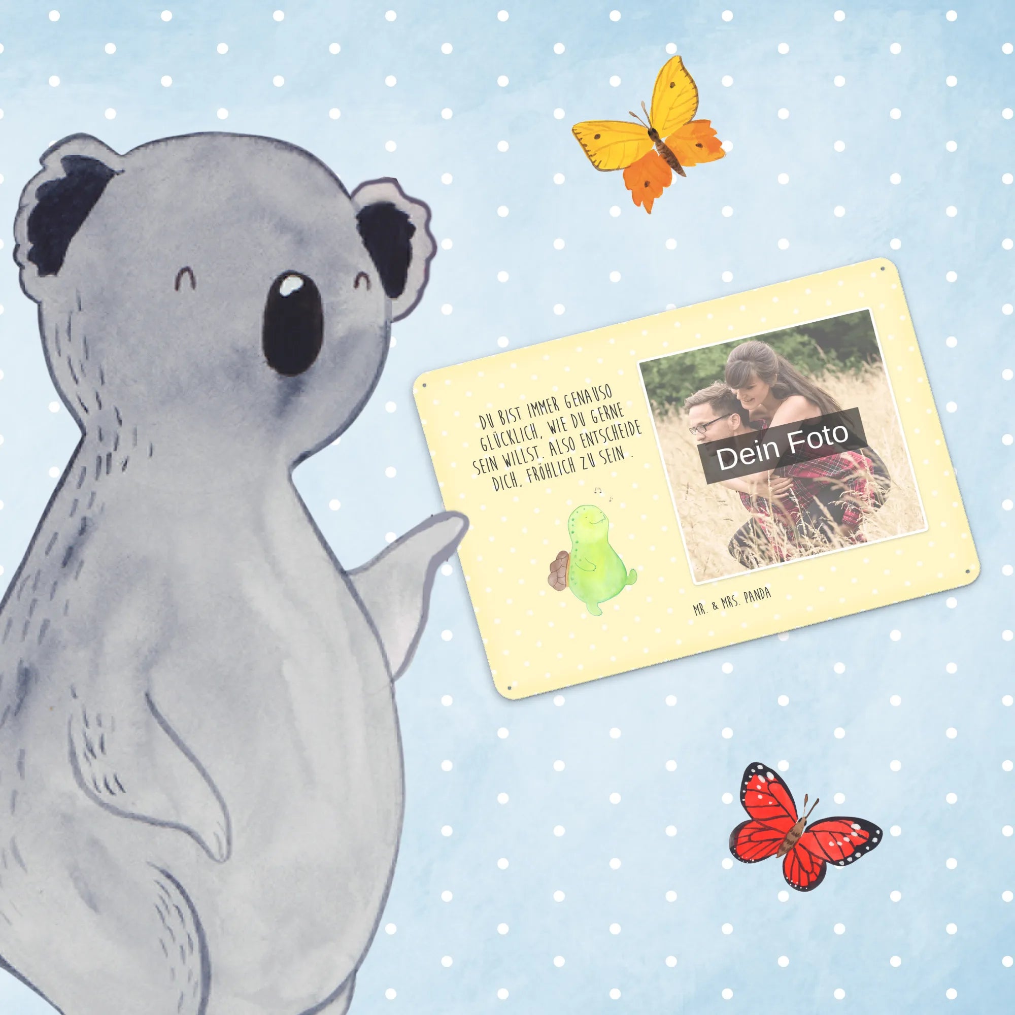 Ein personalisiertes Foto Blechschild von Mr. & Mrs. Panda – edel, freundlich und wunderbar als Geschenk. Unsere Motive und Sprüche verleihen deinem Foto zusätzlichen Charme, gedruckt wird auf hochwertigem Stahlblech ohne Wölbung mit seidenmatter, langlebiger Oberfläche. Maße: 70 mm x 420 mm x 297 mm. Das Schild hat 4 Bohrungen zur Befestigung, sichere umgefaltze Kanten und abgerundete Ecken für ein sauberes Erscheinungsbild. Vor dem Upload deines Wunschfotos: Achte auf hohe Auflösung, einen passenden Bildausschnitt (sieh dir unsere Platzhalter-Vorschau an) und darauf, dass du die Bildrechte besitzt. Perfekt als Türschild oder Wanddeko im Innenbereich, leicht mit einem feuchten Tuch zu reinigen. In verschiedenen Größen erhältlich, sodass du das ideale Format für dein Zuhause findest. Ob als Geschenk für Freunde, Familie oder als persönliche Dekoration – dieses personalisierte Foto Blechschild von Mr. & Mrs. Panda verbindet liebevolle Designs mit hochwertiger Verarbeitung und einfacher Montage. Gestalte dein Unikat und bring ein kleines Stück Panda-Glück in dein Zuhause.