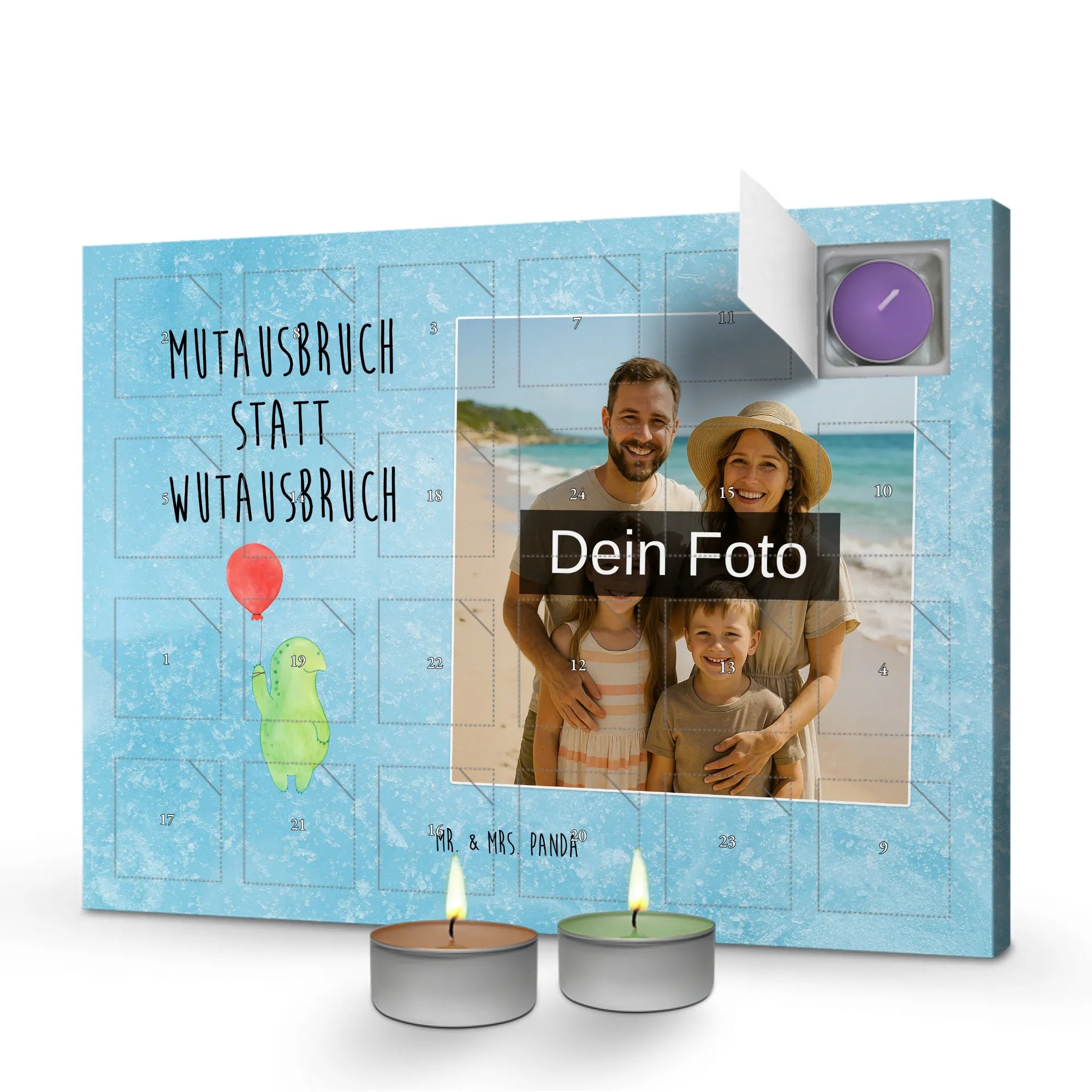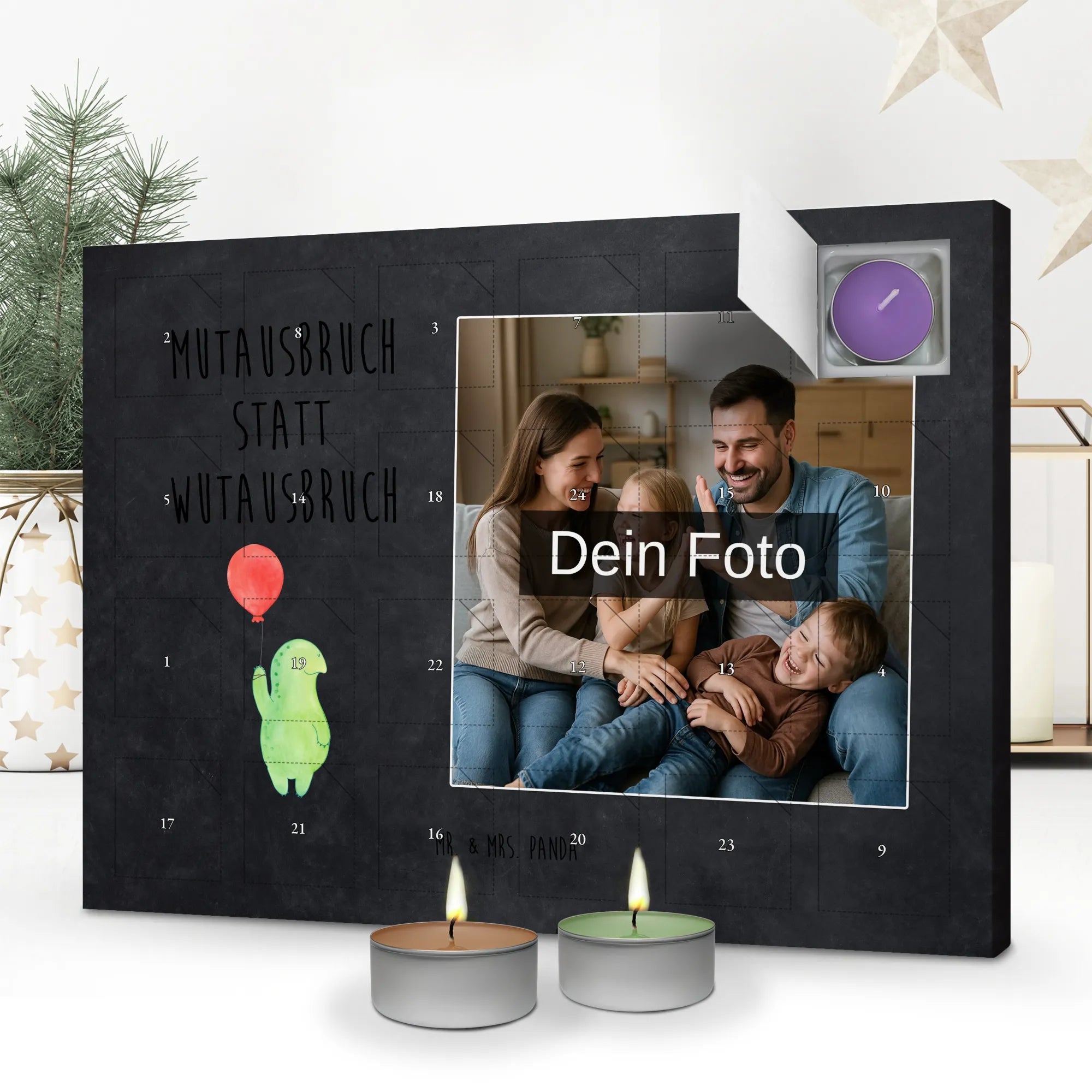 Make this Advent unforgettable with a personalized scented candle photo advent calendar that fills your home with warmth and joy. Choose a clear photo for the calendar to reveal a piece of personal memory each day. The combination of six different fragrances such as Green Tea, Pomegranate, and Oud Wood, packaged in a sturdy box that can be displayed or hung, makes every day leading up to Christmas a special experience. A must-have for anyone seeking something extraordinary.