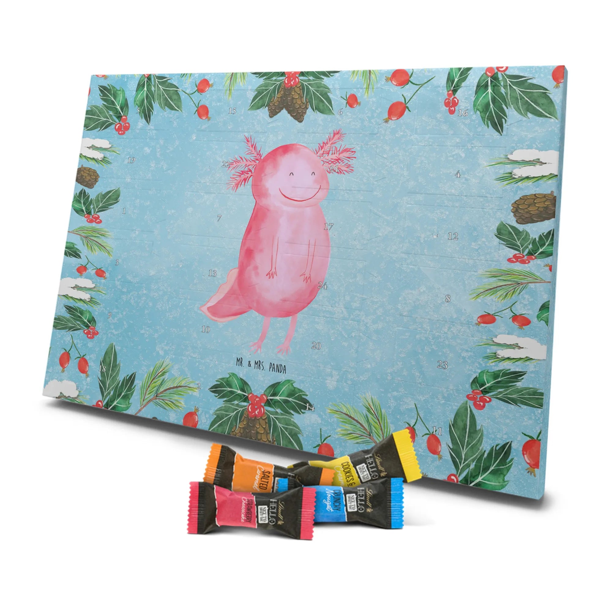 Chocolate advent calendar axolotl Happy - Classic - with saying - Ice Blue