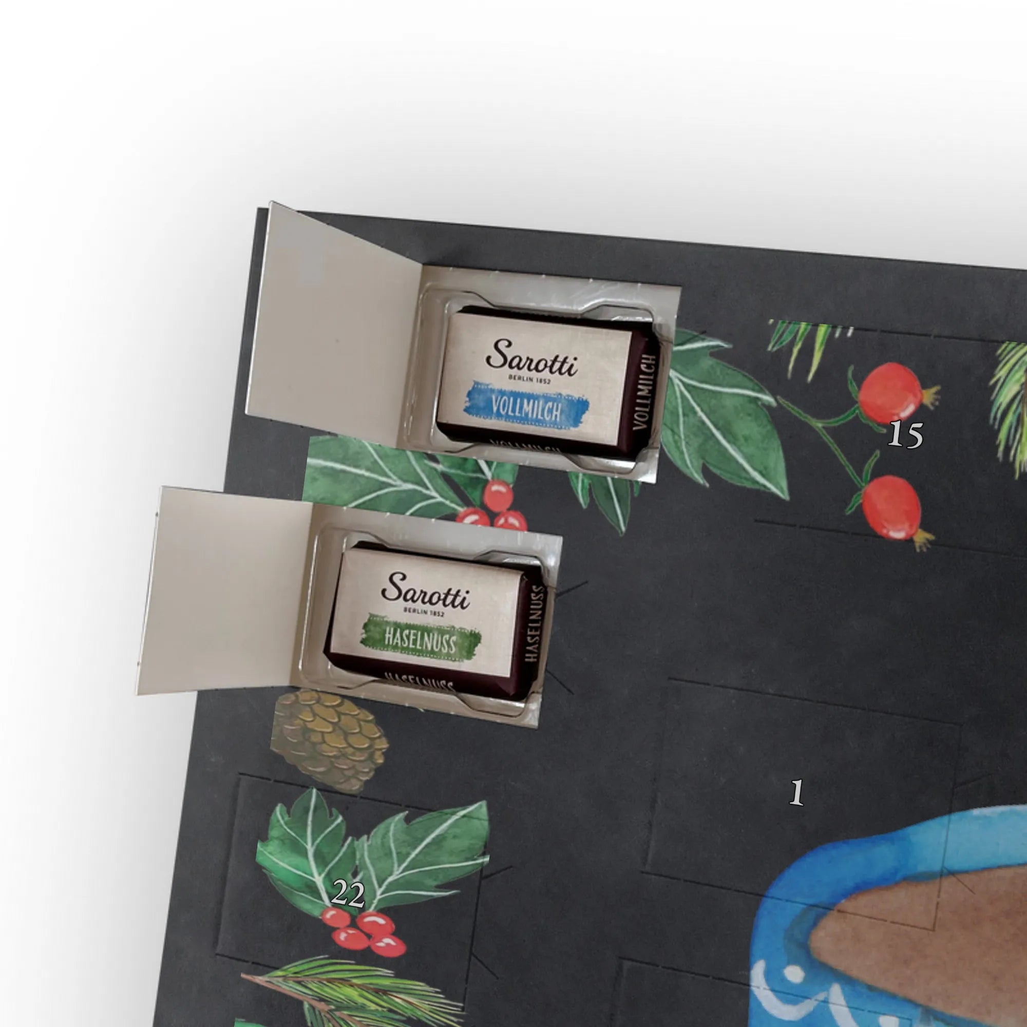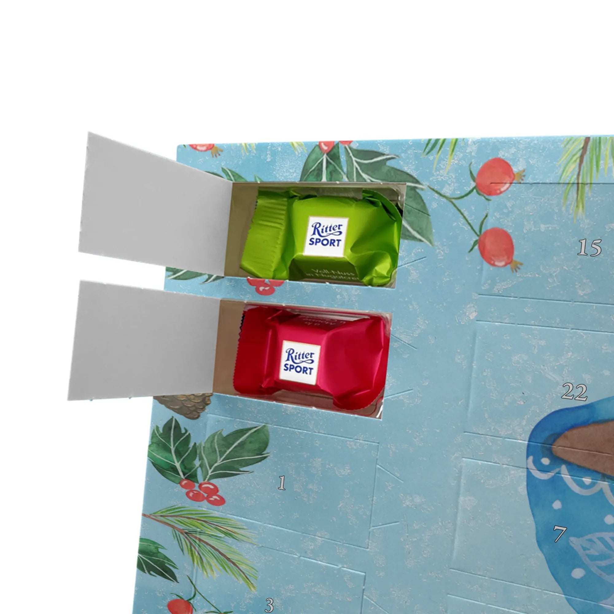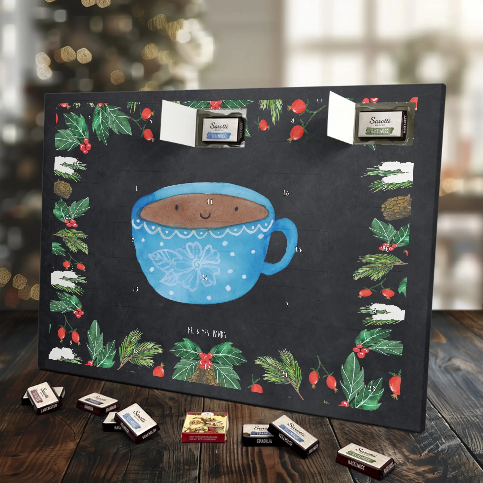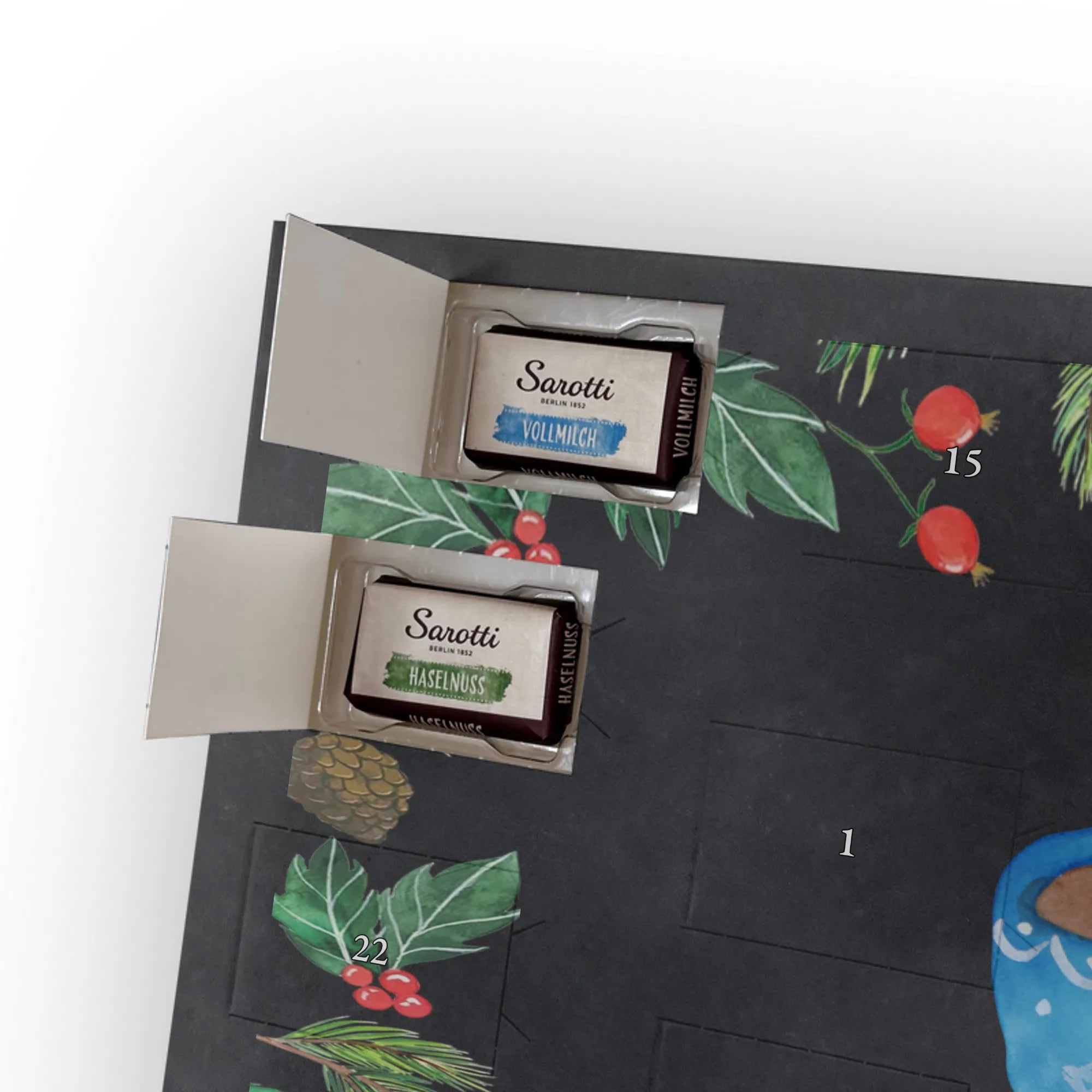 Chocolate advent calendar Coffee Cup - Classic - with saying - Ice Blue