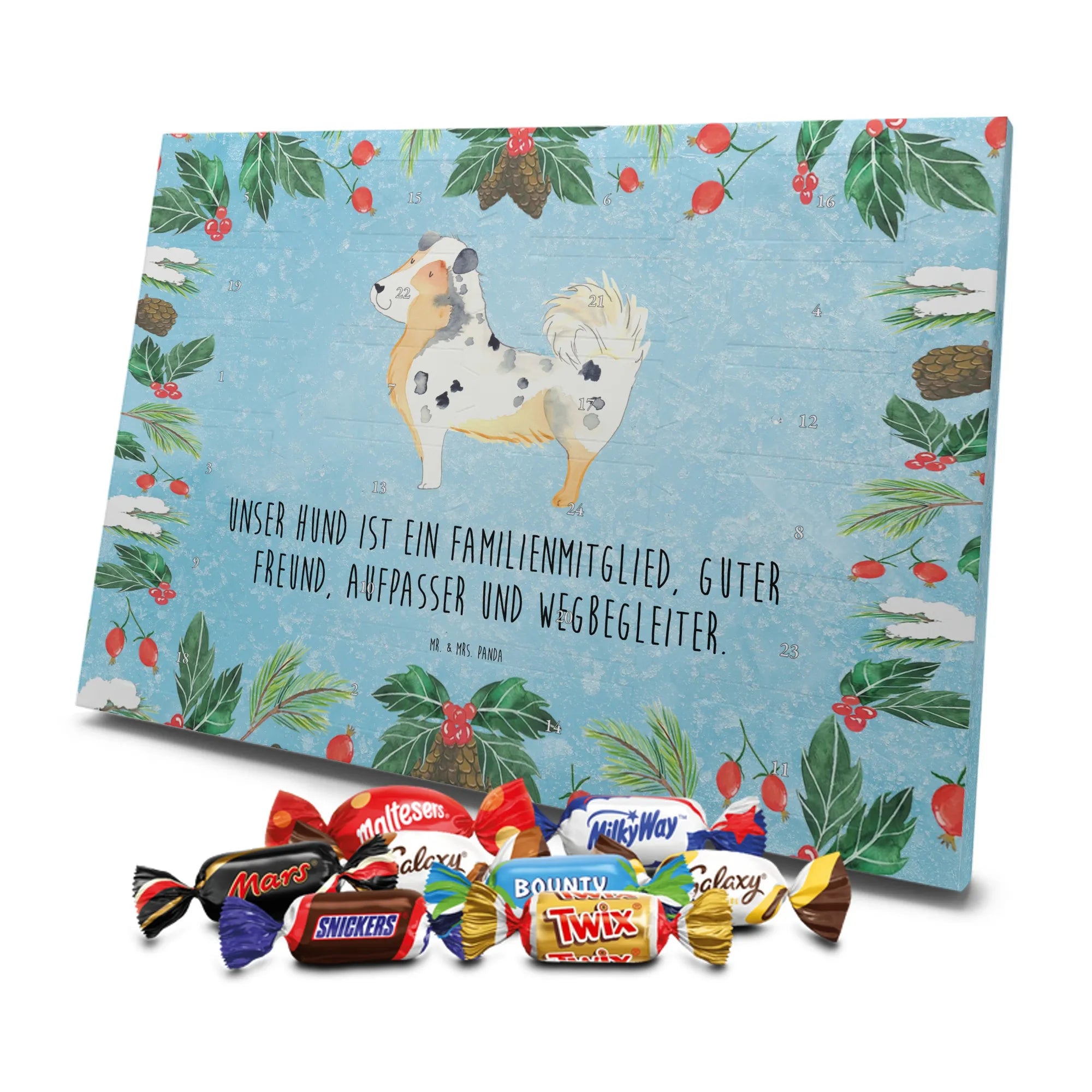 Chocolate advent calendar Dog Australia Shepherd - Classic - with saying - Ice Blue