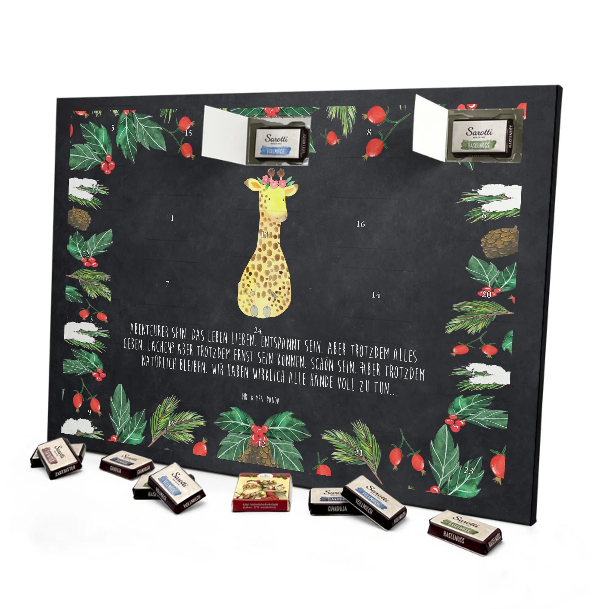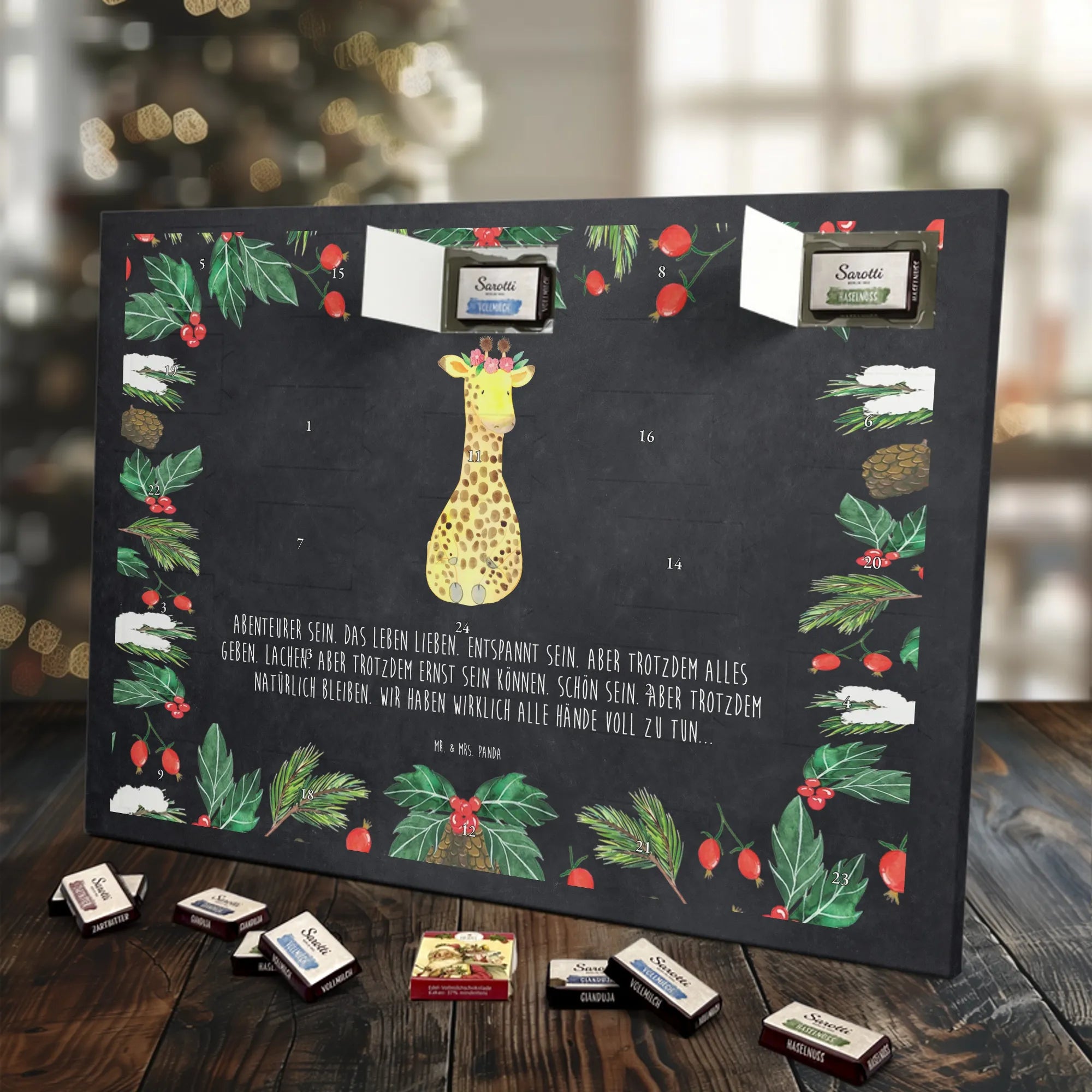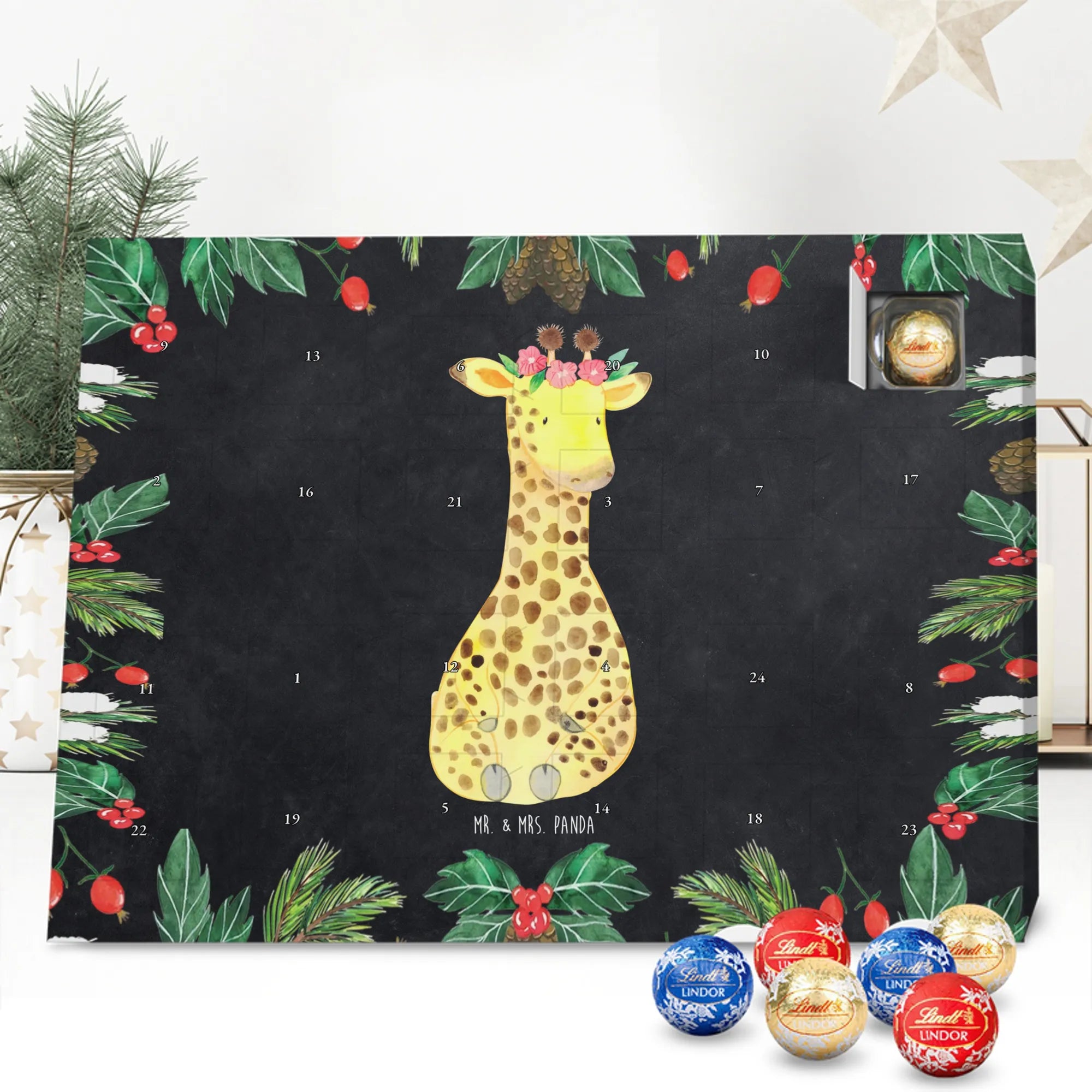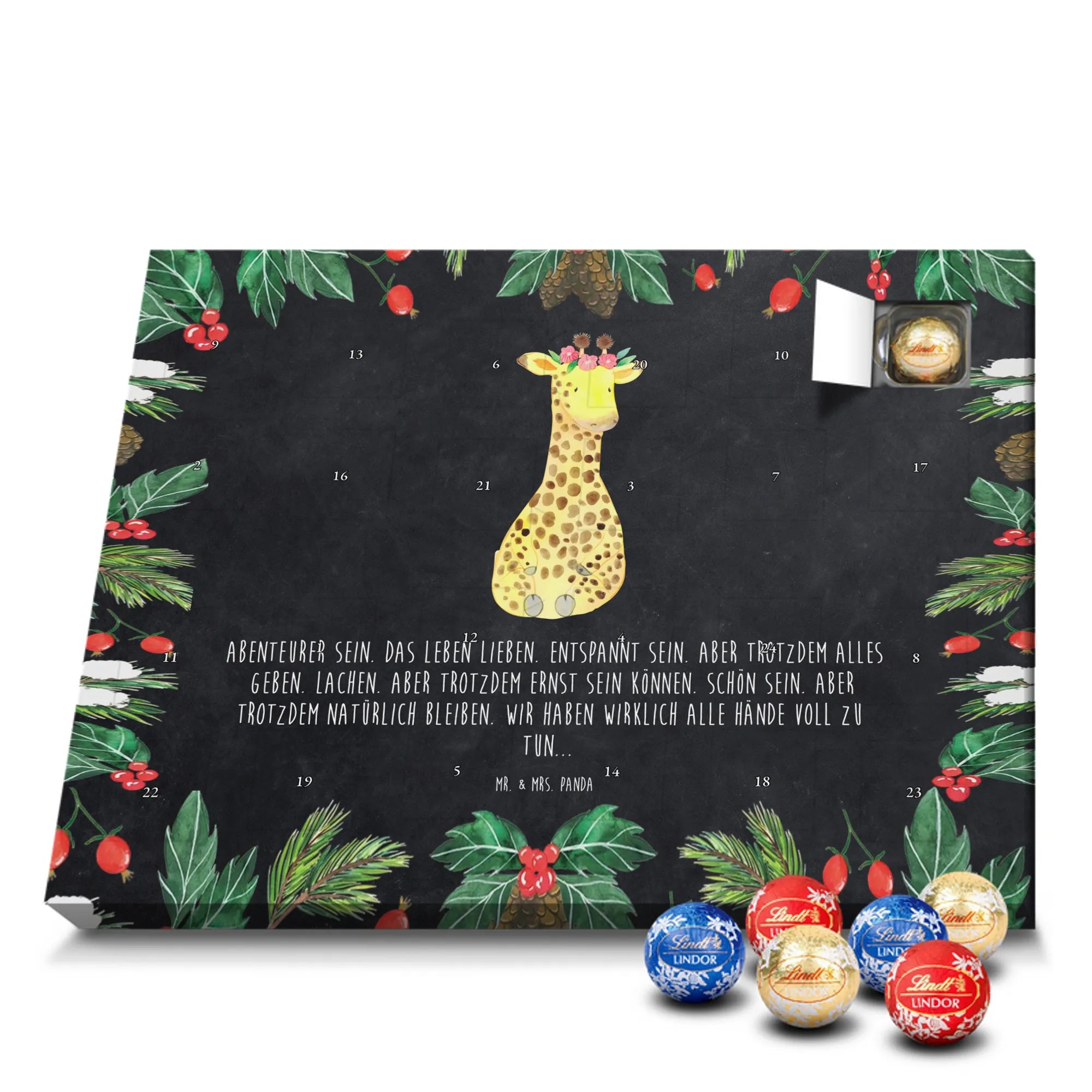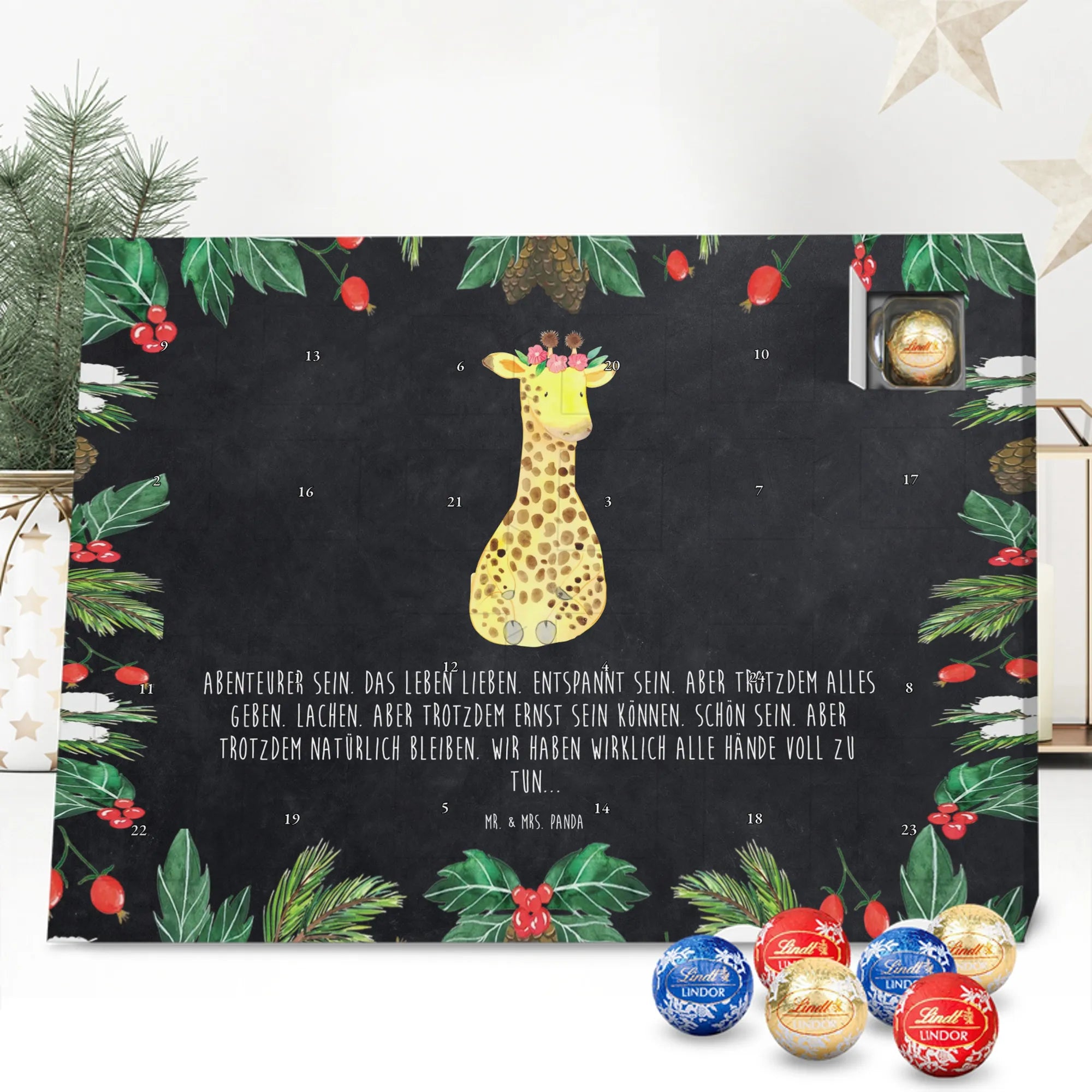 Chocolate advent calendar giraffe flower wreath - Lindt LINDOR - with saying - Chalkboard