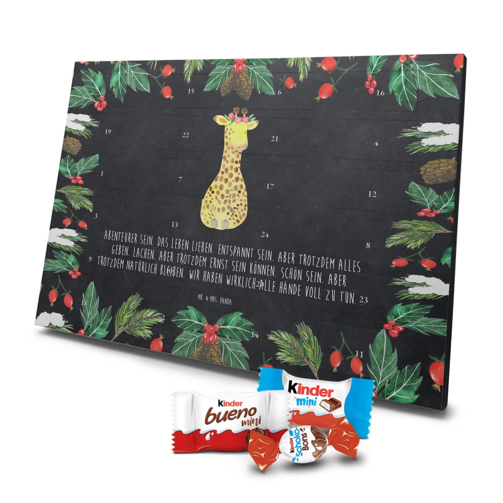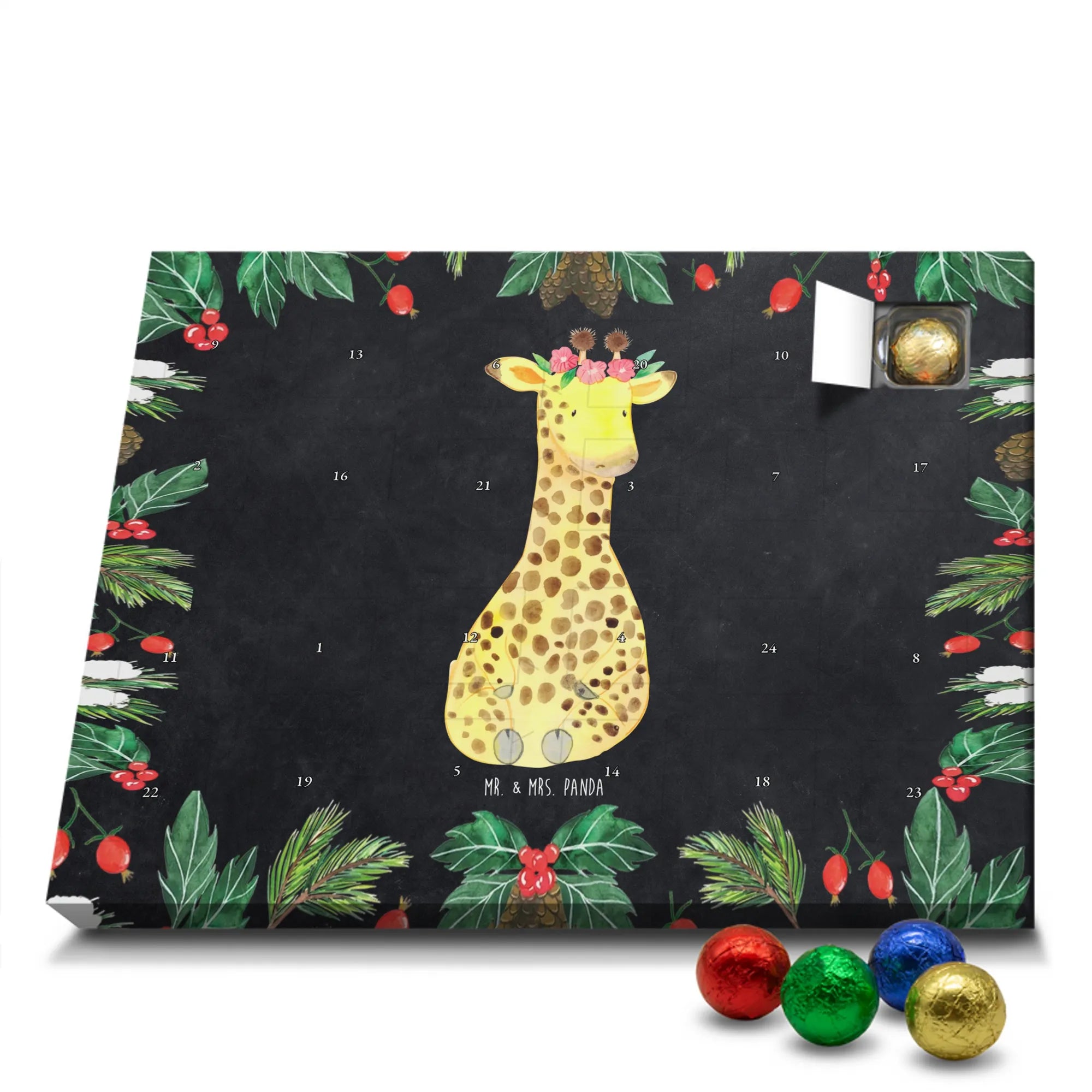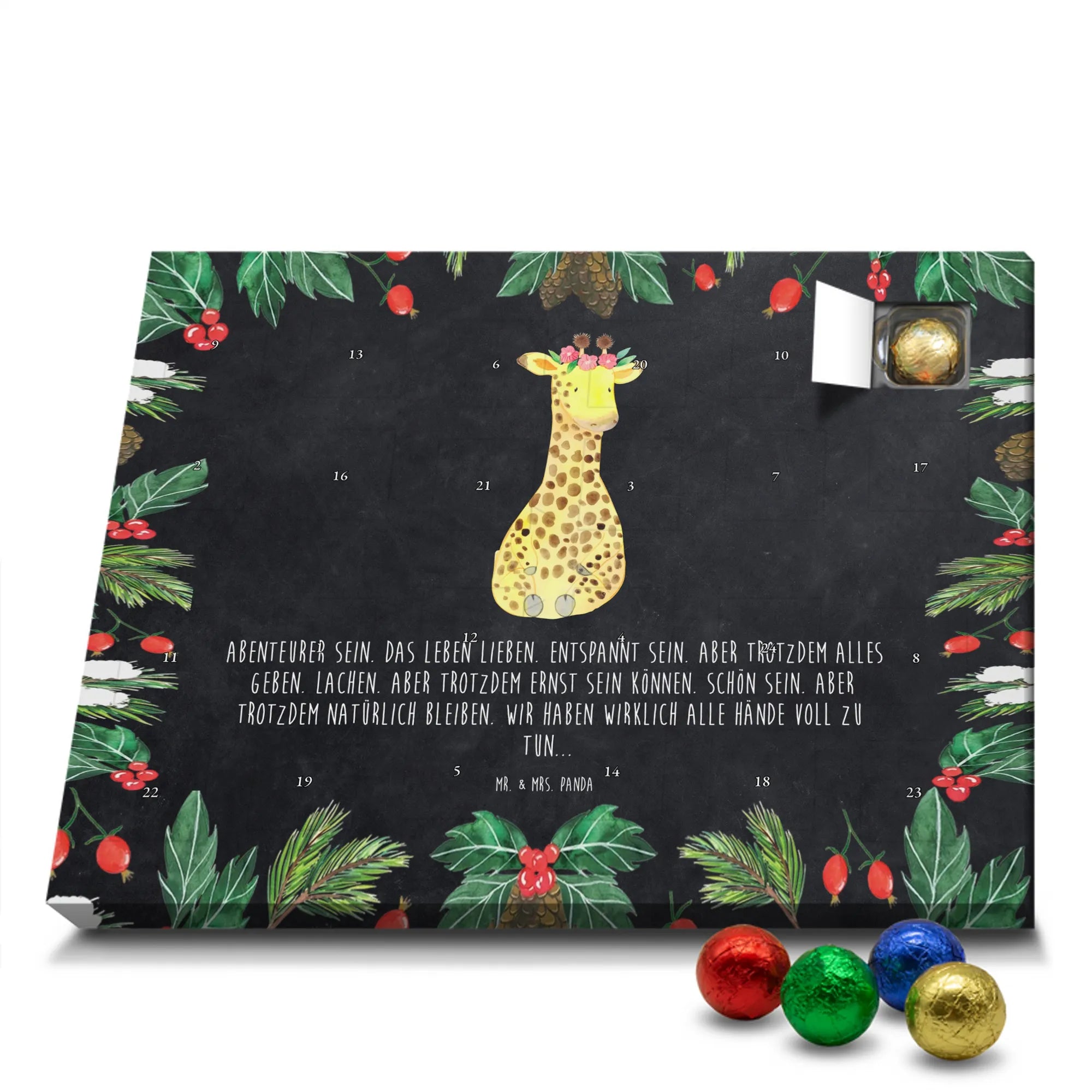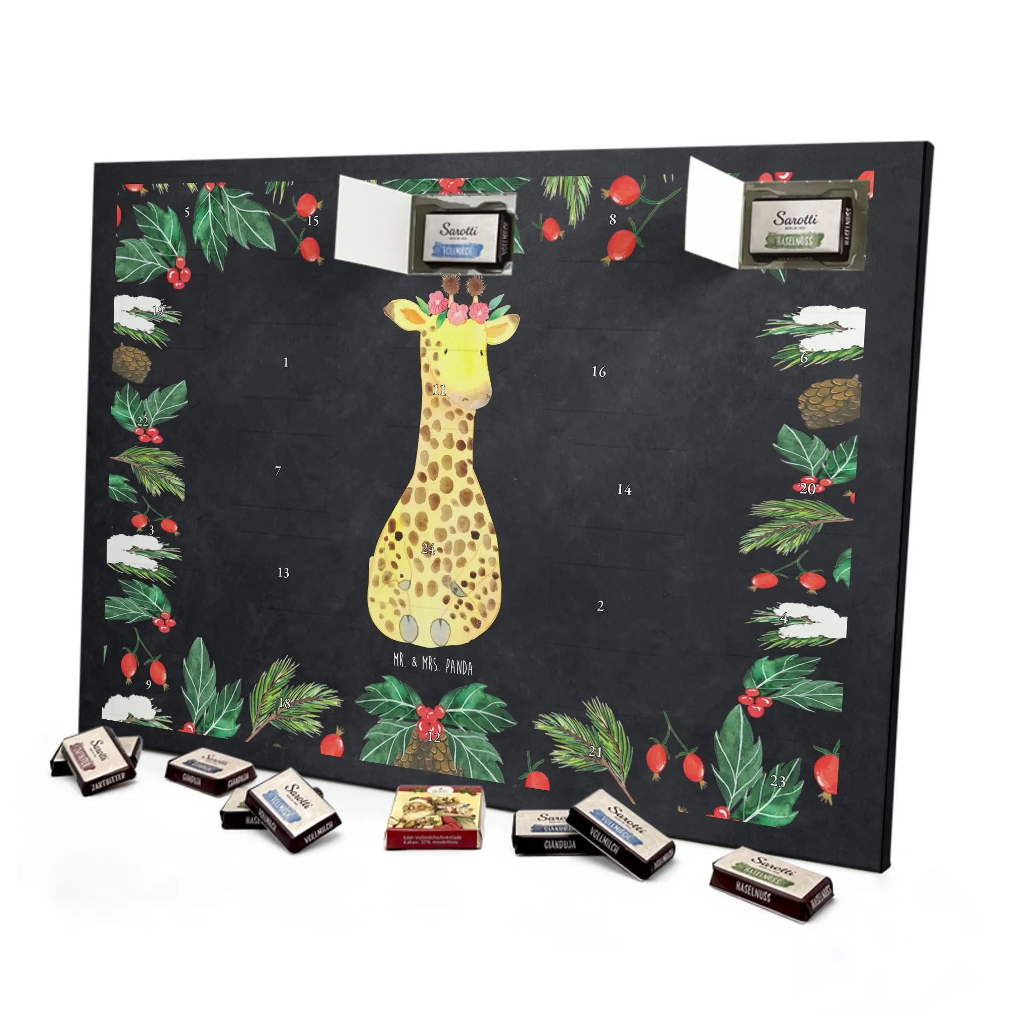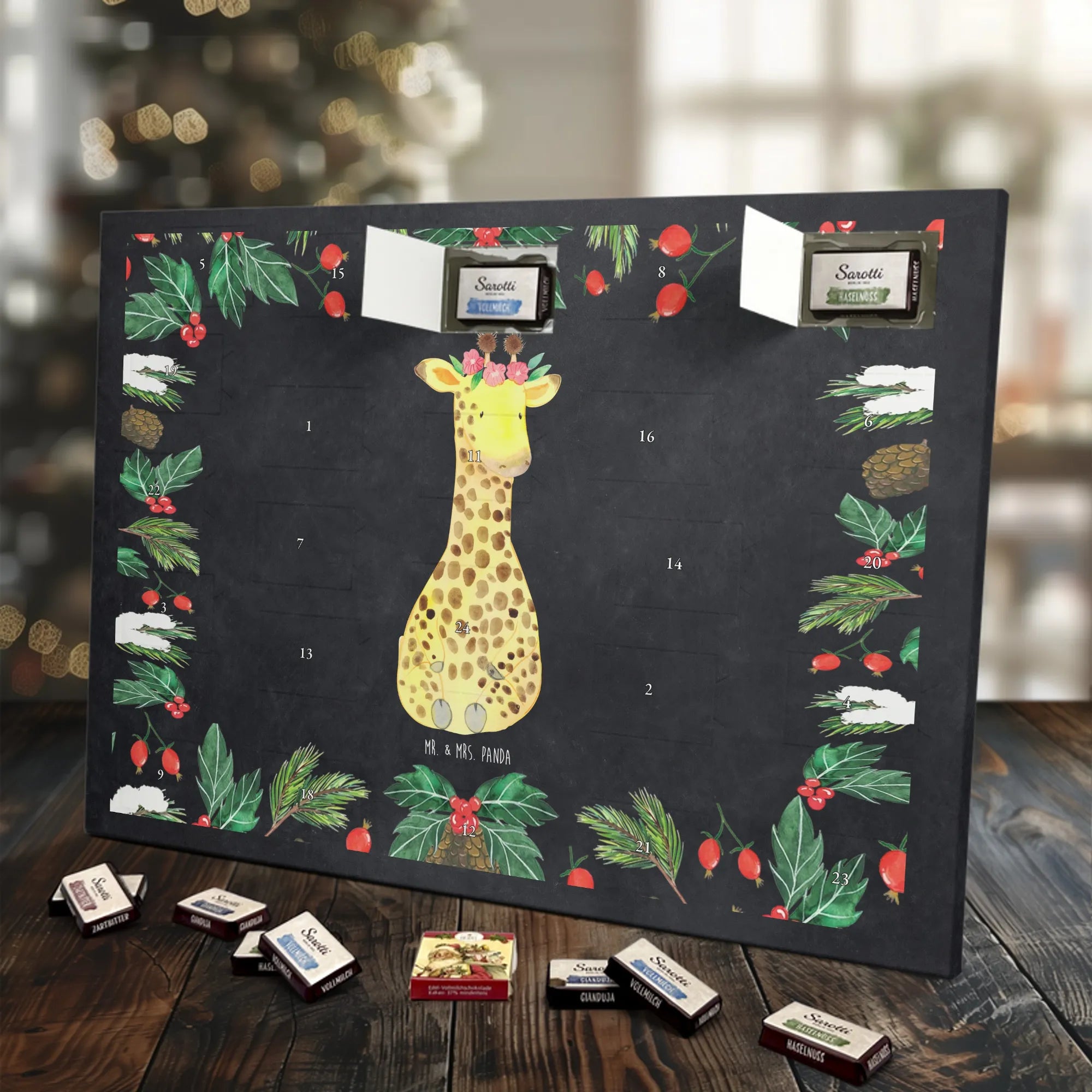 Chocolate advent calendar giraffe flower wreath - Lindt LINDOR - with saying - Chalkboard