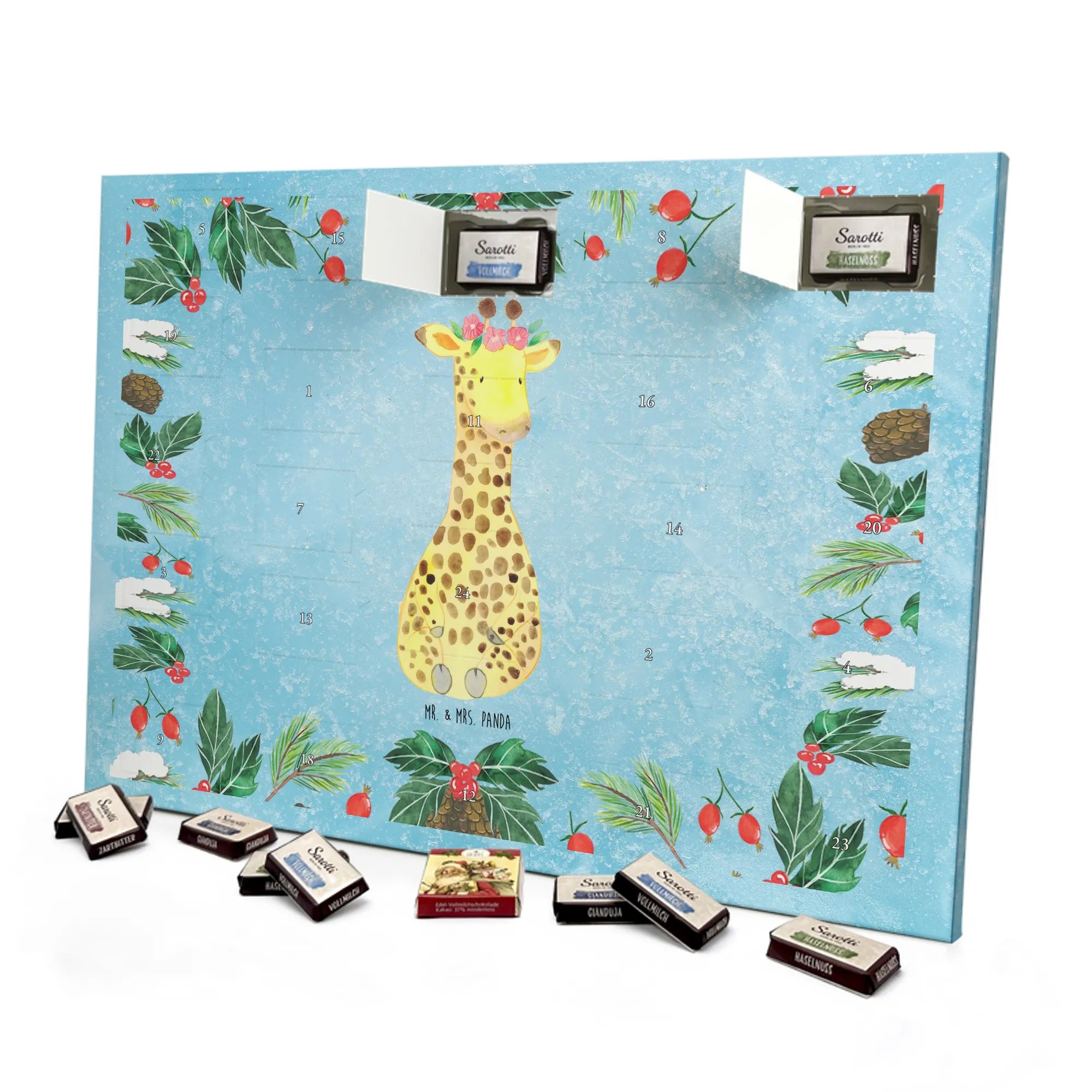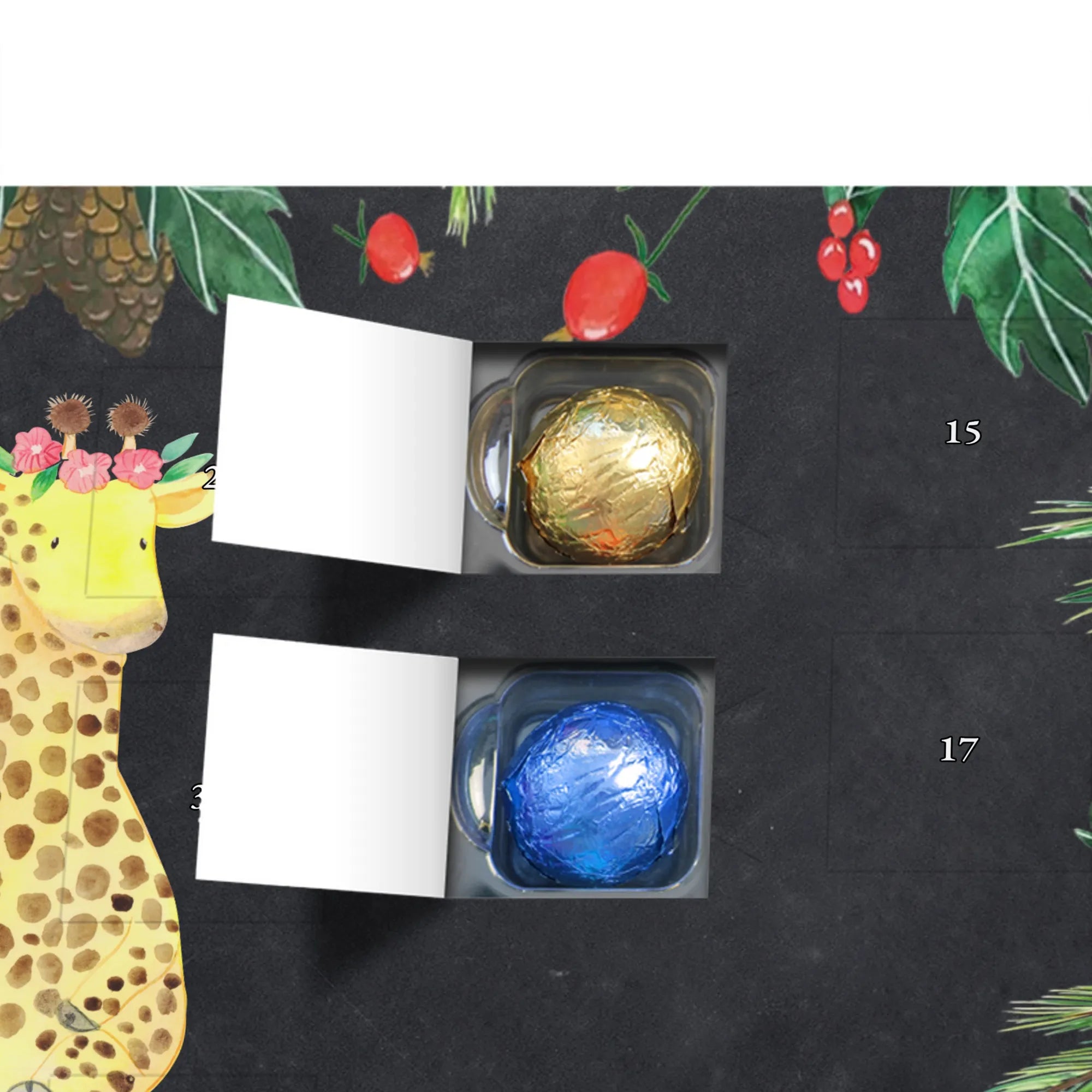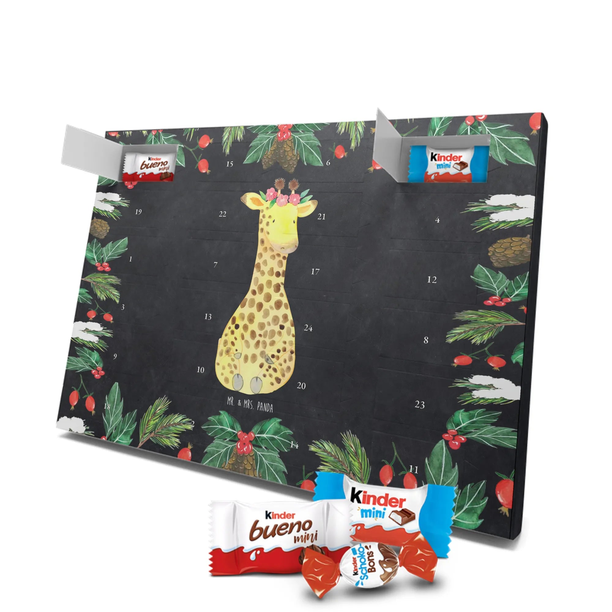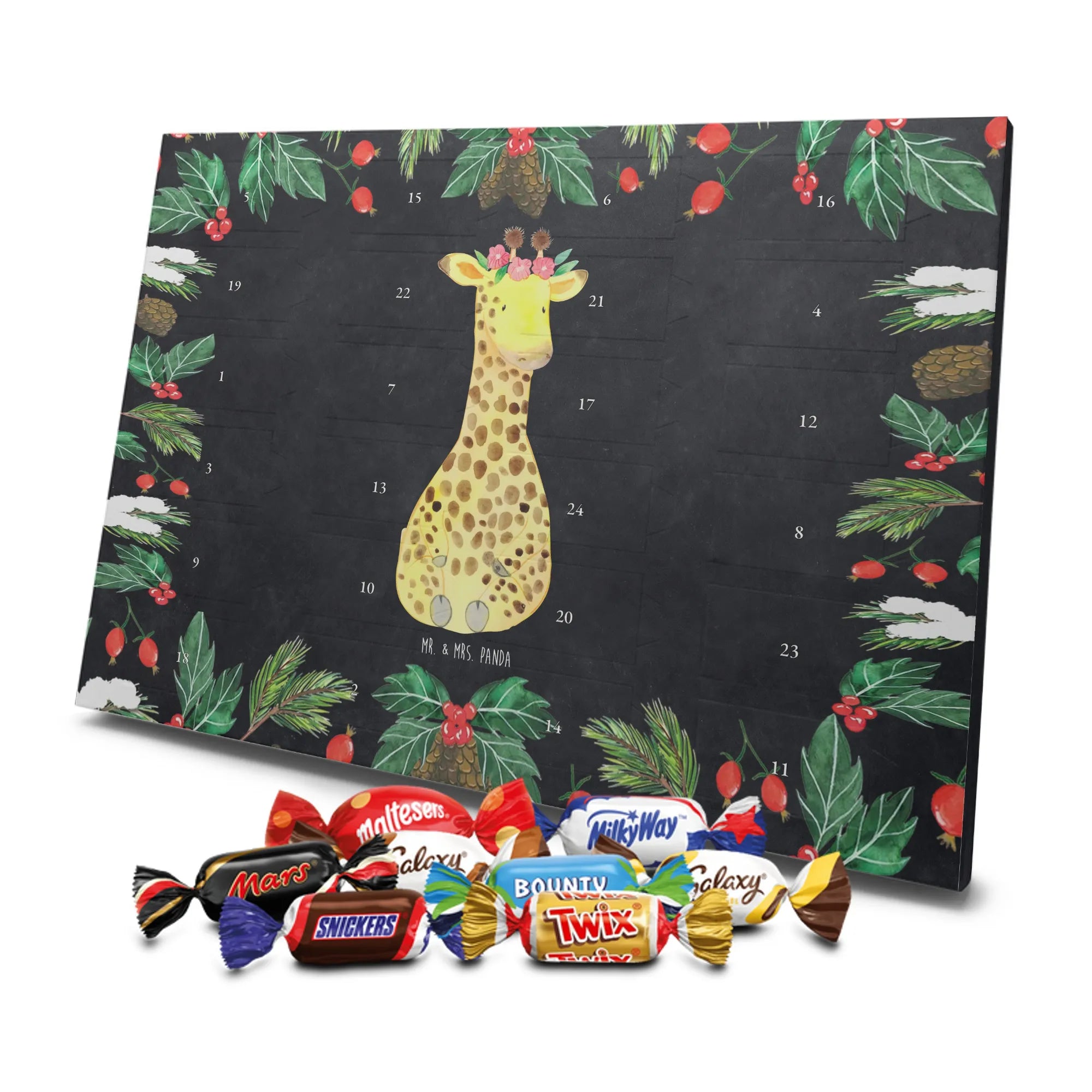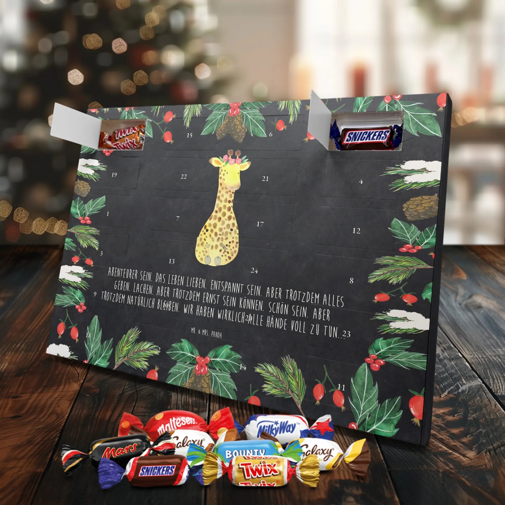 Chocolate advent calendar giraffe flower wreath - Lindt LINDOR - with saying - Chalkboard