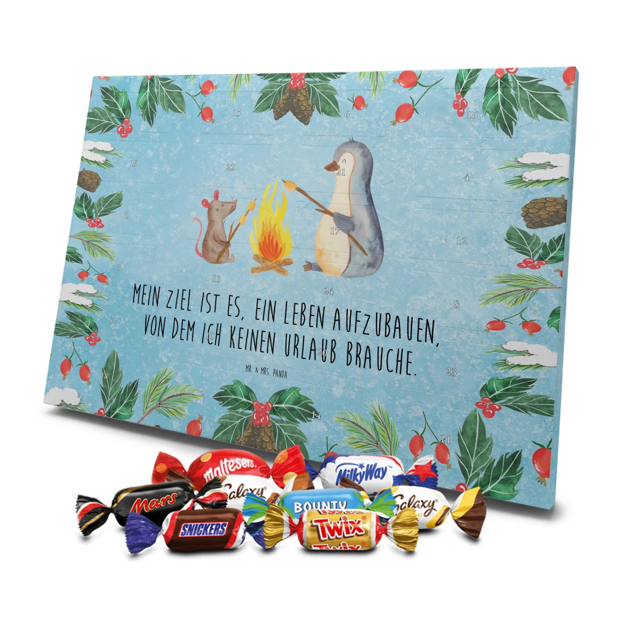 Chocolate advent calendar Penguin campfire - Classic - with saying - Ice Blue