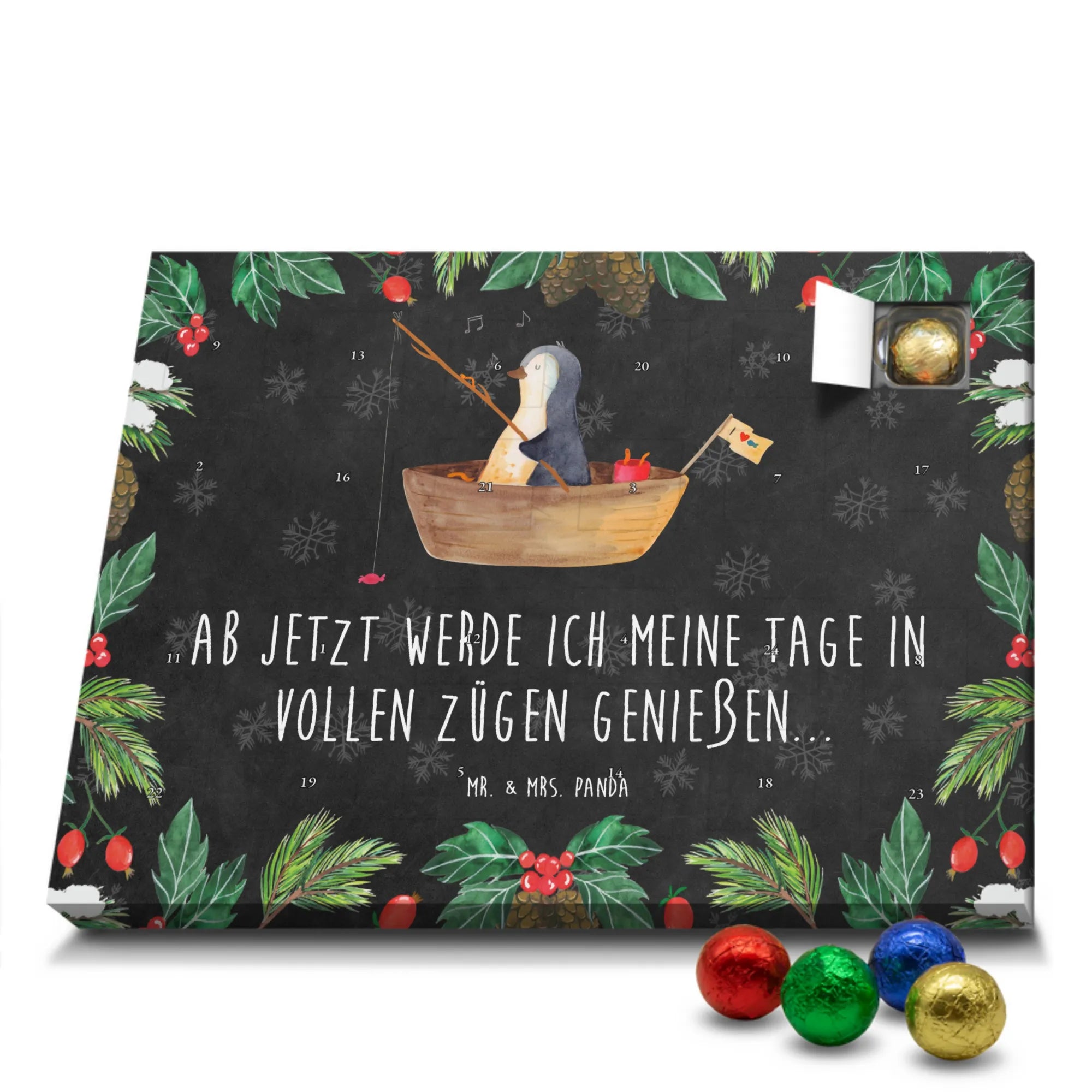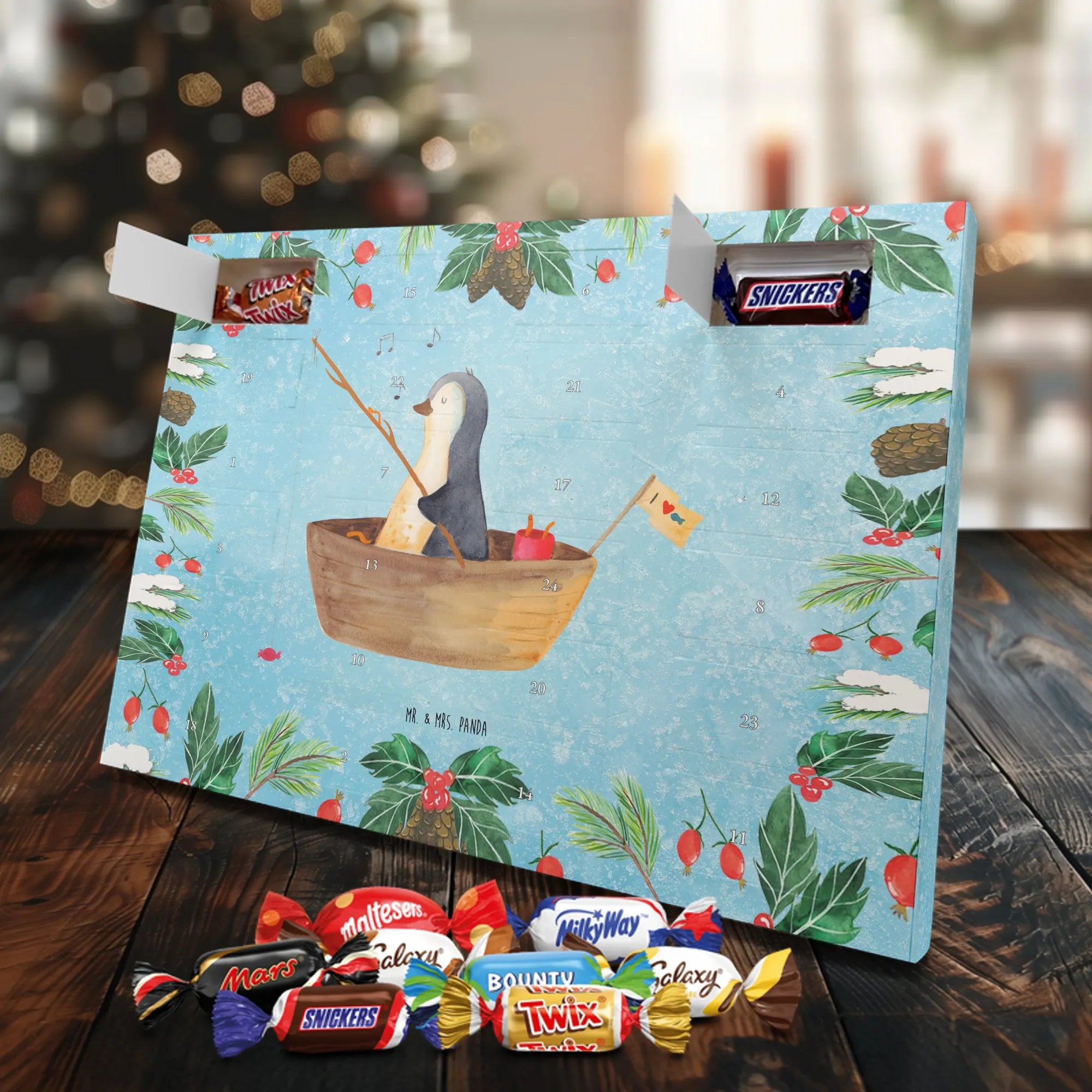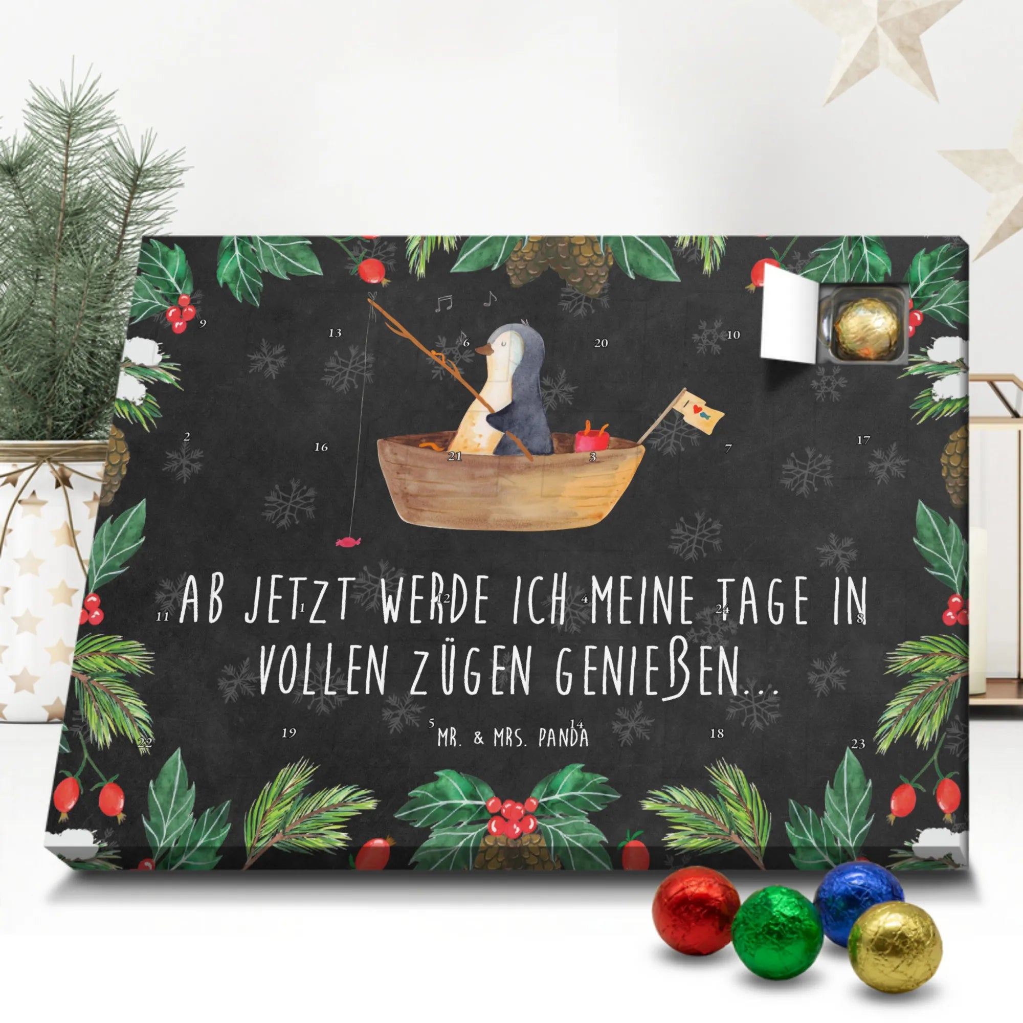 Chocolate advent calendar Penguin fishing boat - Classic - with saying - Ice Blue