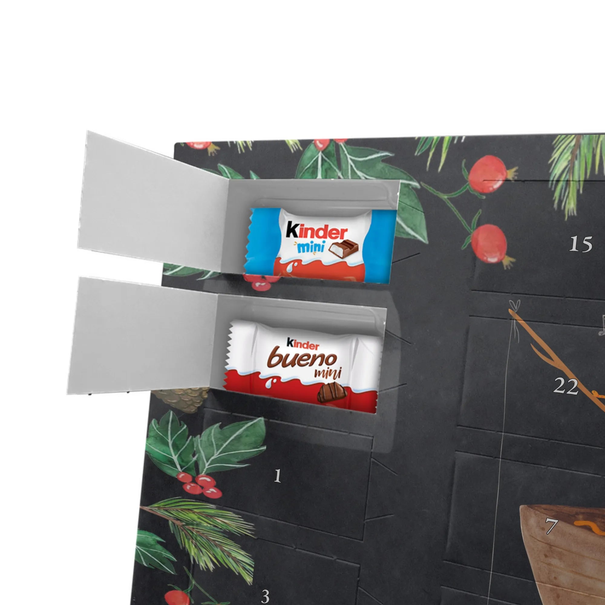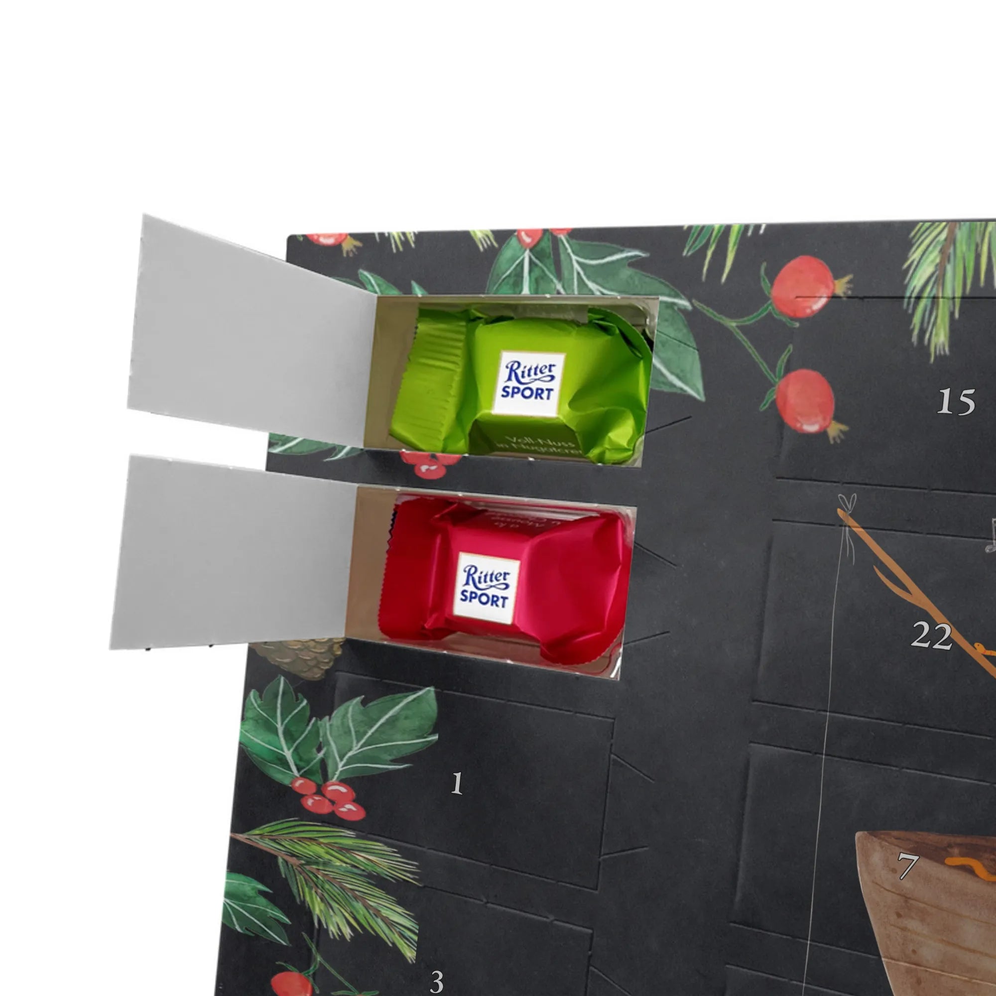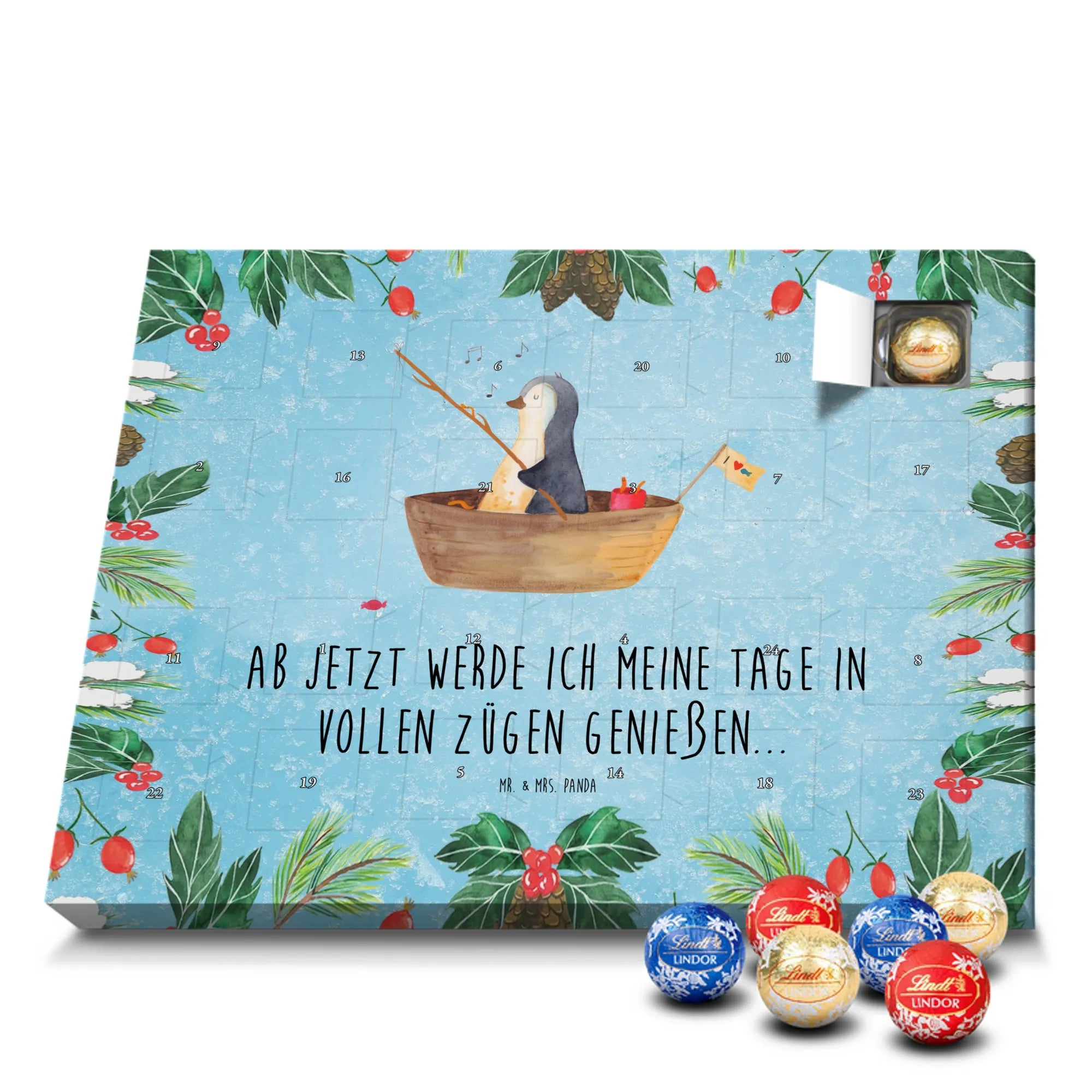 Chocolate advent calendar Penguin fishing boat - Classic - with saying - Ice Blue