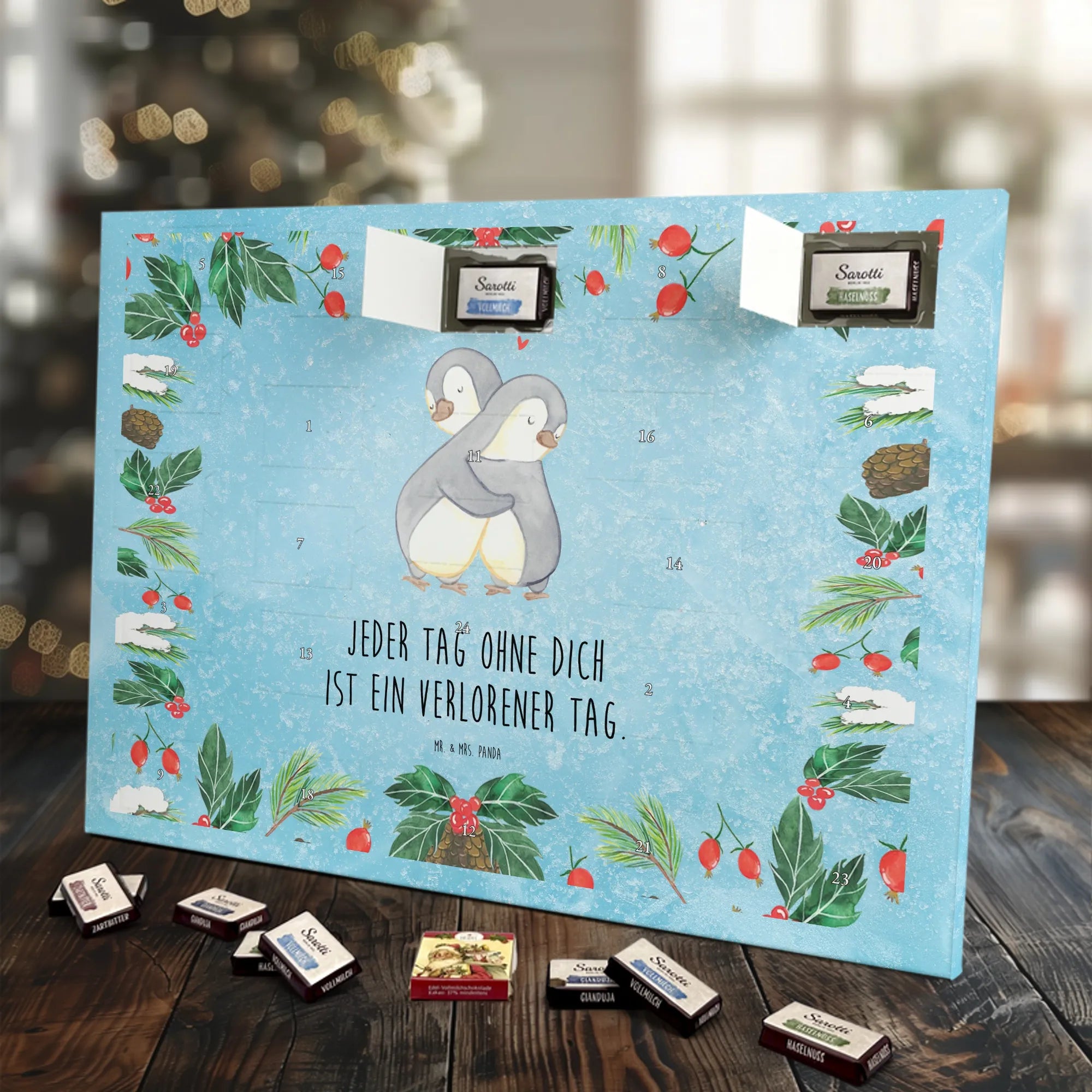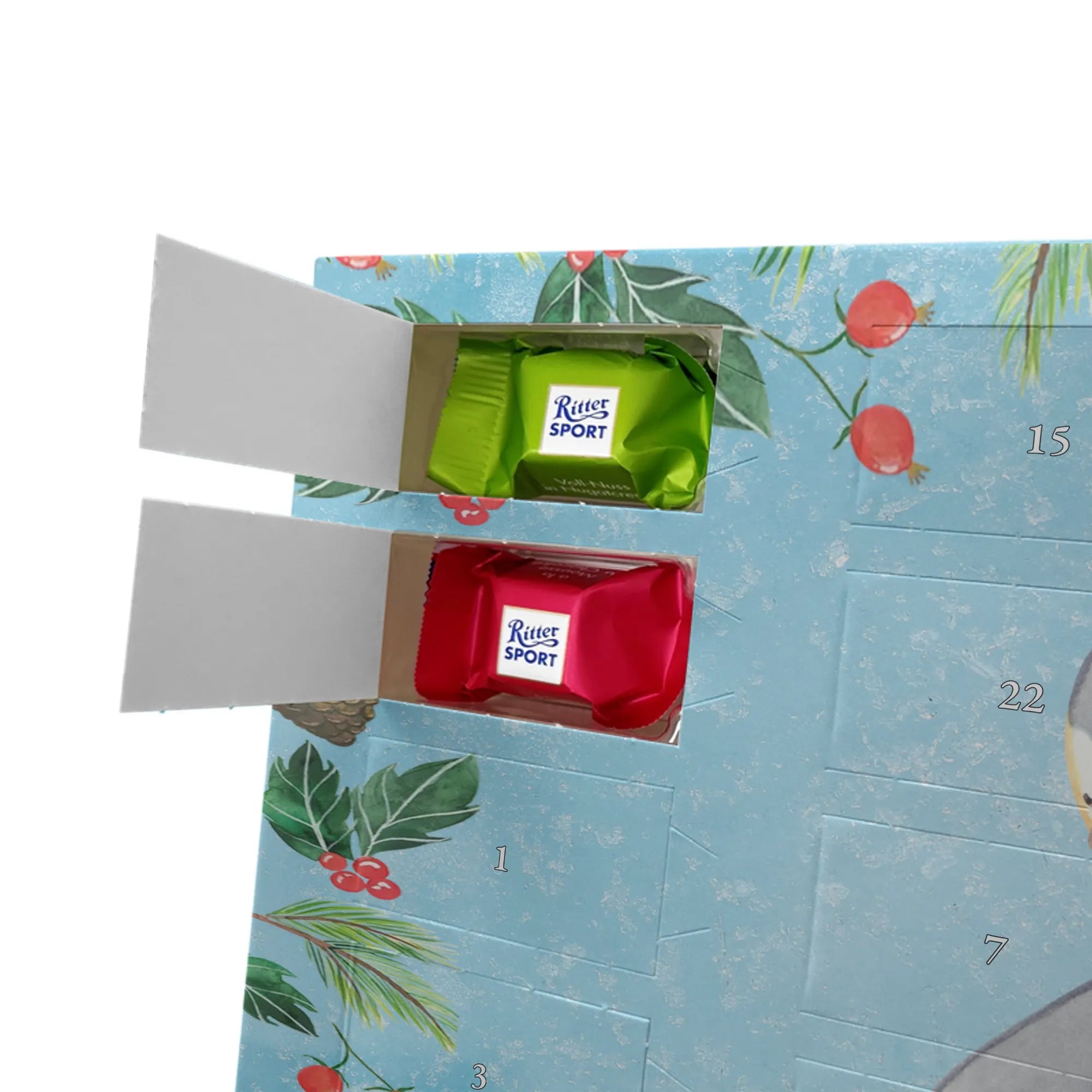 Chocolate advent calendar penguins Cuddle - Classic - with saying - Ice Blue