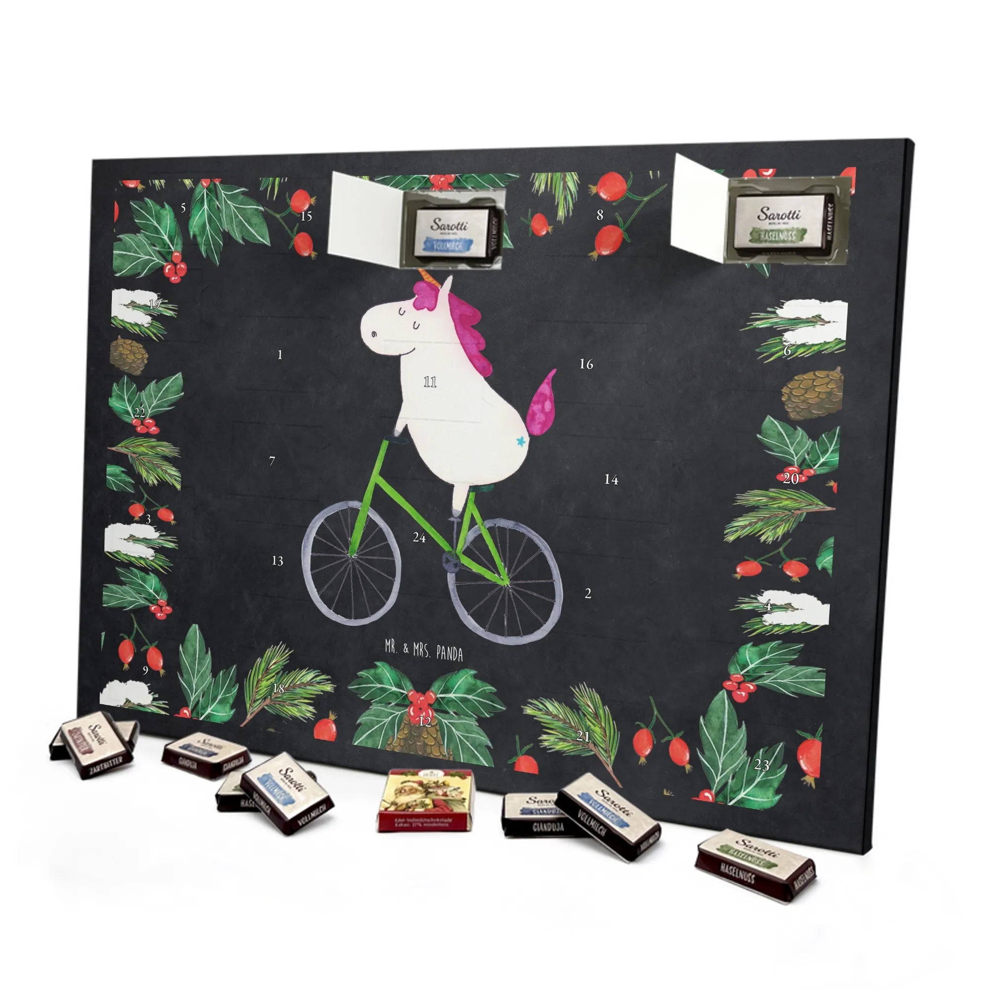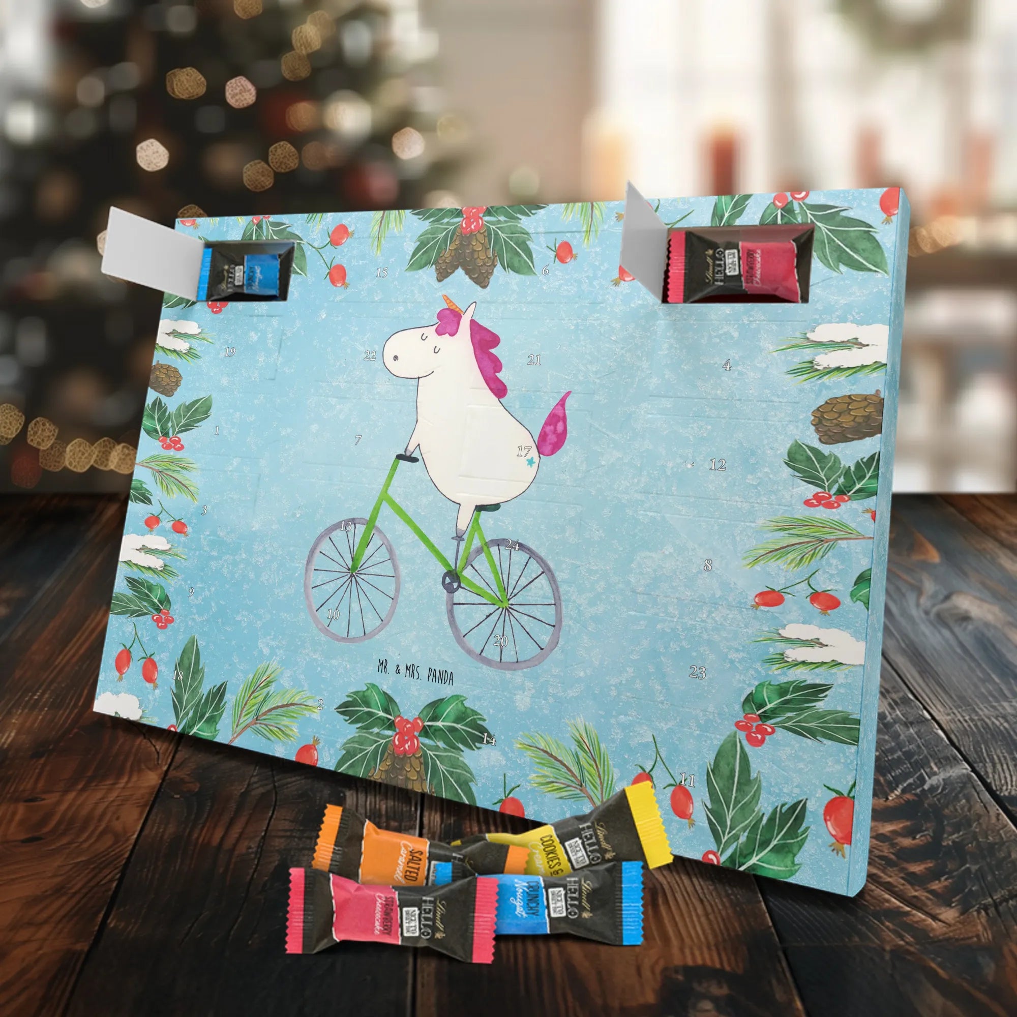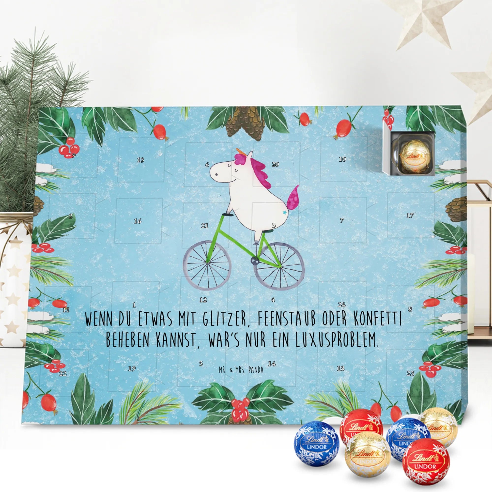 Chocolate advent calendar unicorn cyclist - Classic - with saying - Ice Blue