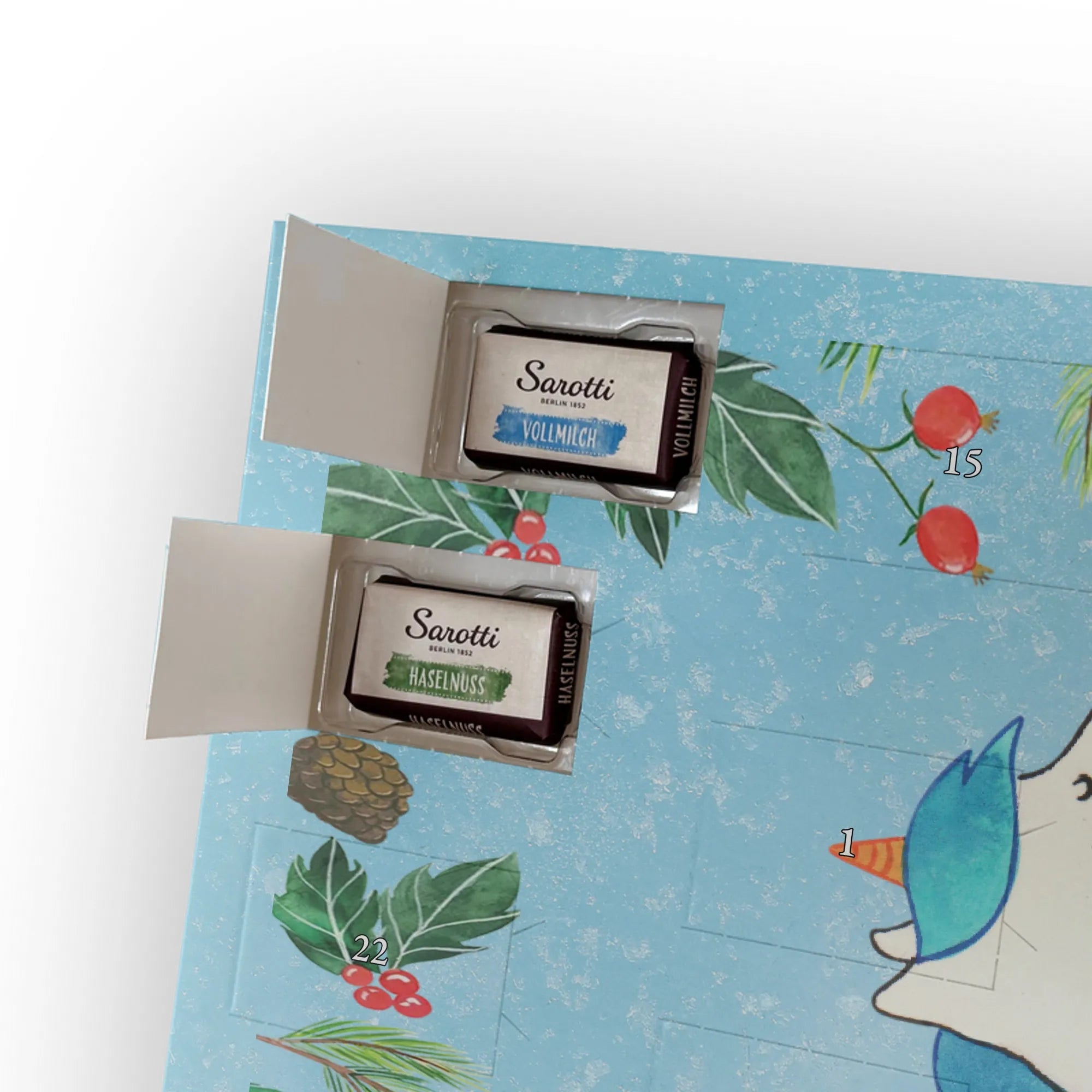 Chocolate advent calendar unicorn dummy - Classic - with saying - Ice Blue
