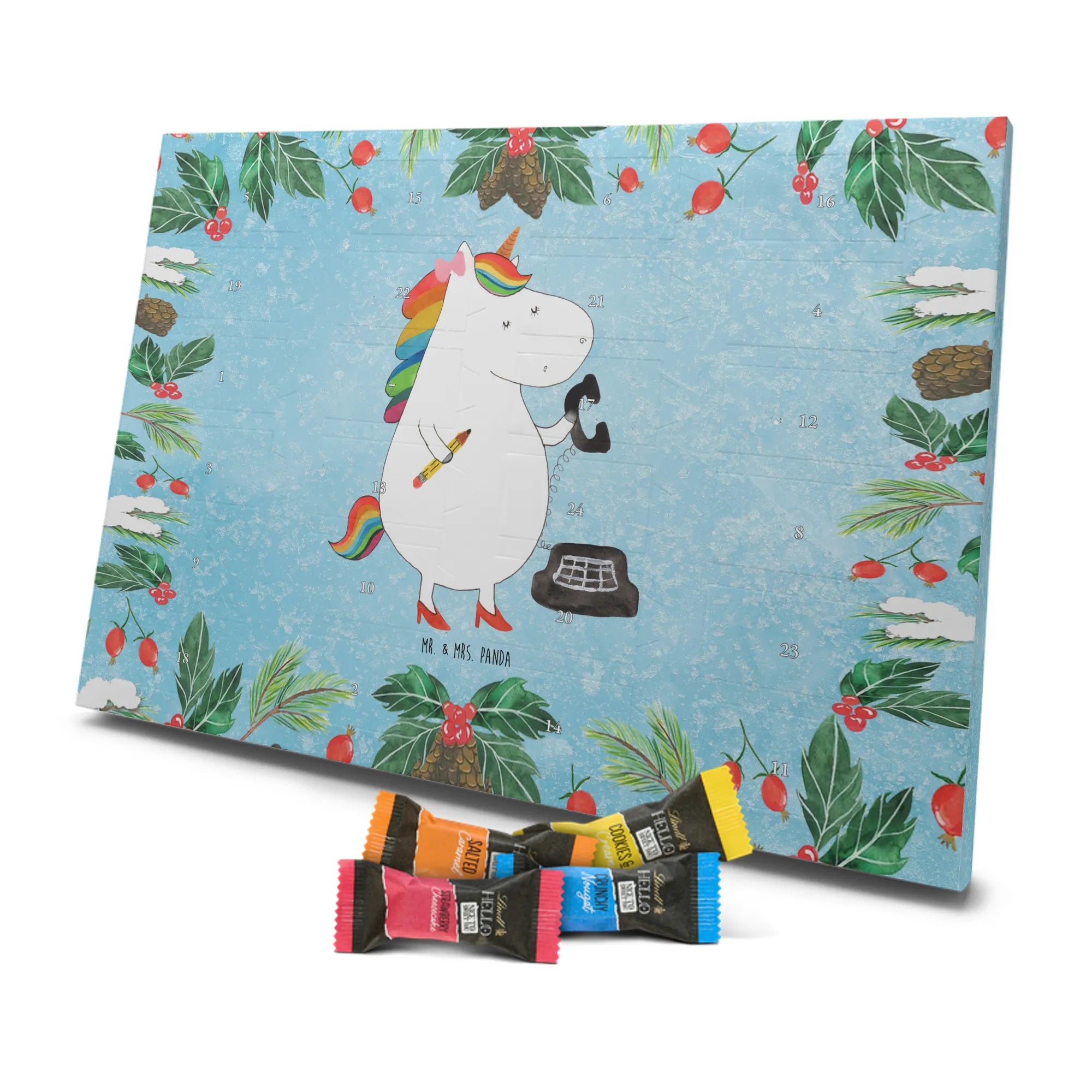 Chocolate advent calendar unicorn secretary - Classic - with saying - Ice Blue