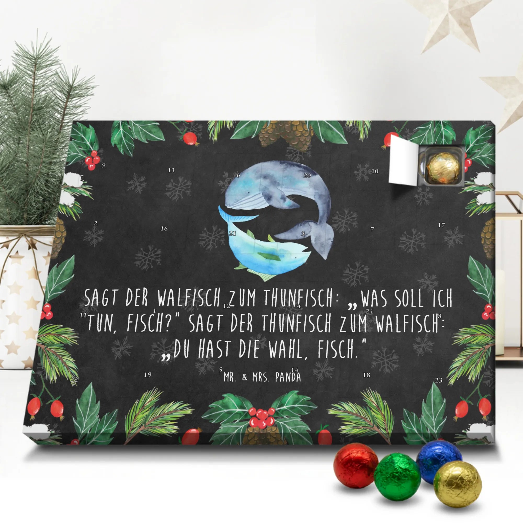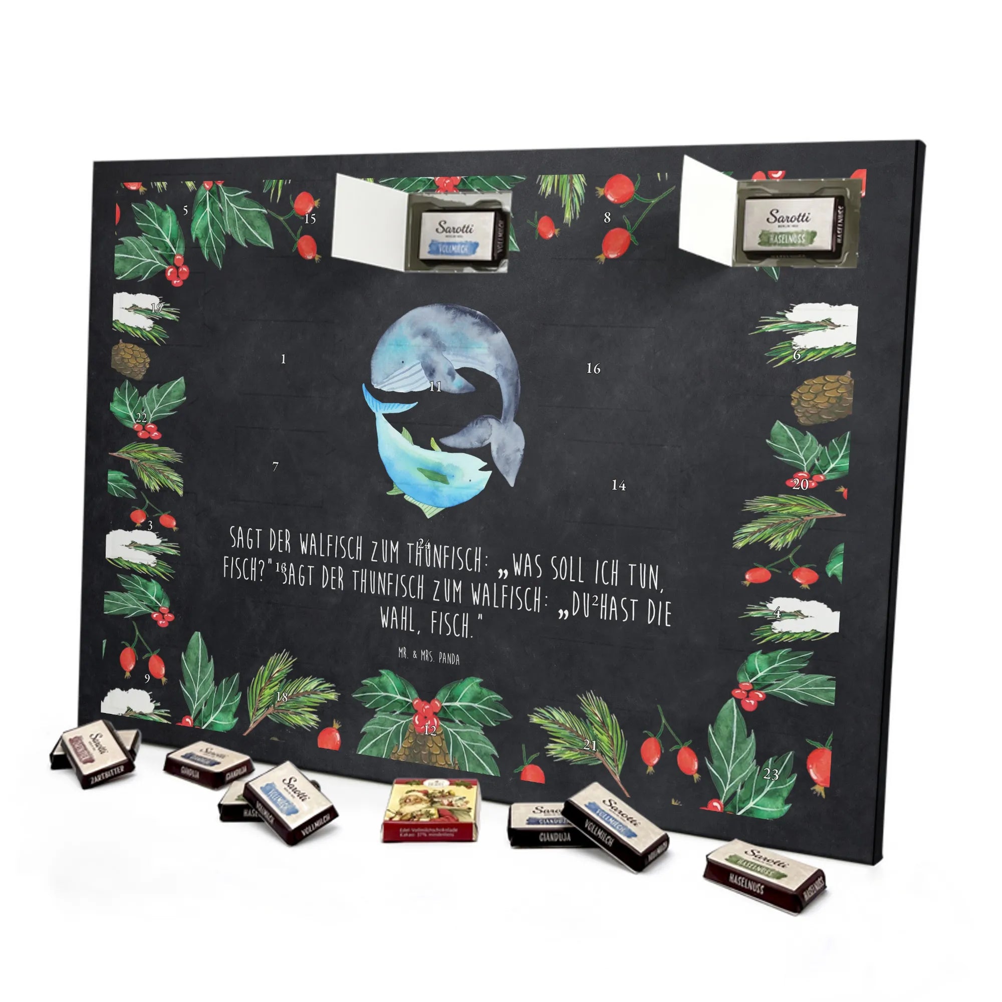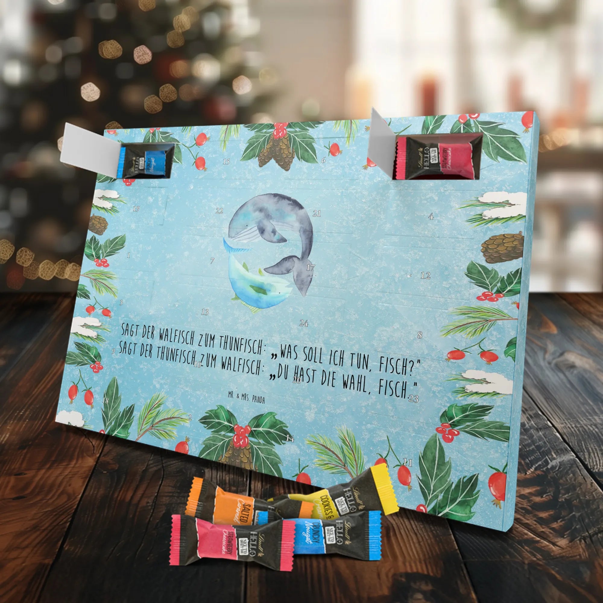 Chocolate advent calendar whale tuna - Classic - with saying - Ice Blue