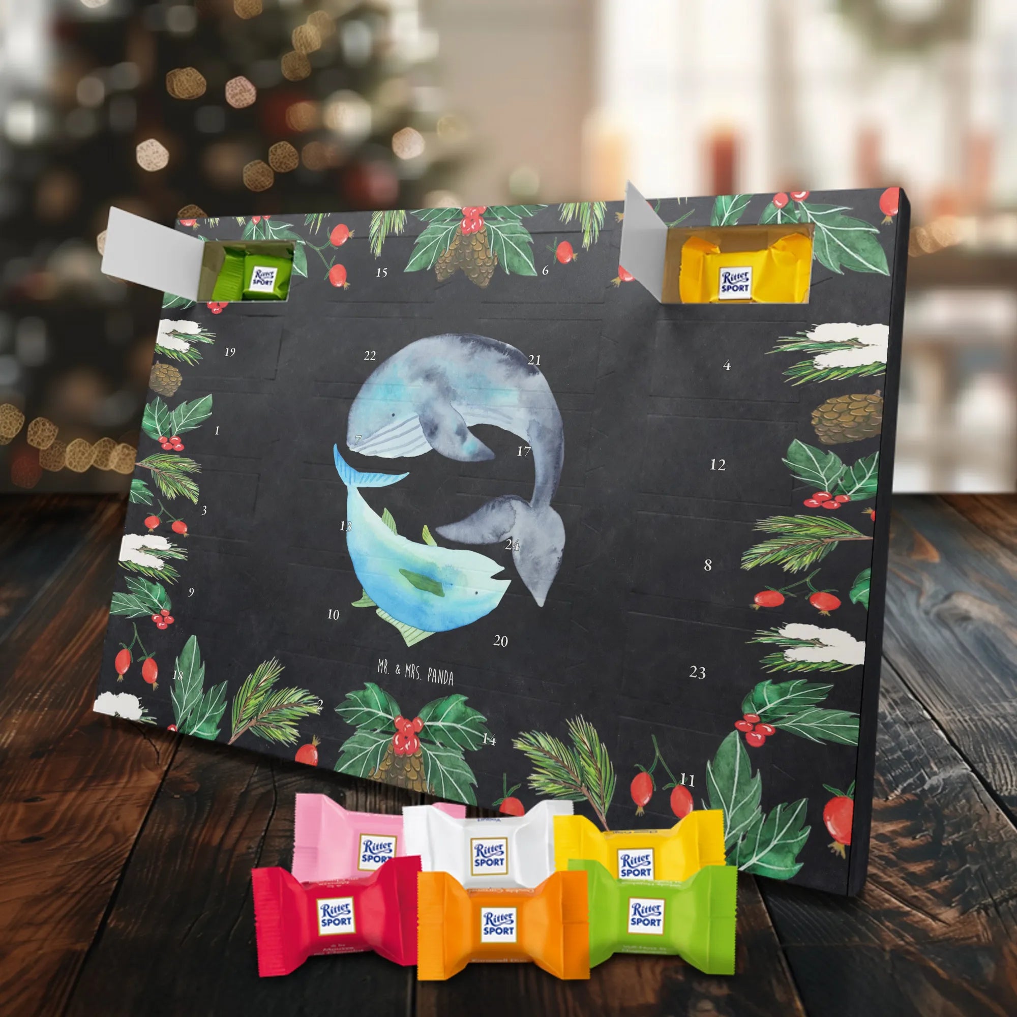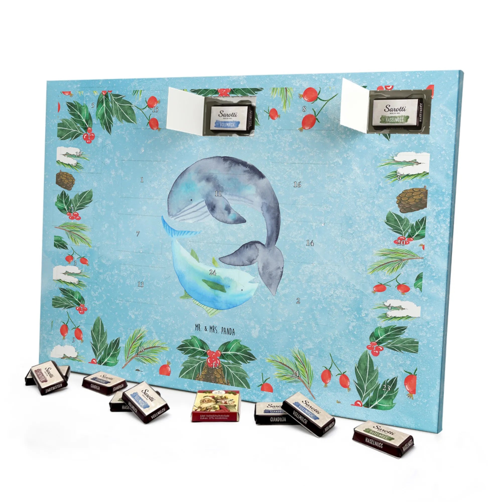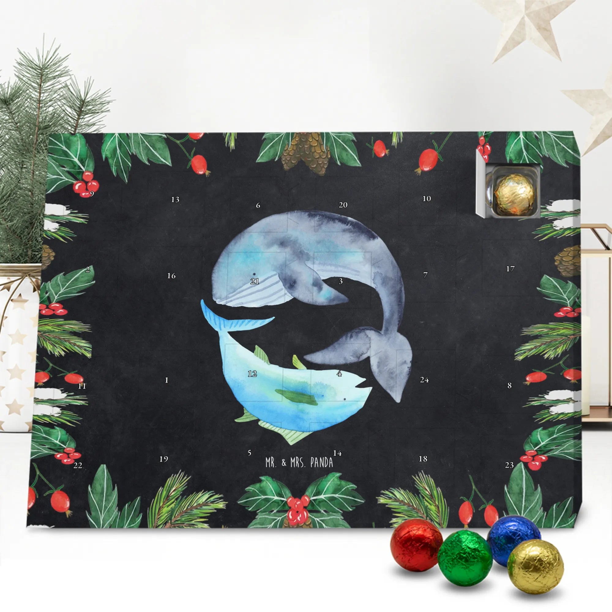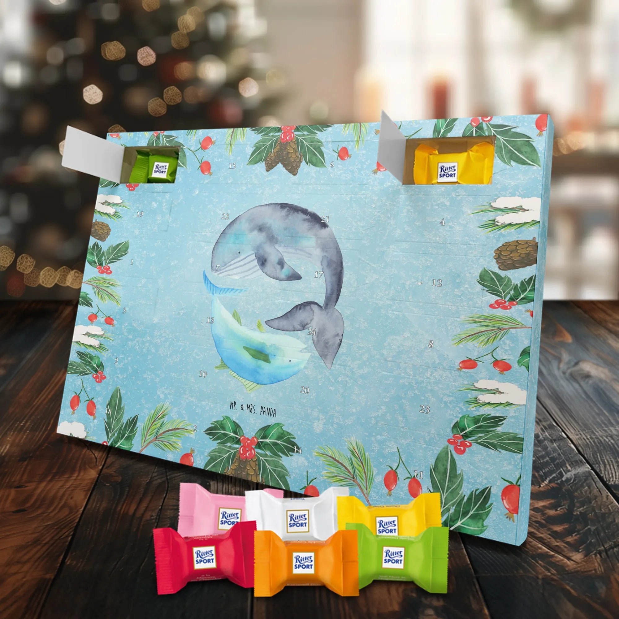 Chocolate advent calendar whale tuna - Classic - with saying - Ice Blue
