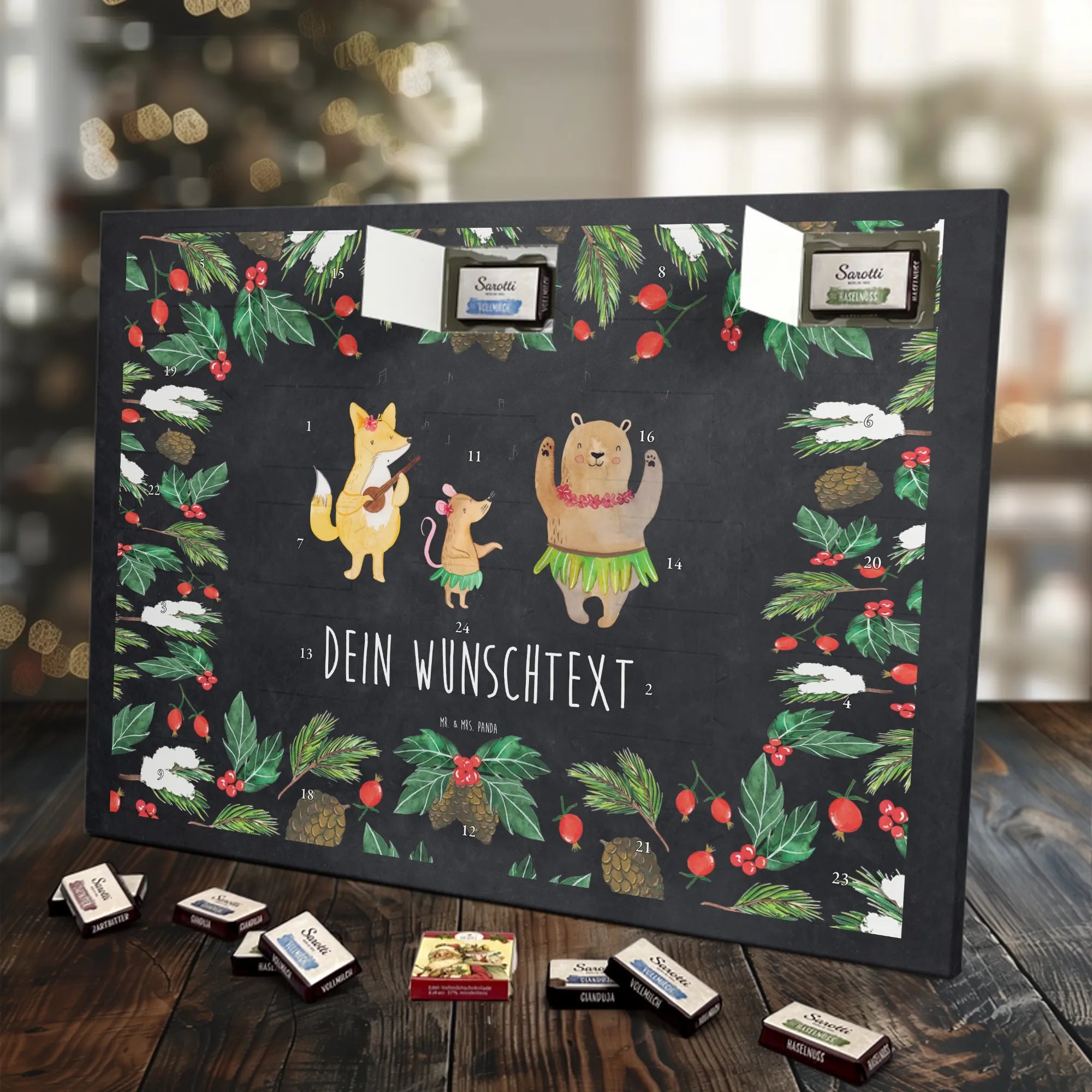 Make the Advent season even more special with the personalized chocolate Advent calendar from Mr. & Mrs. Panda. This unique Advent calendar is printed with your desired name or a custom text and features exclusive designs and sayings from the renowned designer duo. It's not only a visual highlight but also delights taste buds with 24 high-quality chocolate balls in various colors. The brilliant print quality and the silk-matte finish make this calendar a true eye-catcher during the Christmas season.