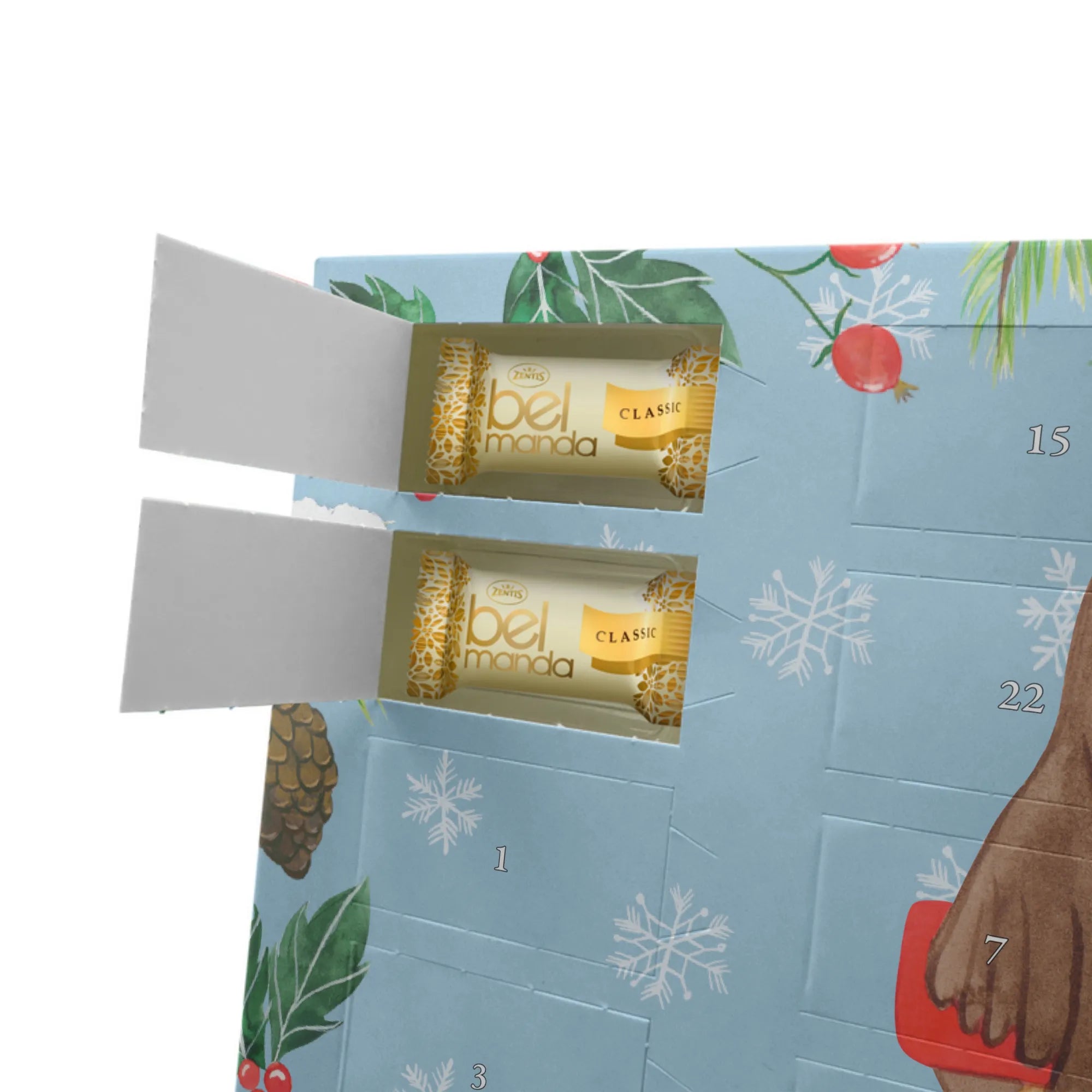 Bereite dir selbst oder deinen Liebsten jeden Tag mit dem Marzipan Adventskalender von Mr. & Mrs. Panda Freude. In einer Größe von 325 mm x 225 mm x 27 mm bietet dieser Kalender 24 Tage puren Marzipangenusses. Wunderschöne Illustrationen und inspirierende Sprüche schmücken ihn und machen ihn zu einem wahren Weihnachtsmärchen. Die seidenmatte Oberflächenveredelung hebt die Details der Illustrationen hervor und die bedruckten Seitenflächen verleihen ihm eine edle Note. Ganz nach Wunsch kann der Kalender aufgehängt oder aufgestellt werden. Beachte bitte, dass er Spuren anderer Schalenfrüchte enthalten kann. Dieser Kalender ist mehr als nur eine Süßigkeit – es ist ein Erlebnis der Sinne in der Adventszeit.